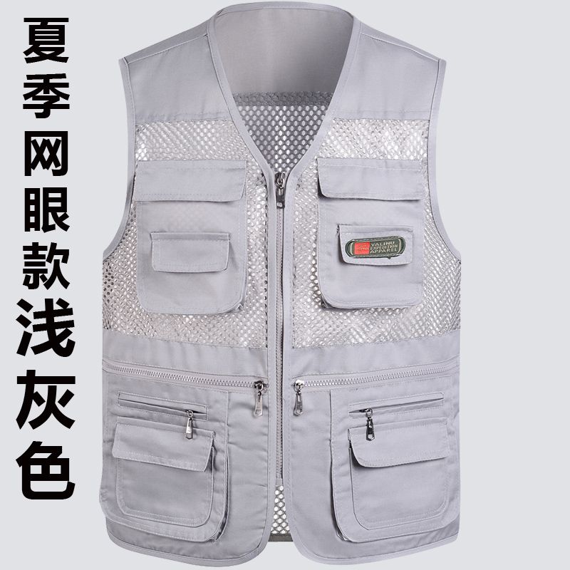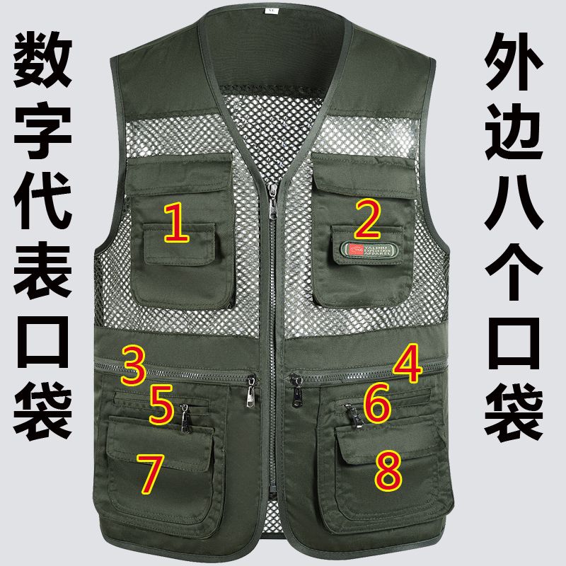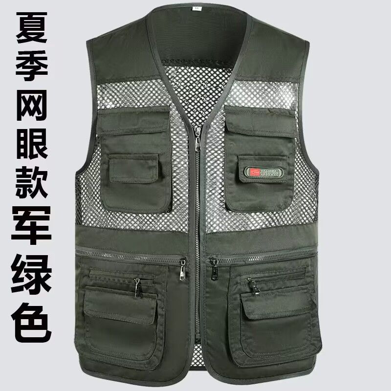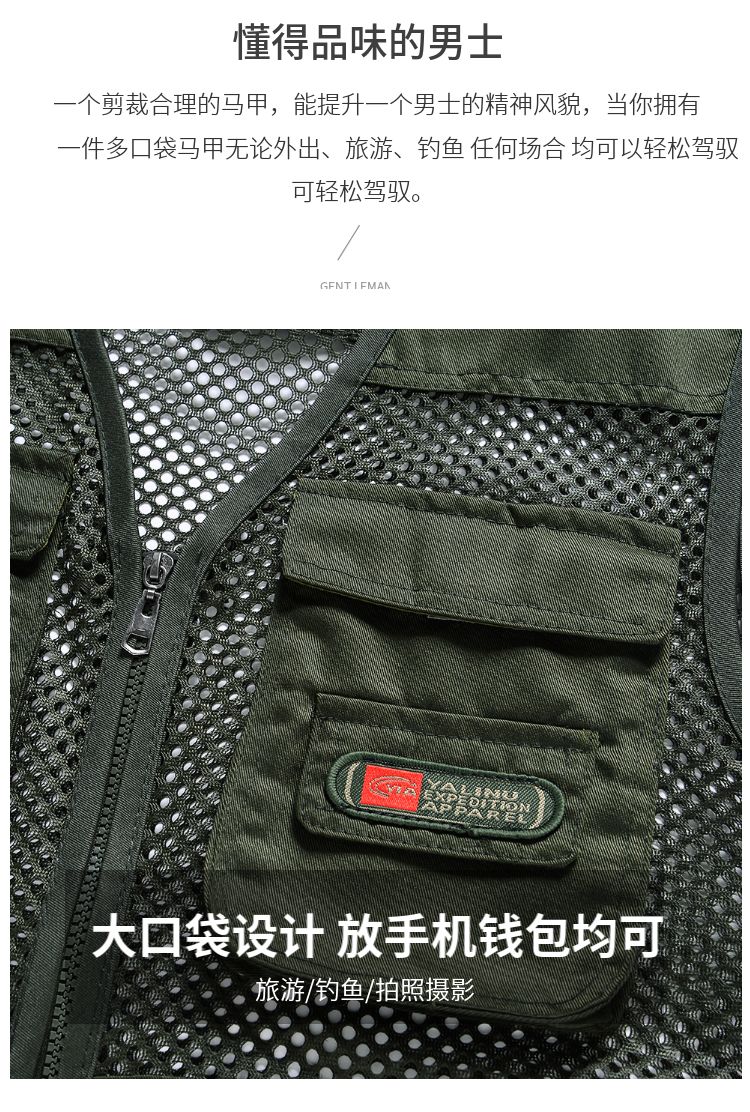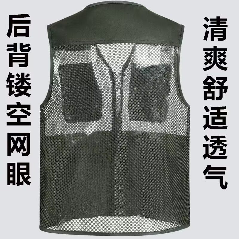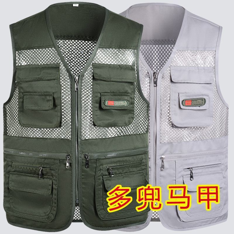 夏季网眼中老年马甲男休闲多口袋薄款马夹摄影钓鱼爸爸装背心坎肩