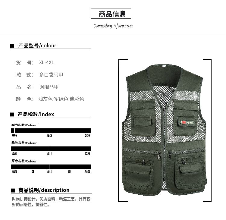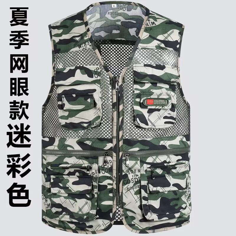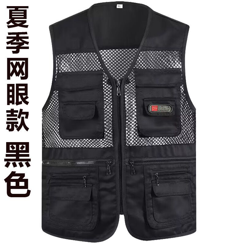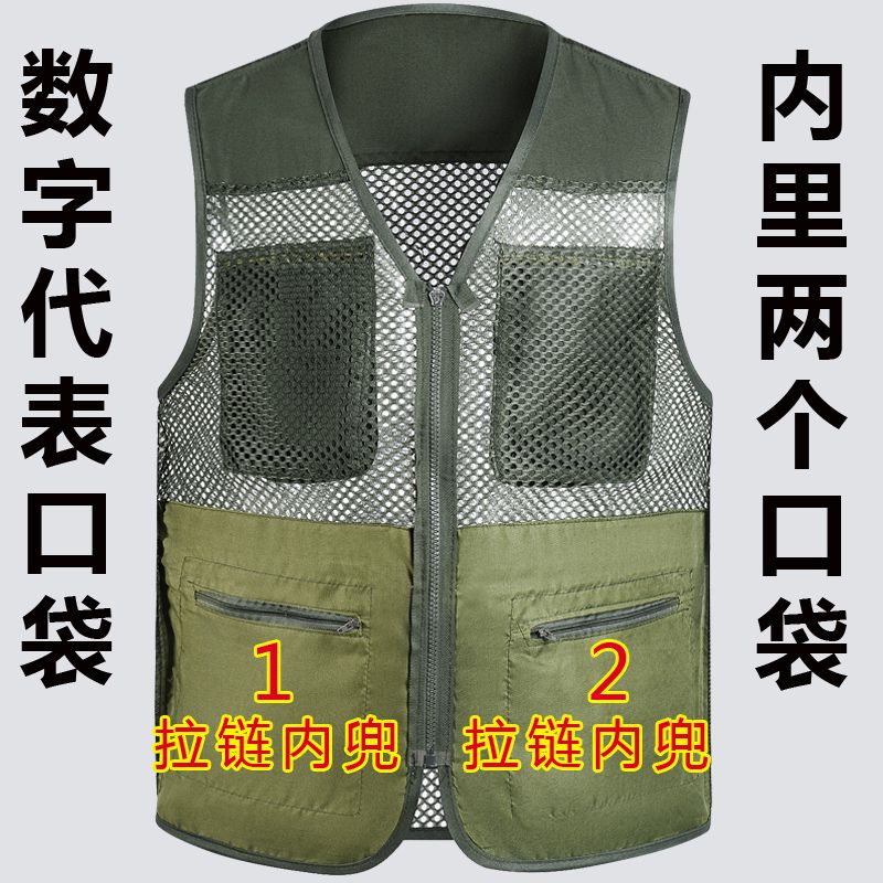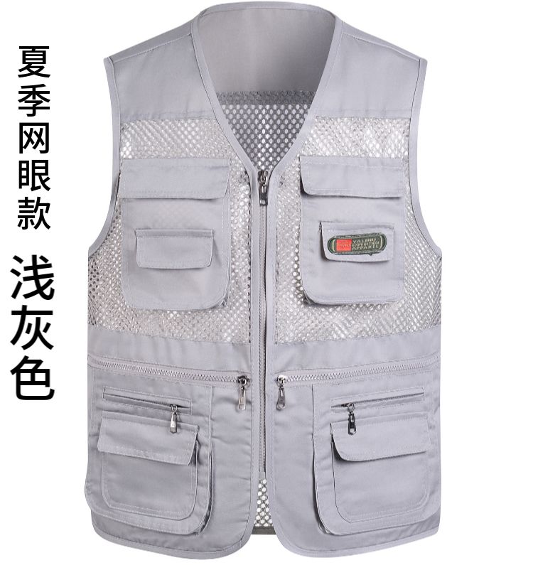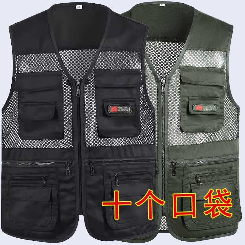 夏季网眼中老年马甲男休闲多口袋薄款马夹摄影钓鱼爸爸装背心坎肩