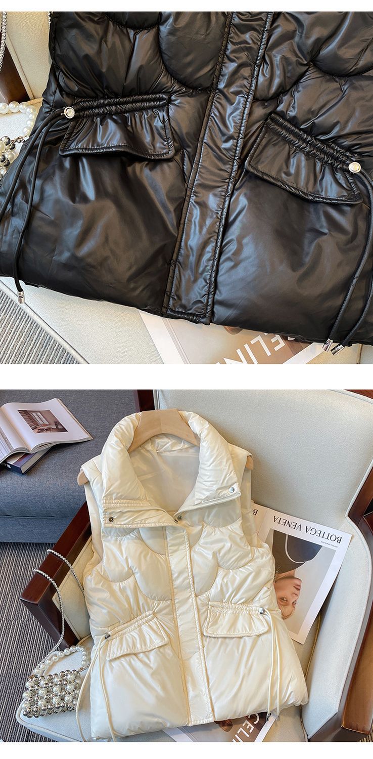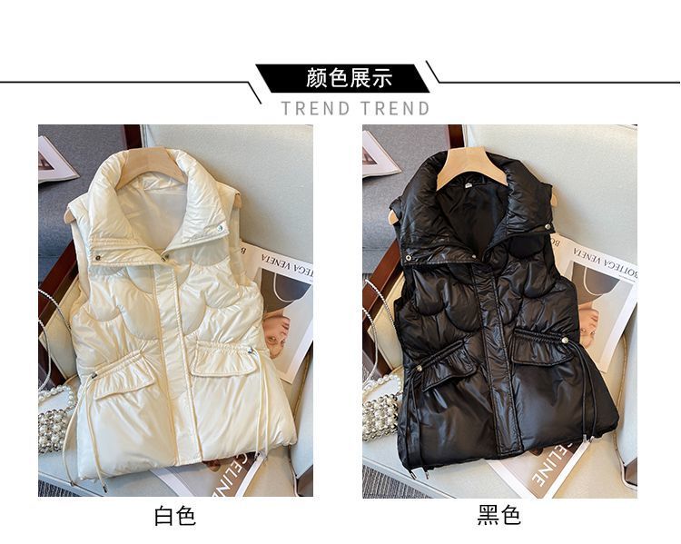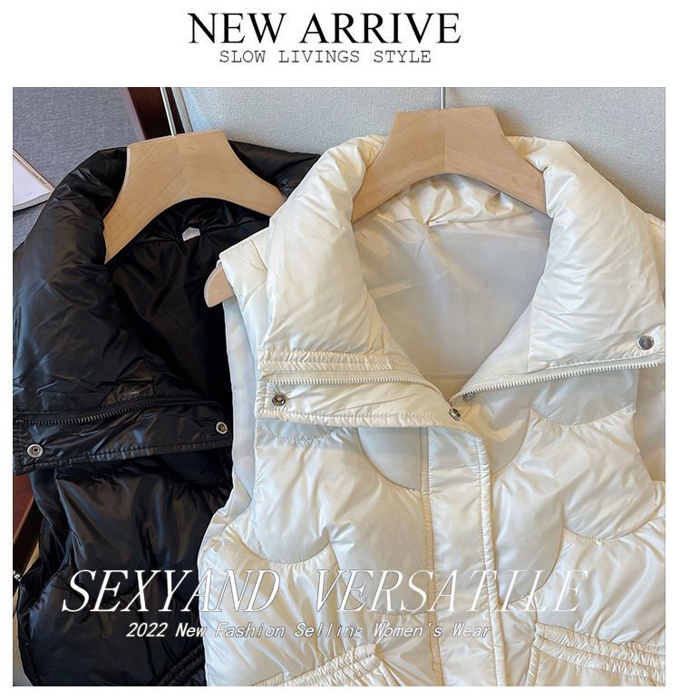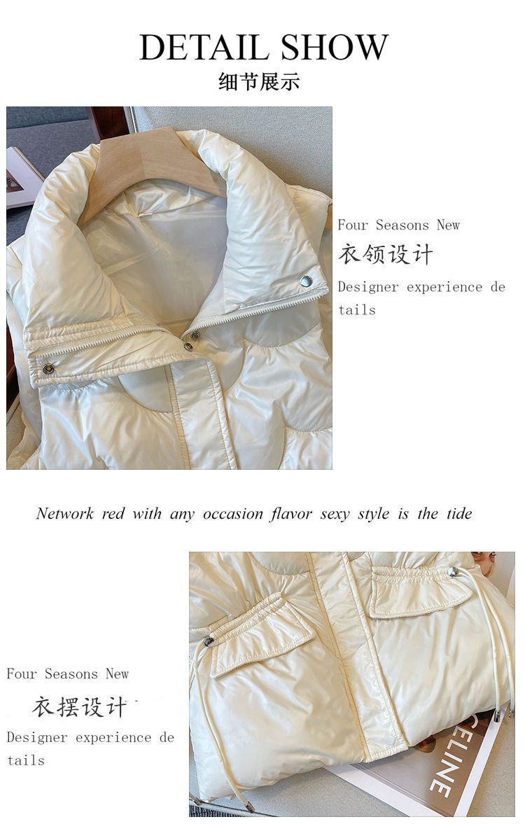 2024韩版免洗亮面羽绒棉马甲女短款宽松立领马夹秋冬外穿坎肩背心