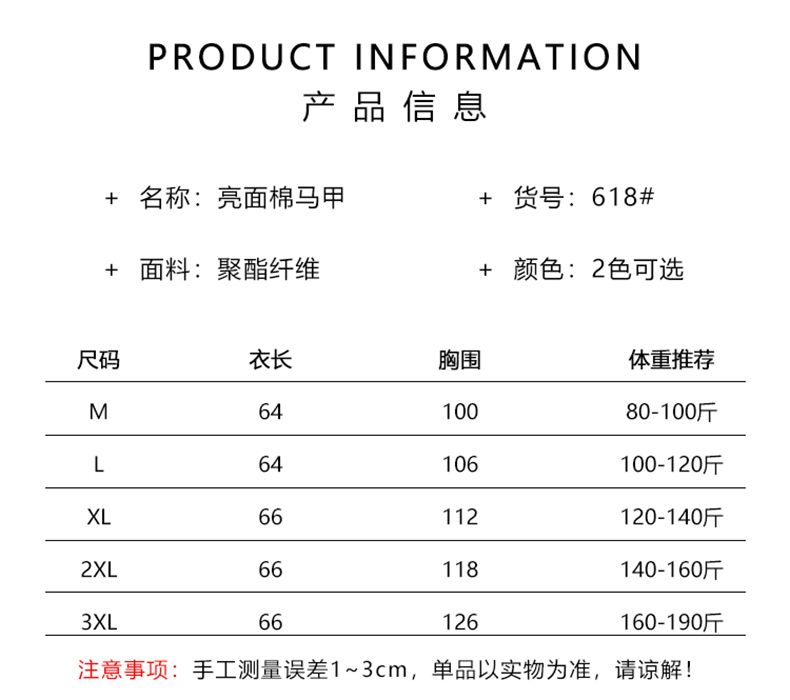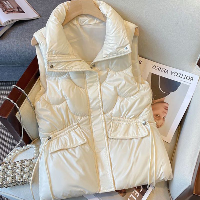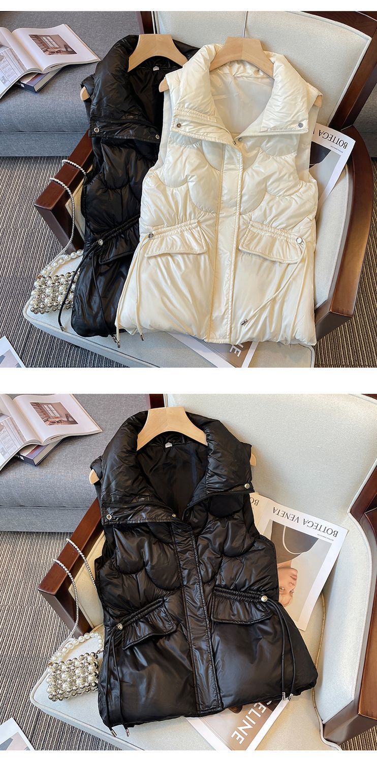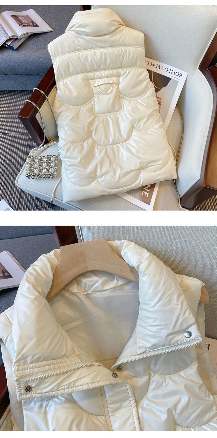 2024韩版免洗亮面羽绒棉马甲女短款宽松立领马夹秋冬外穿坎肩背心