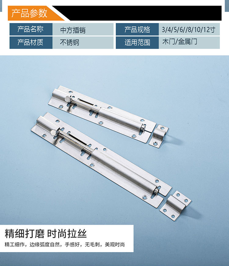 不锈钢中方插销锁加厚门扣门栓老式门闩锁卫生间门窗小扦销门插销