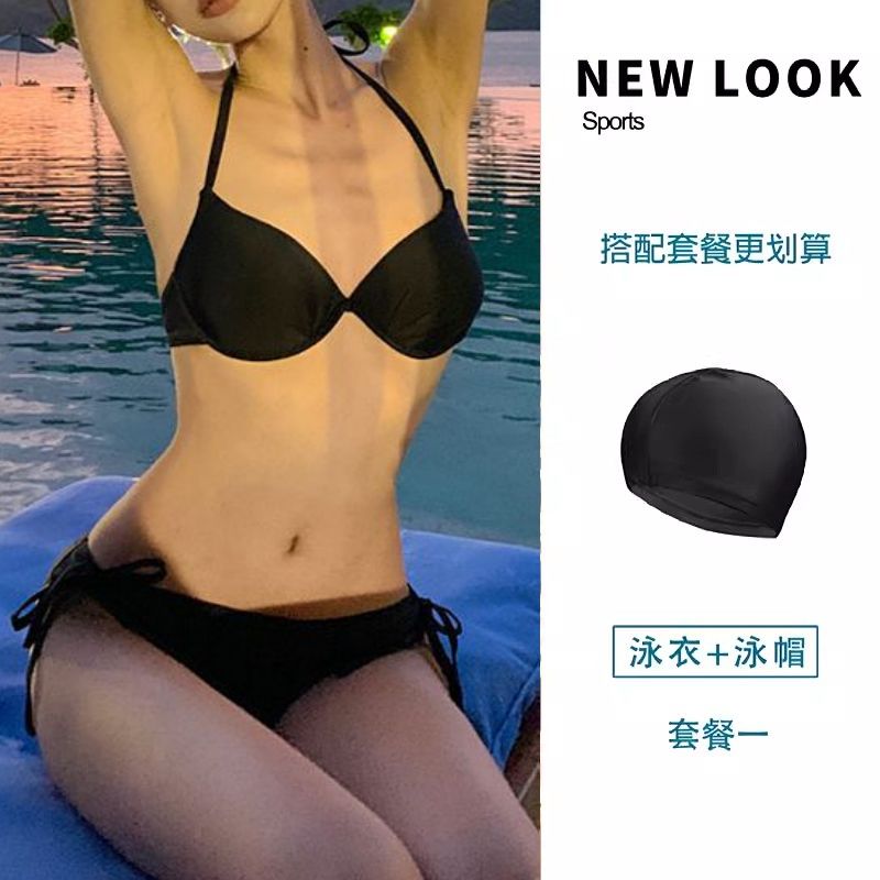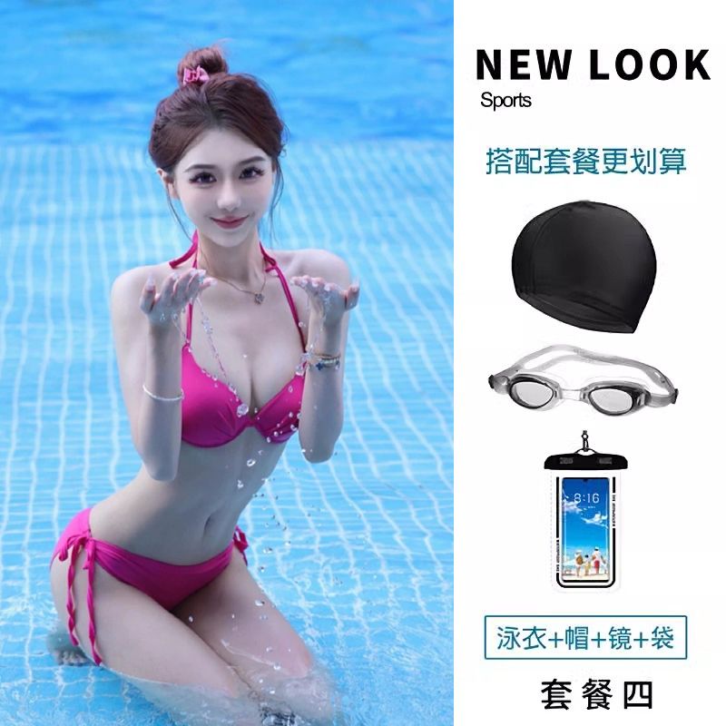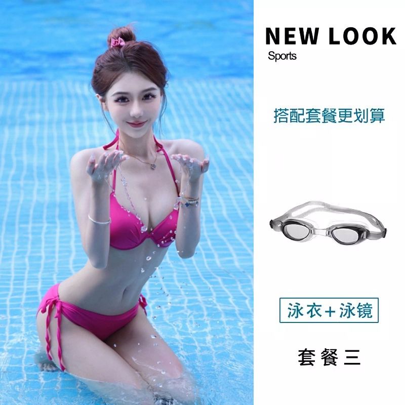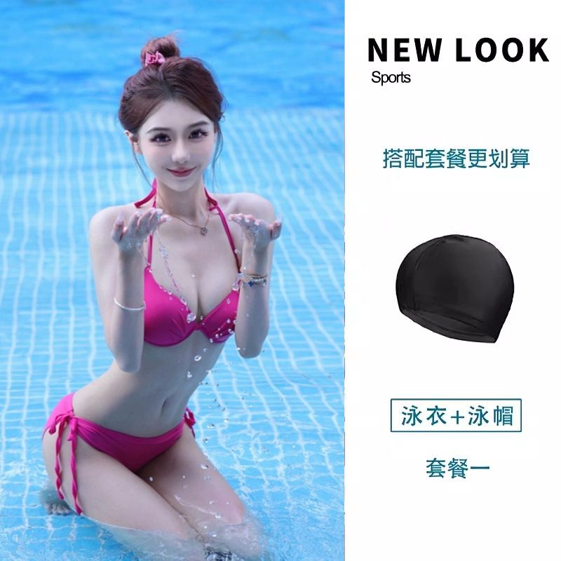 2024新款泳衣女玫红比基尼三角钢托聚拢胸性感三点式度假温泉泳装