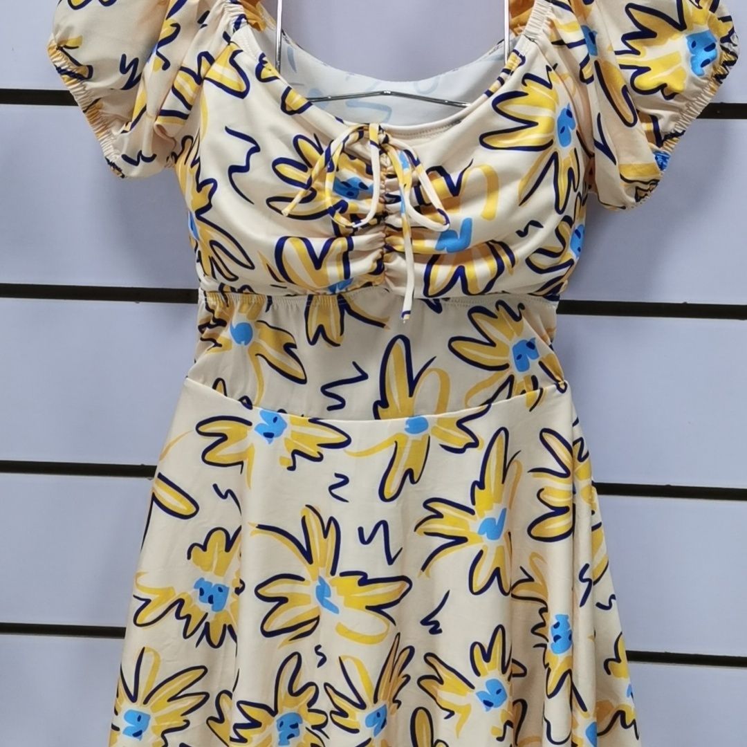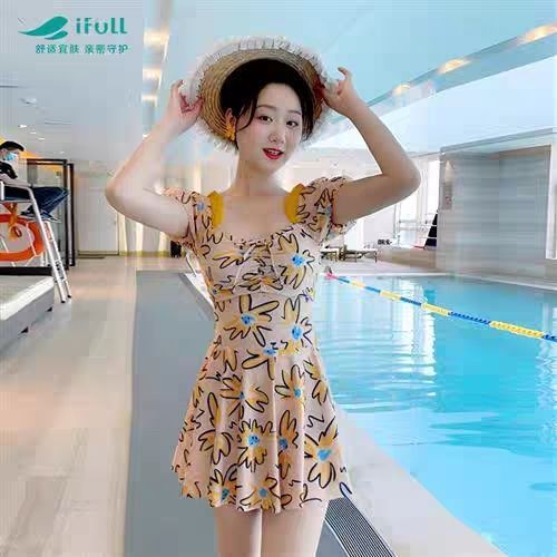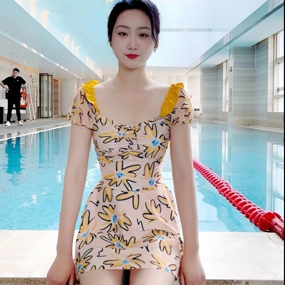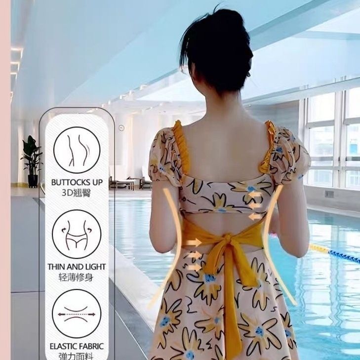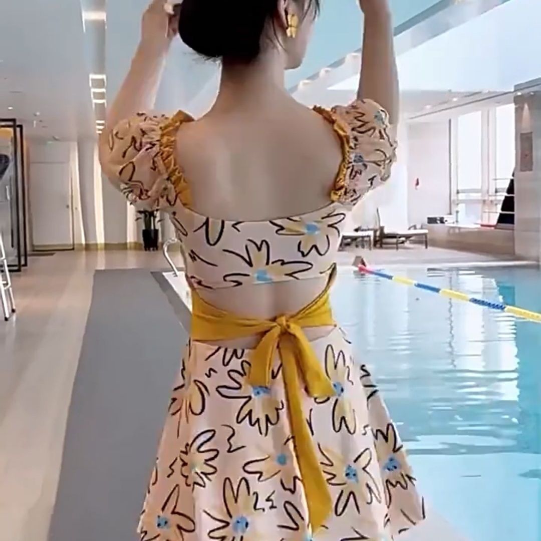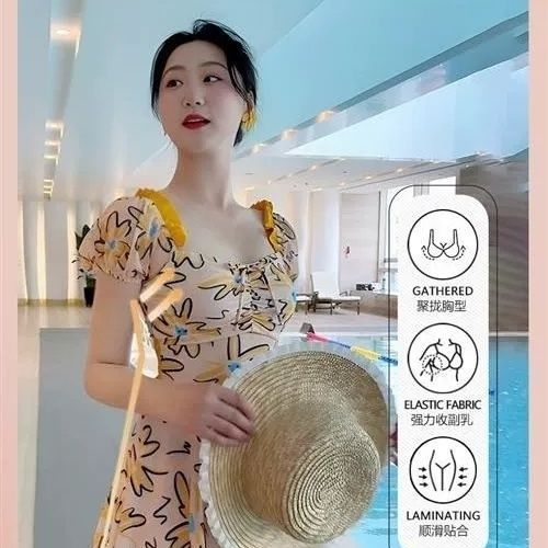 遮肚显瘦法式浪漫碎花印花大码短袖泡泡袖遮肉分体连衣裙泳装