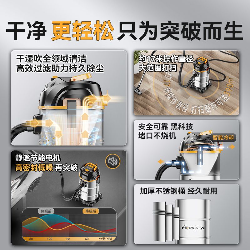 工业吸尘器家用大吸力商用保洁装修美缝专用汽车用小型宠物吸尘机