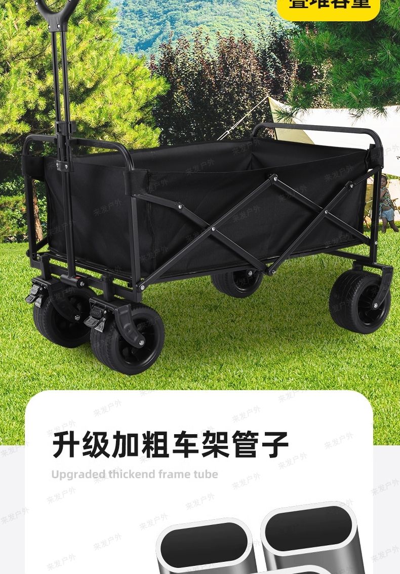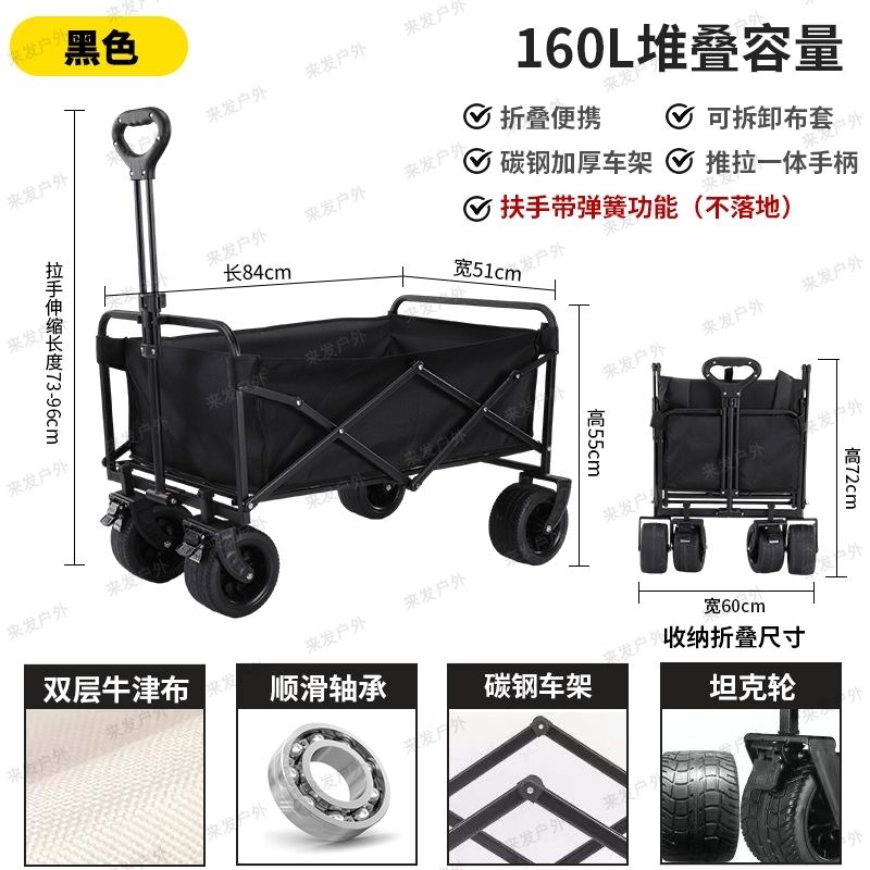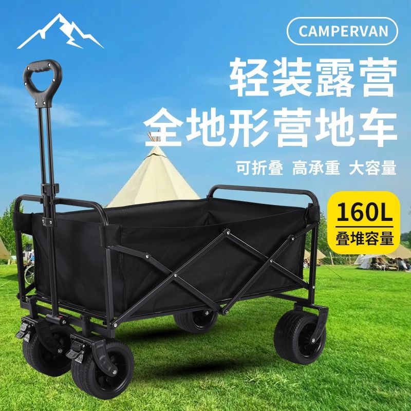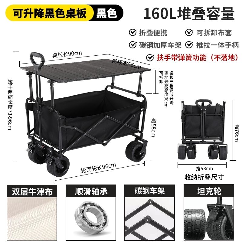 升降露营推车营地拖车摆摊小推车户外可折叠超大野营手拉车野餐车