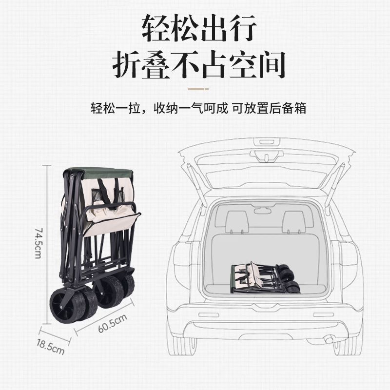 2024新款露营推车可折叠户外手推野餐车营地拖车拉杆小拉车野营车