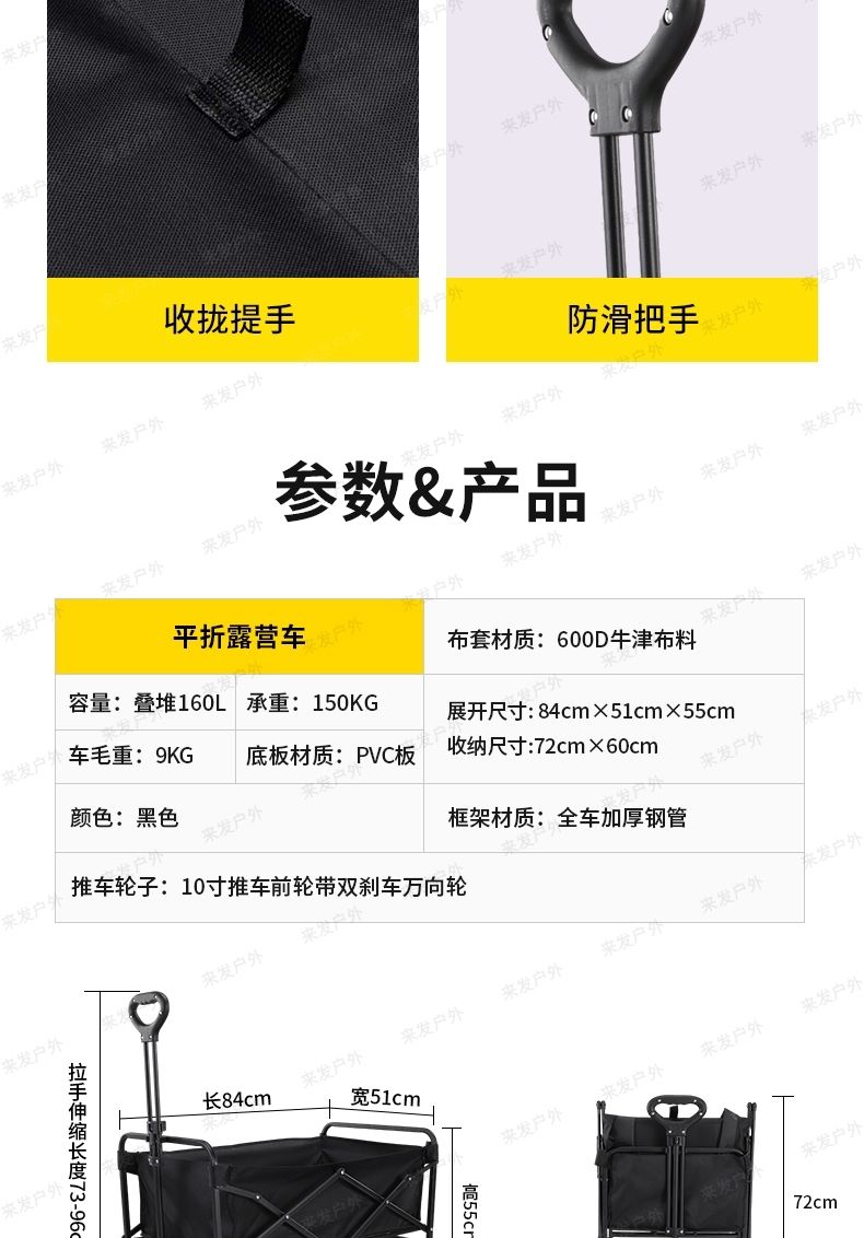 露营推车可折叠户外营地车手推野餐车新款露营车拖车拉杆车沙滩车