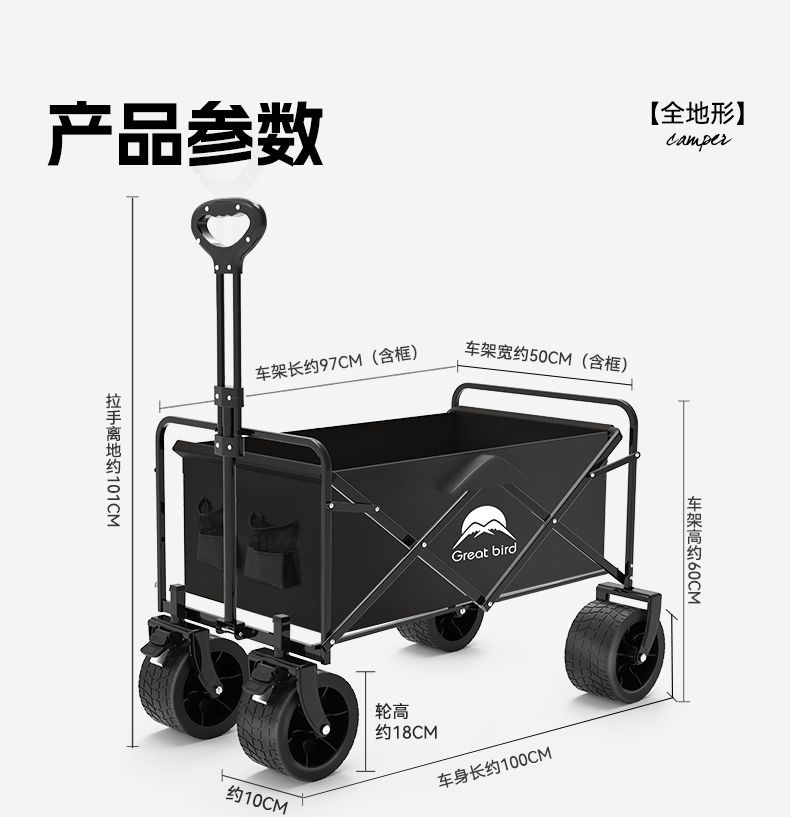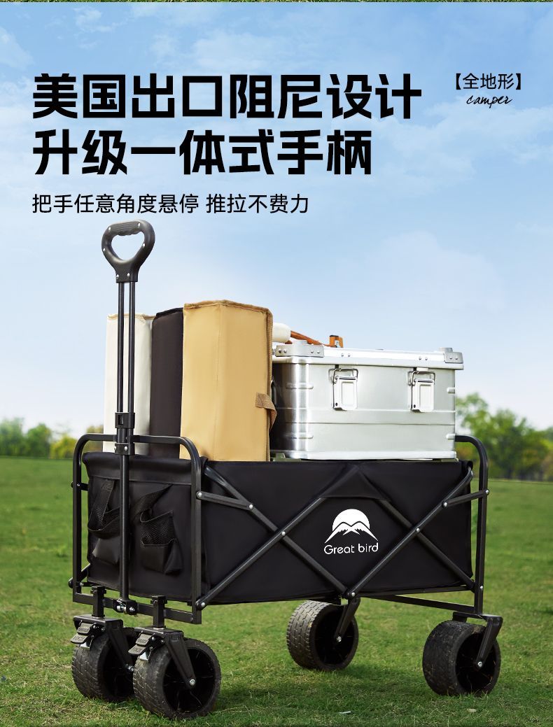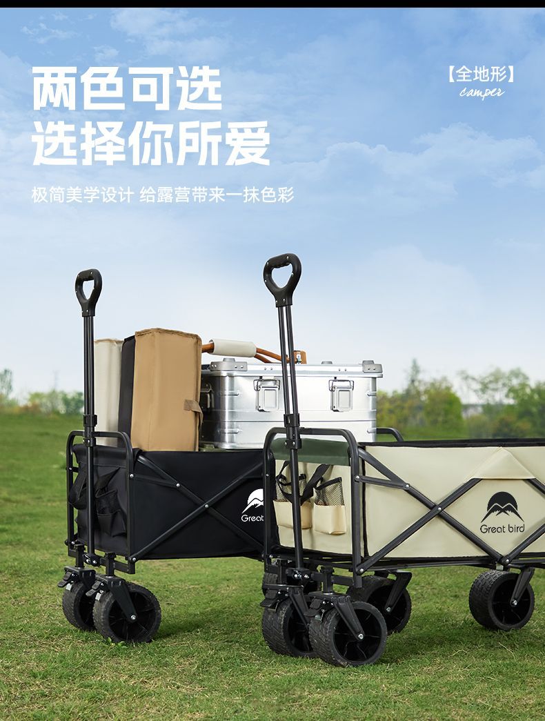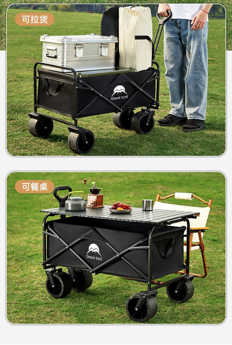 露营车户外可折叠推车营地车拖车野餐车手拉杆多功能摆摊小推车