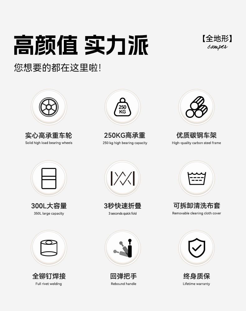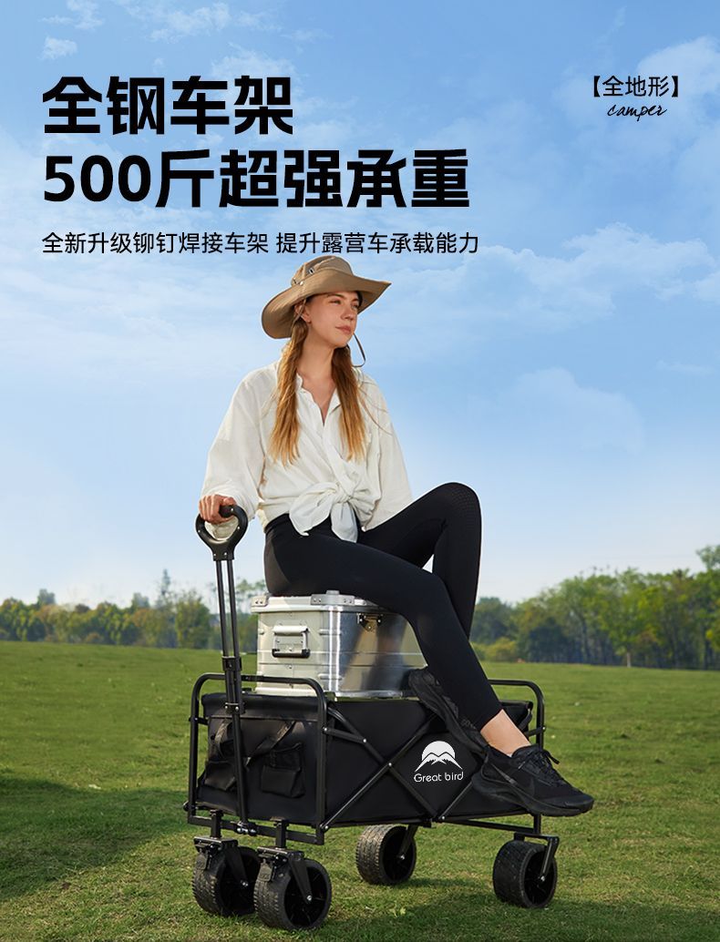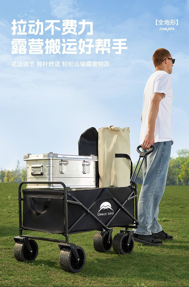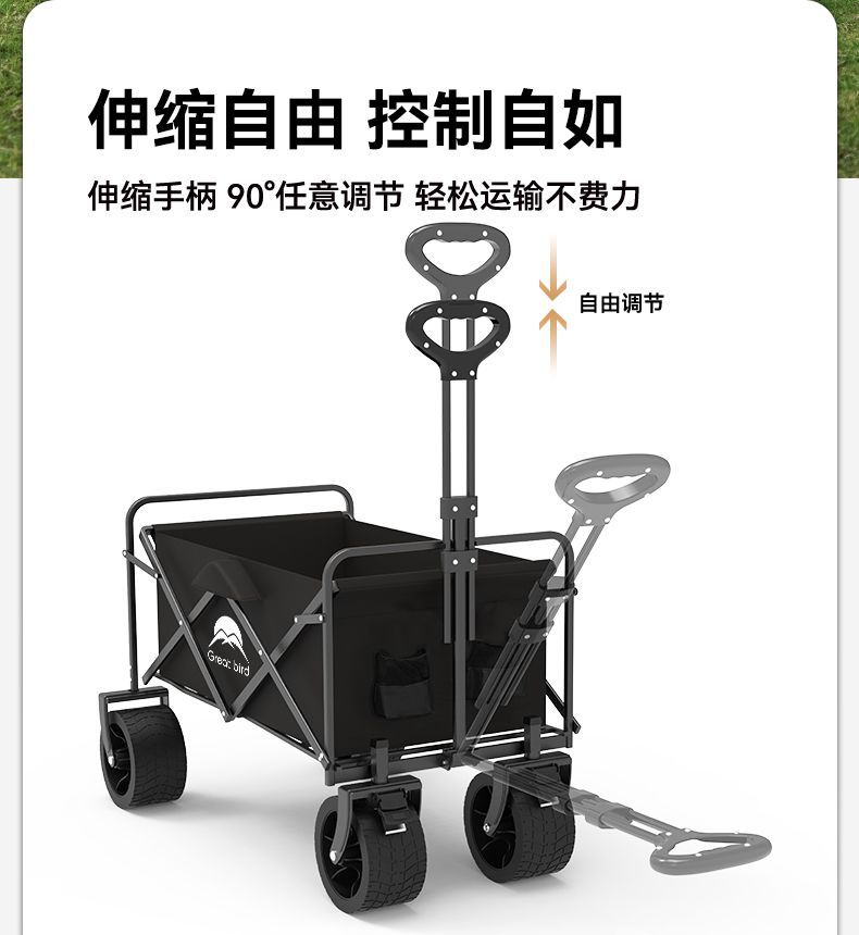 露营车户外可折叠推车营地车拖车野餐车手拉杆多功能摆摊小推车
