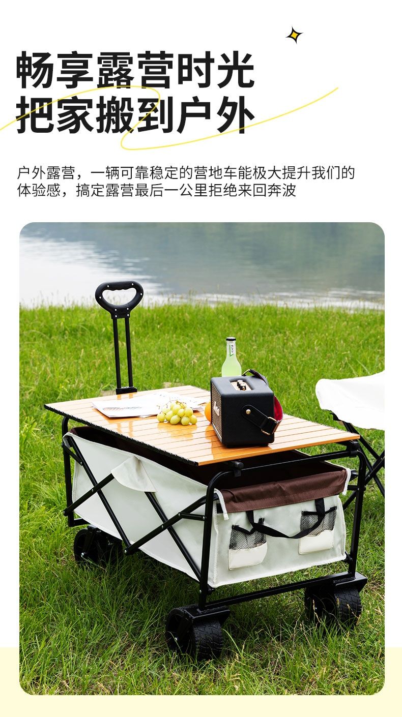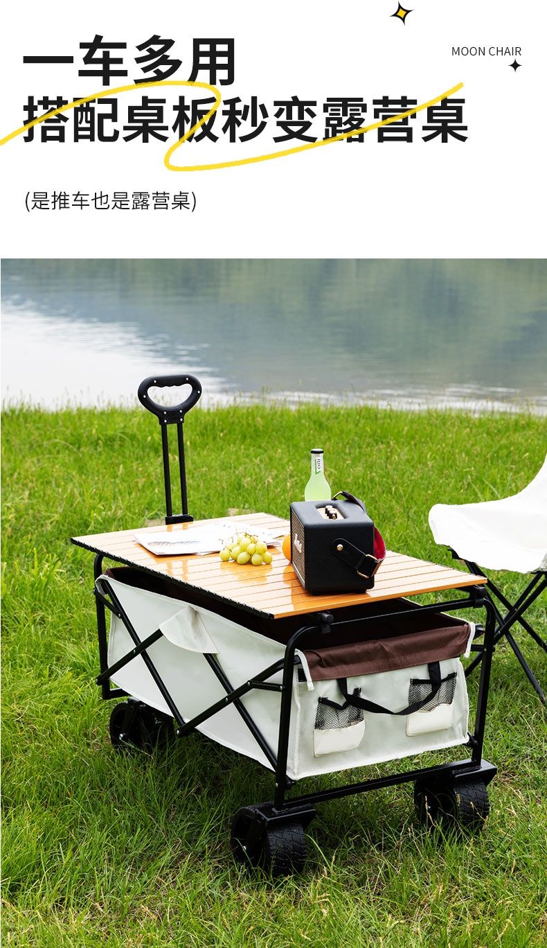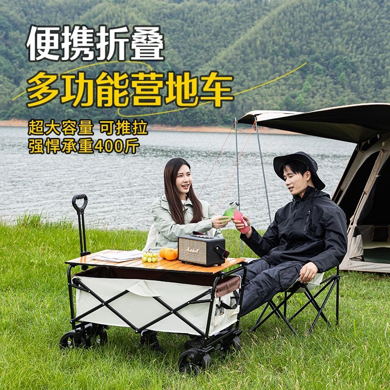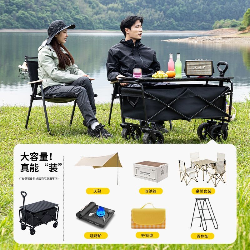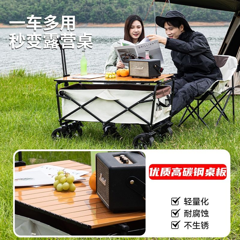 露营车户外可折叠营地车野餐野营车桌板拖车手拉杆摆摊露营小推车