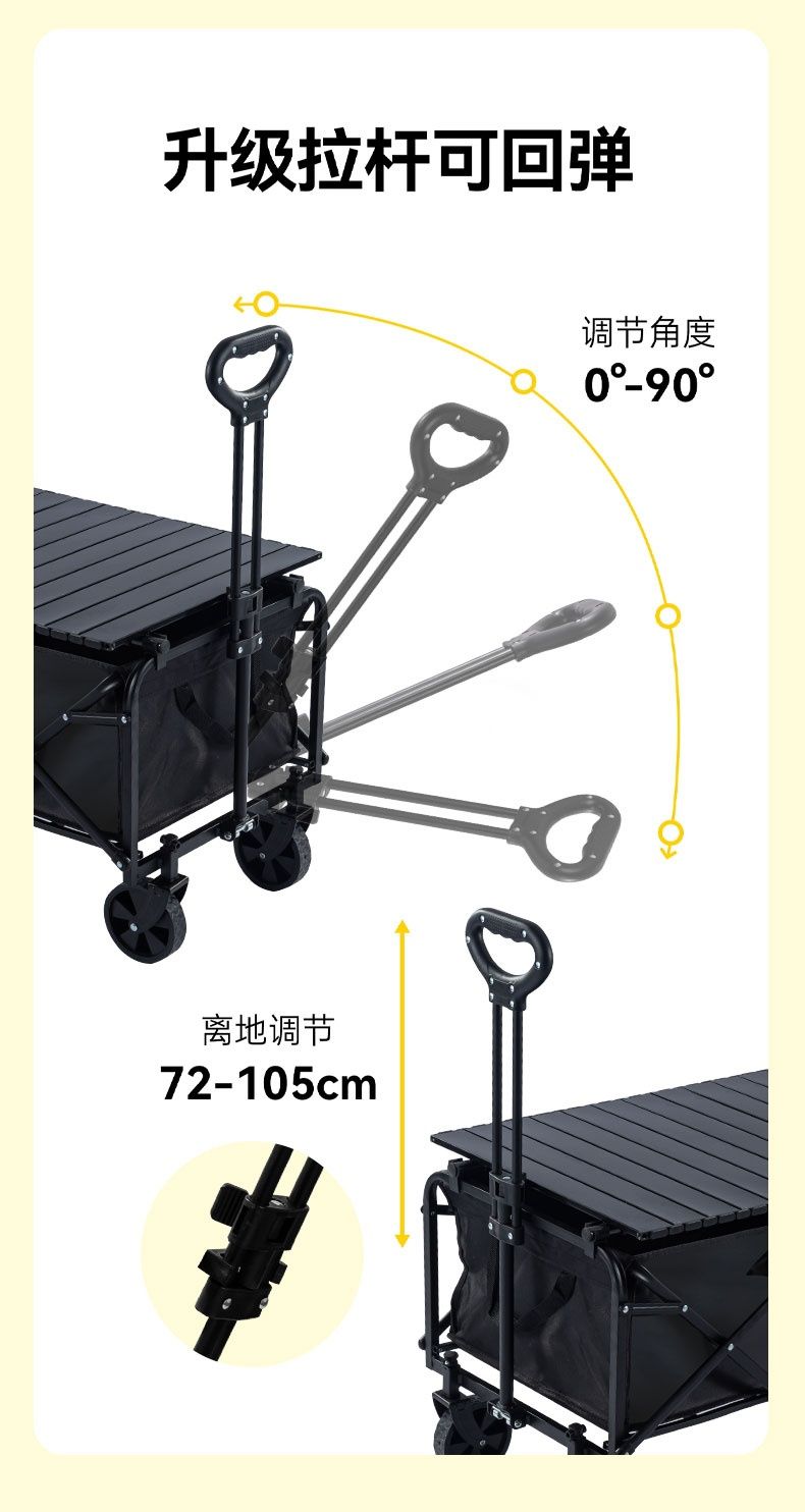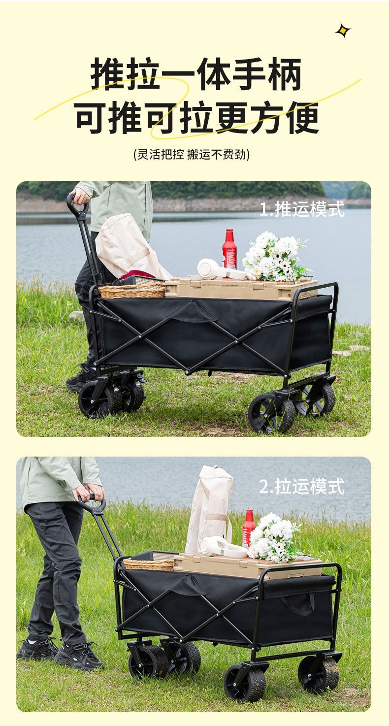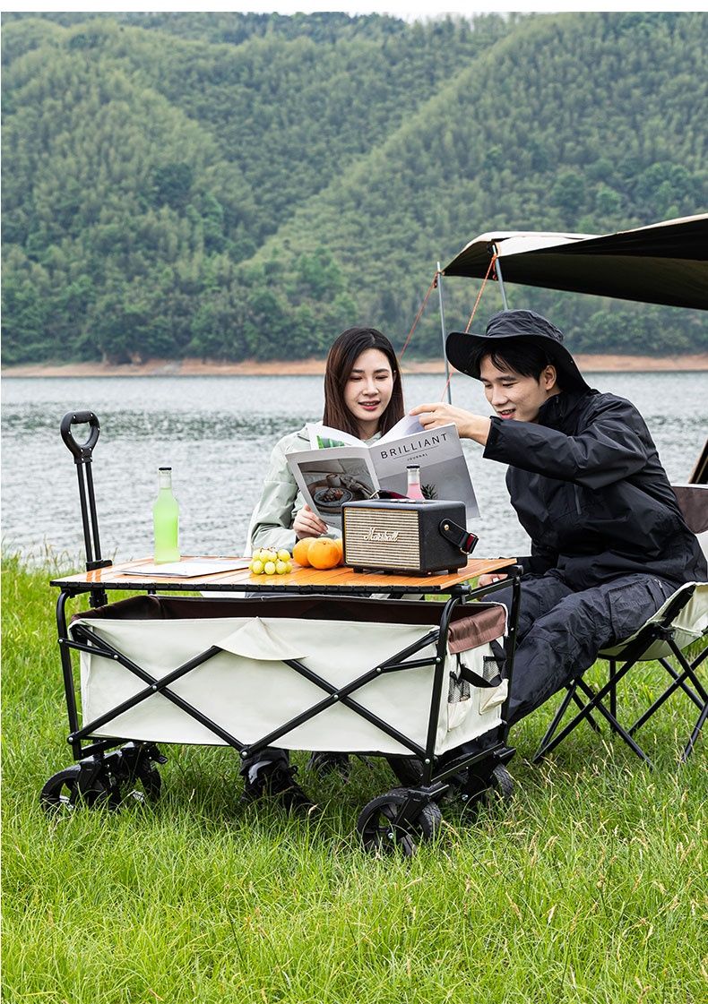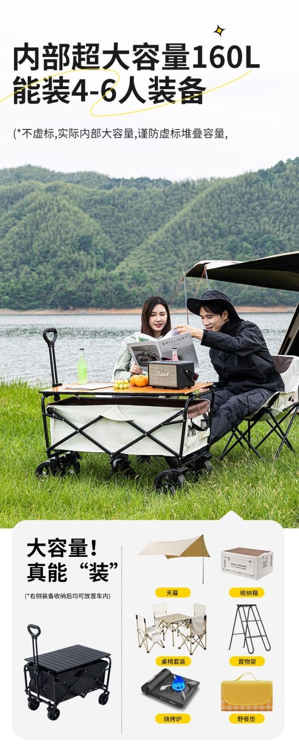 露营车户外可折叠营地车野餐野营车桌板拖车手拉杆摆摊露营小推车