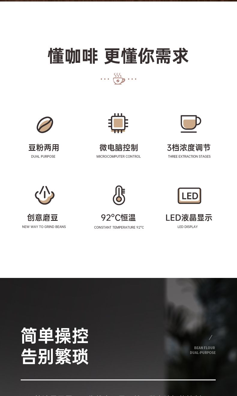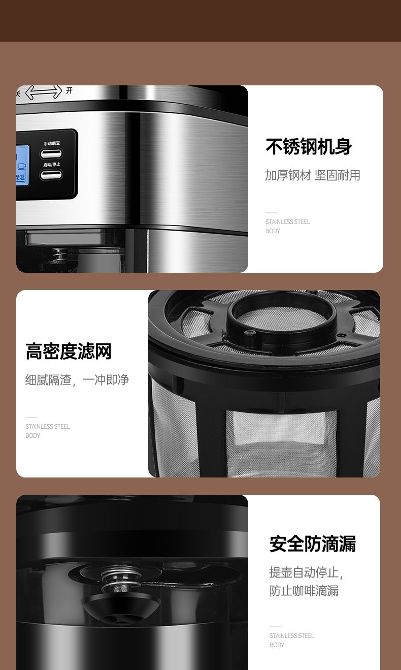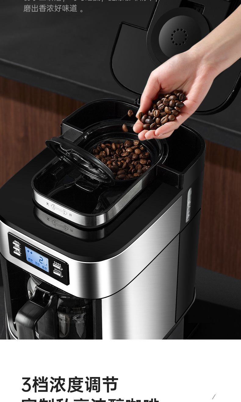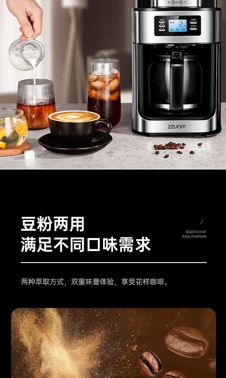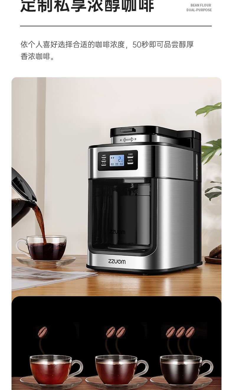 左左摩咖啡机全自动美式智能磨咖啡豆保温家用磨豆咖啡机一体机