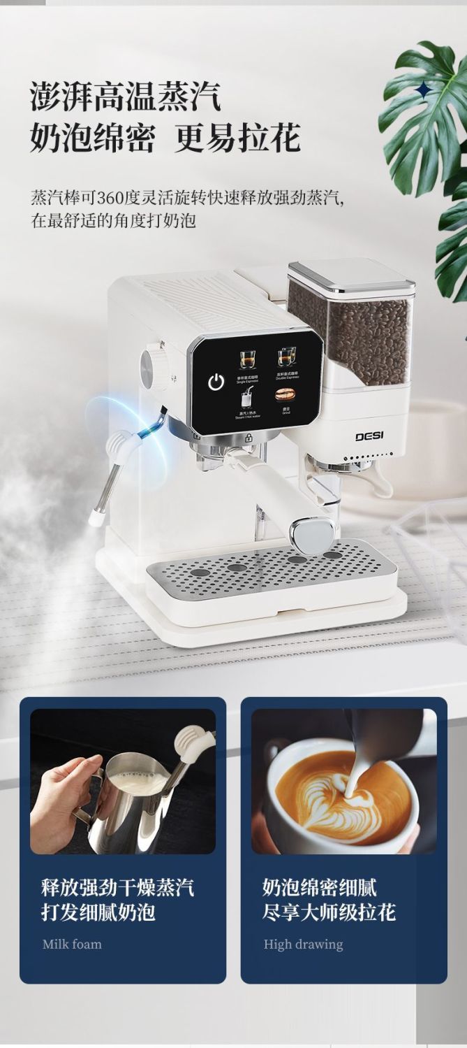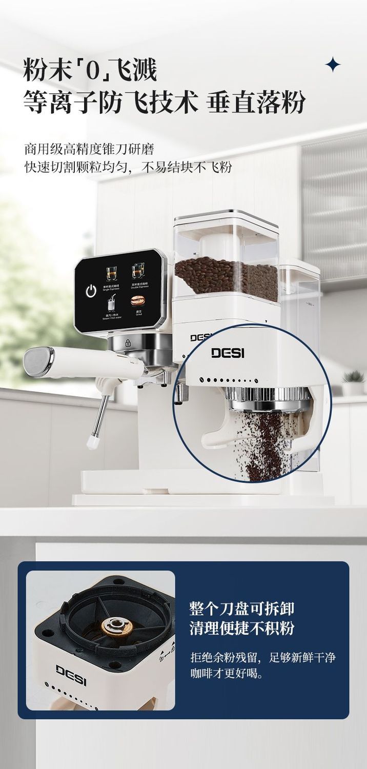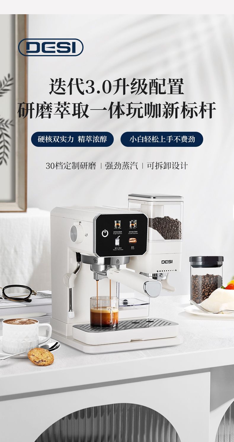 DESI德思意式半自动研磨一体小型家用咖啡机浓缩蒸汽打奶泡可商用