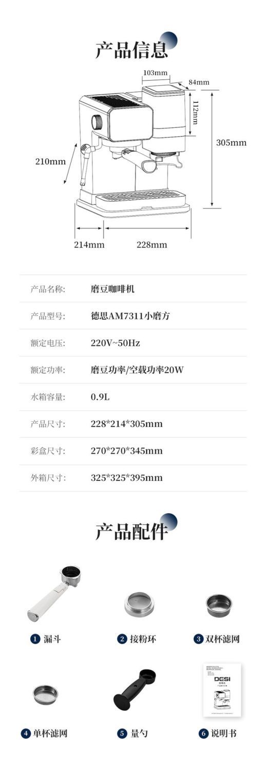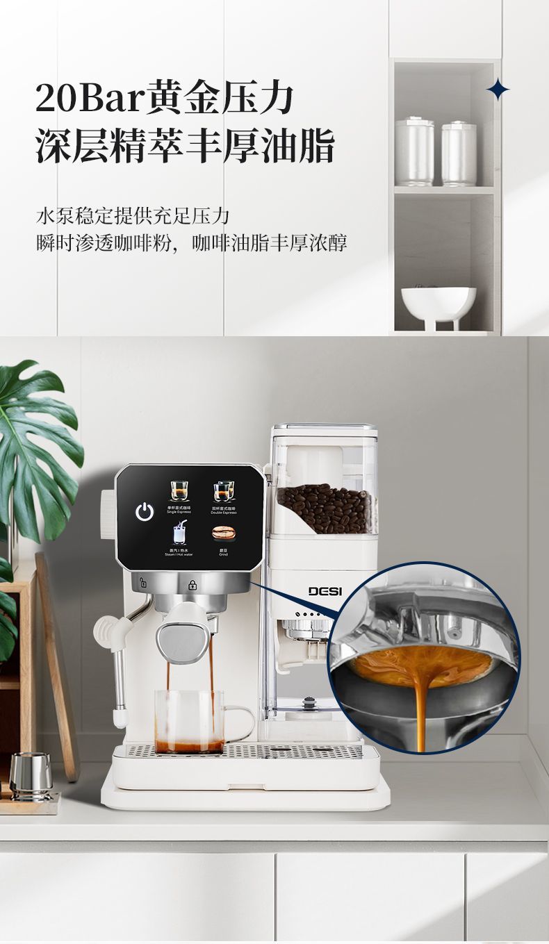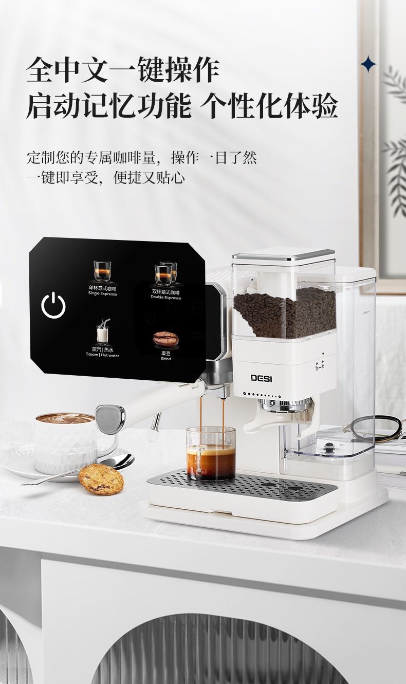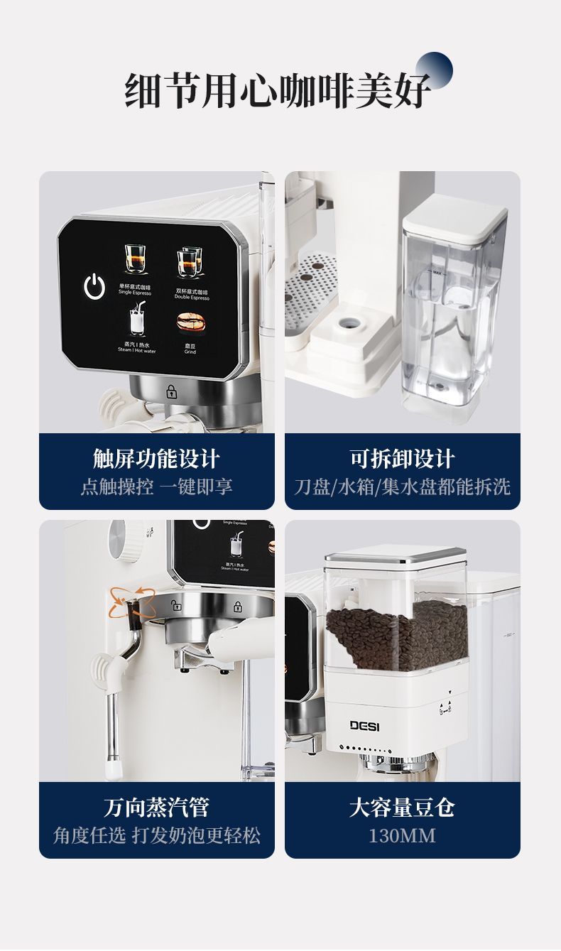 DESI德思意式半自动研磨一体小型家用咖啡机浓缩蒸汽打奶泡可商用