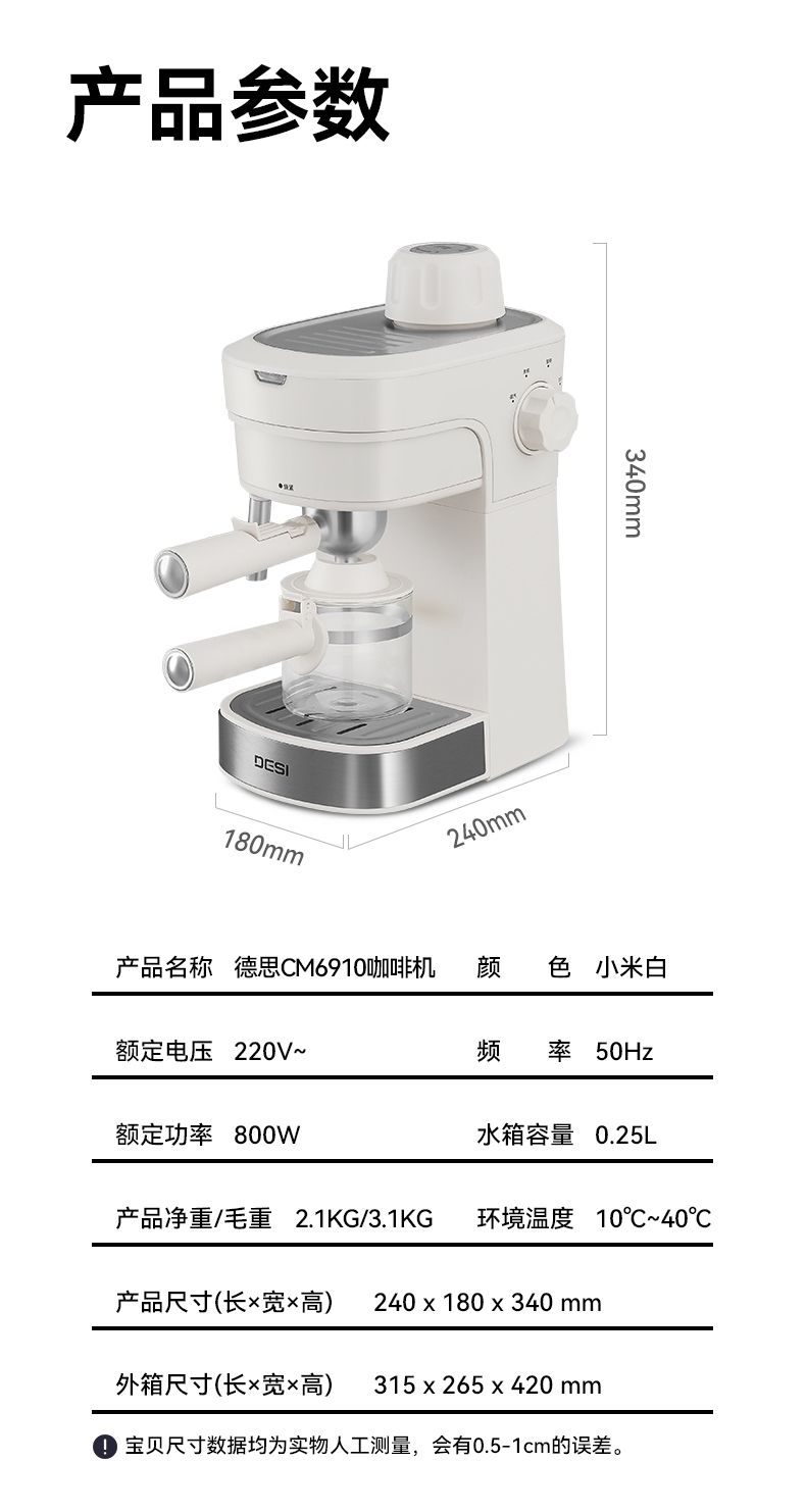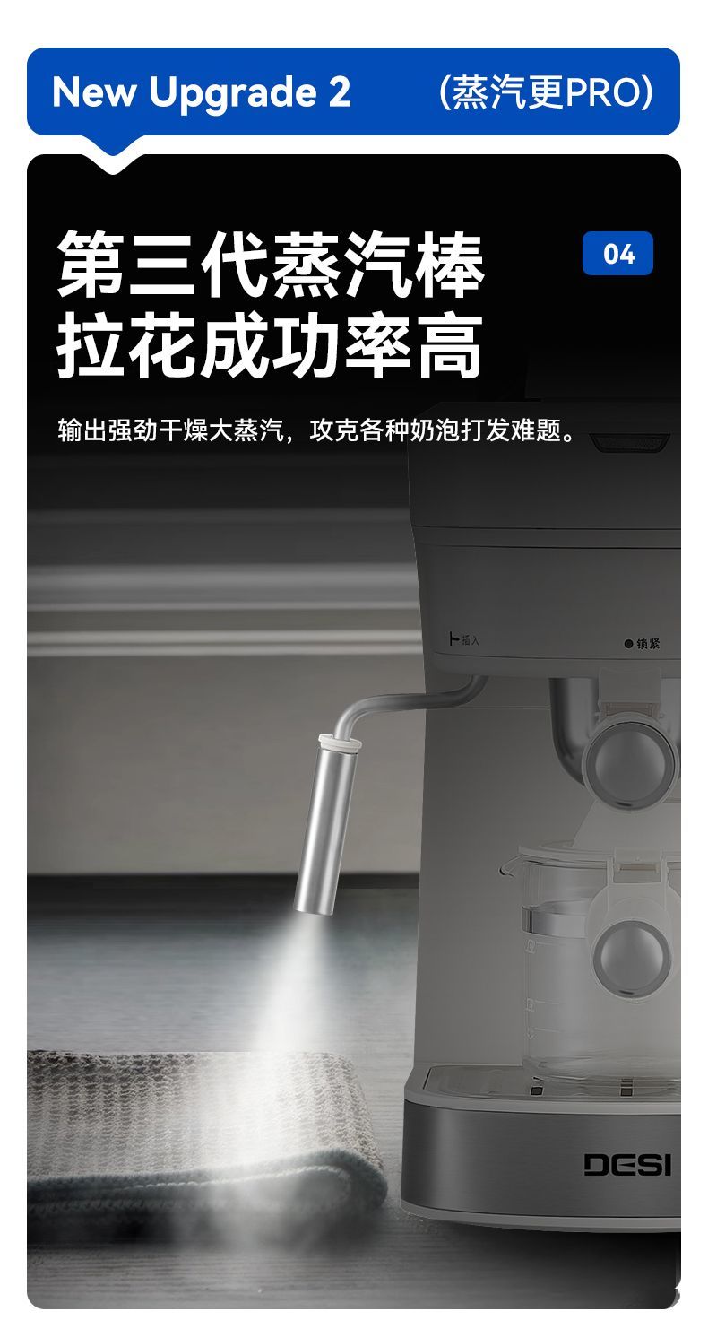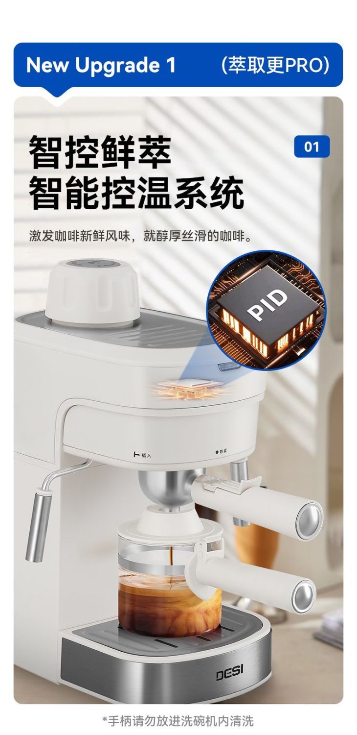 DESI美式半自动咖啡机家用小型浓缩萃取蒸汽打奶泡一体机学生宿舍