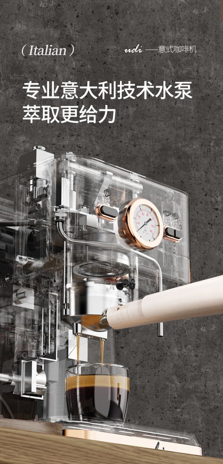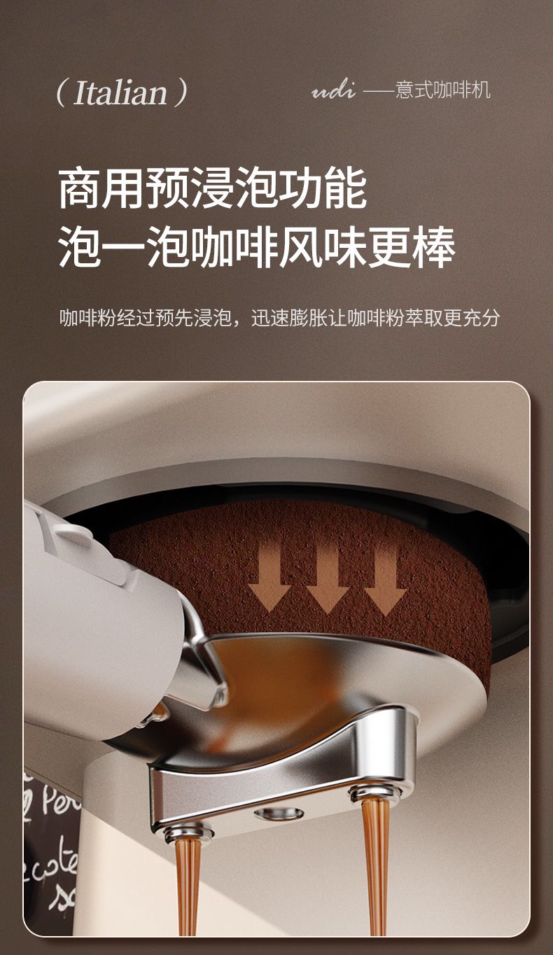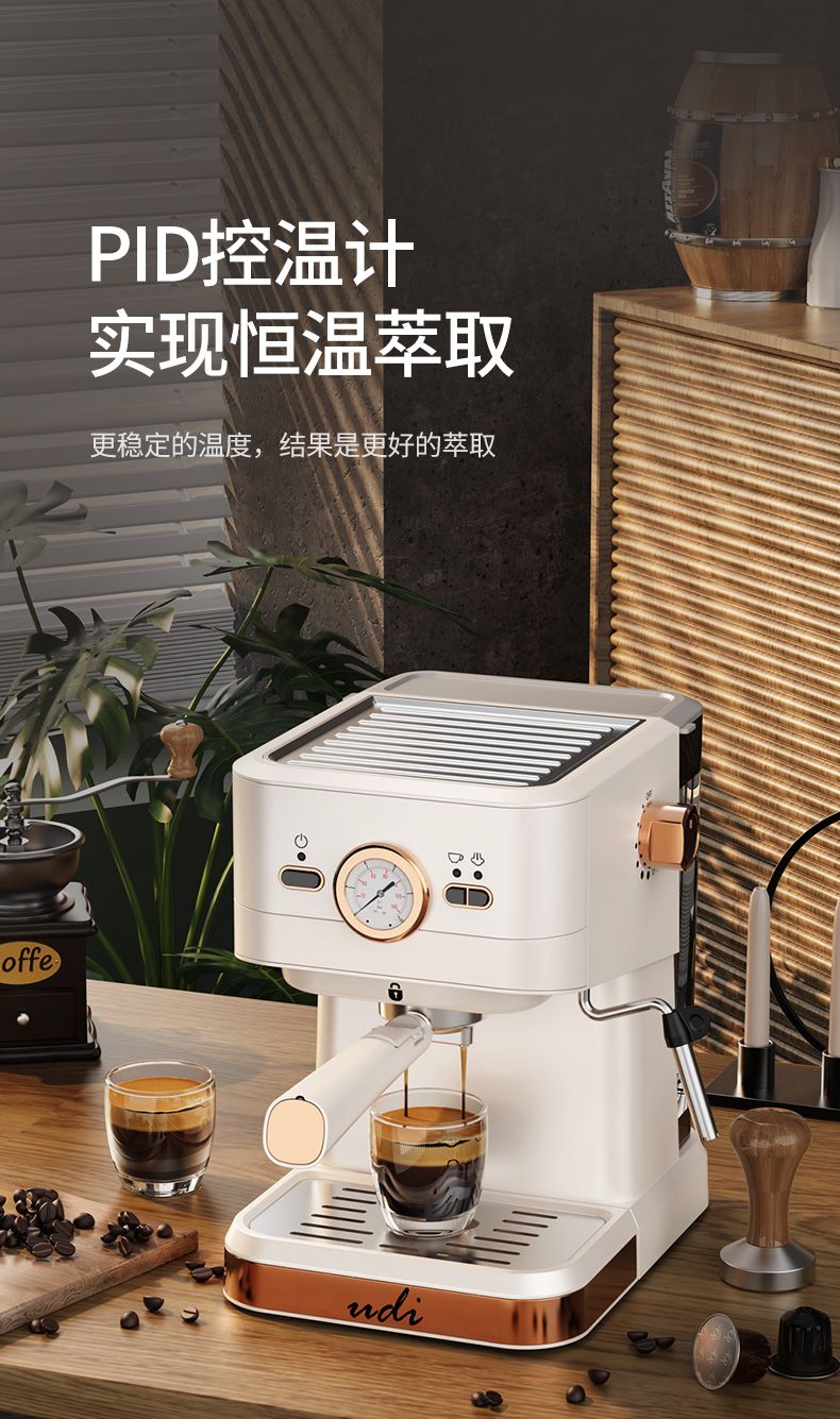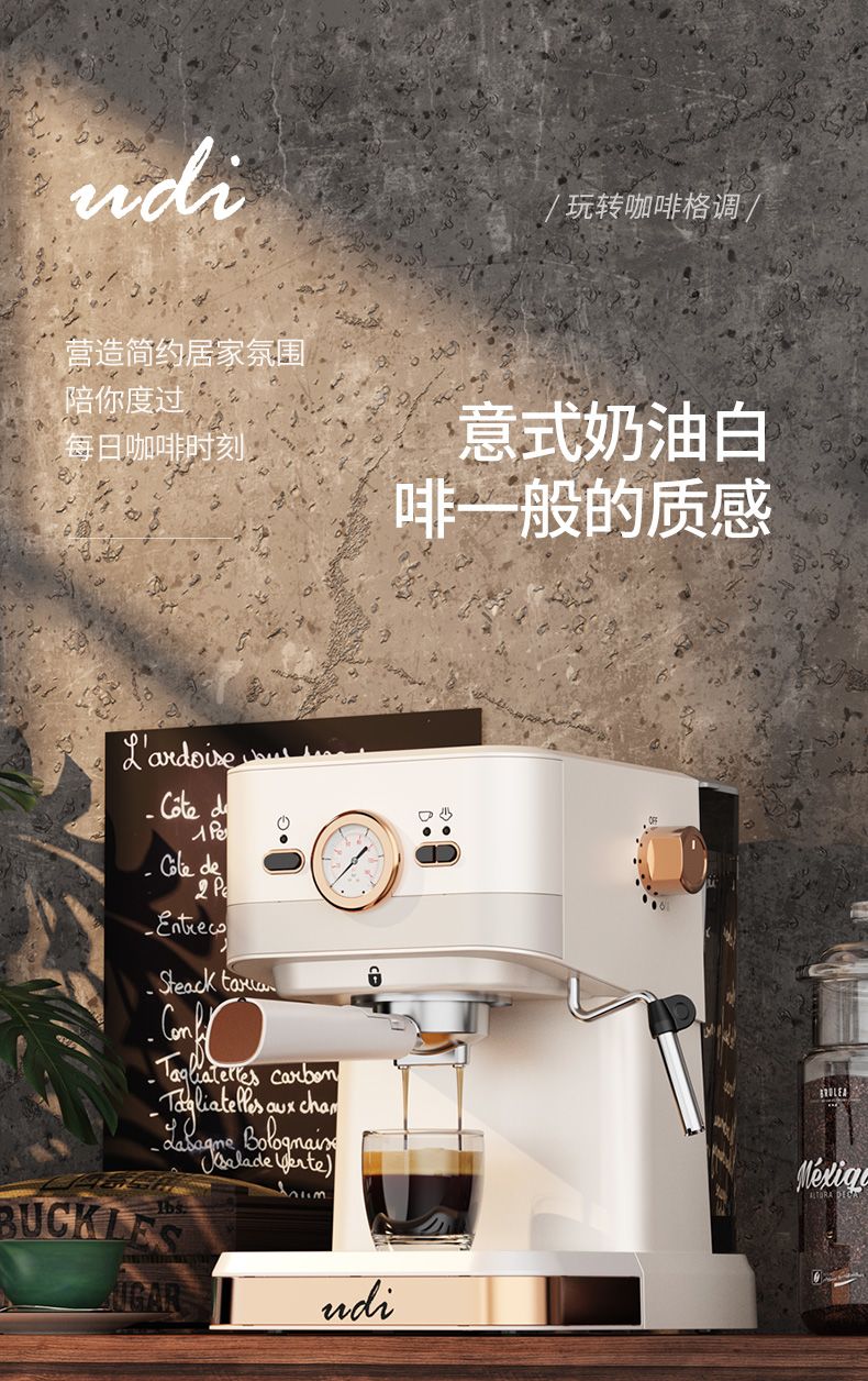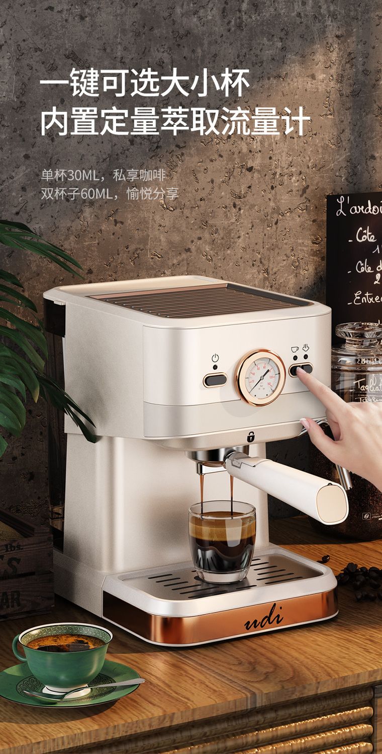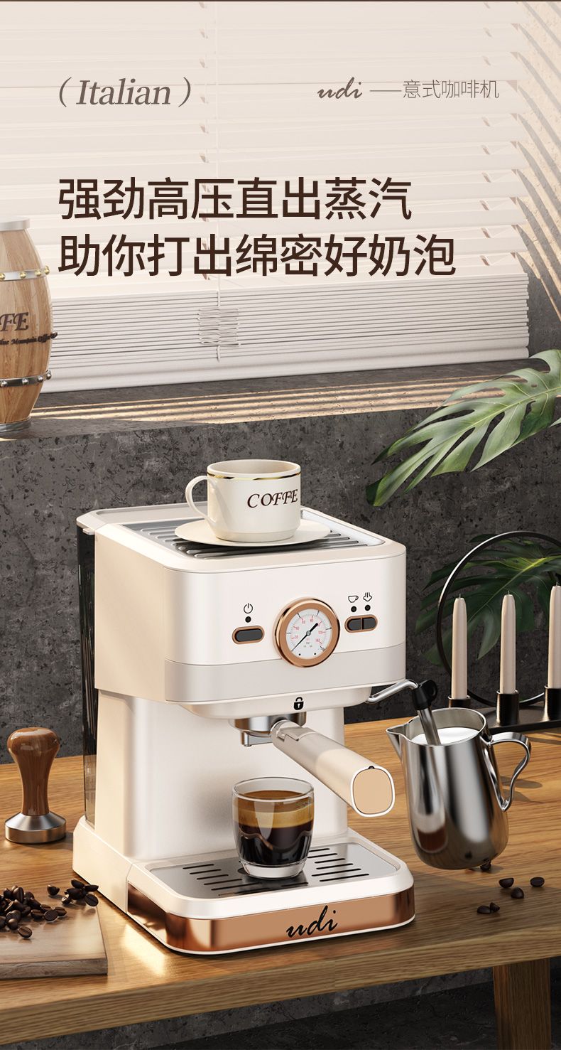 UDI咖啡机家用美意式半全自动现磨豆浓缩蒸汽打奶泡
