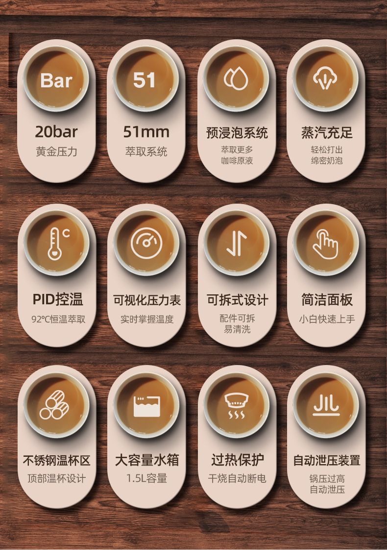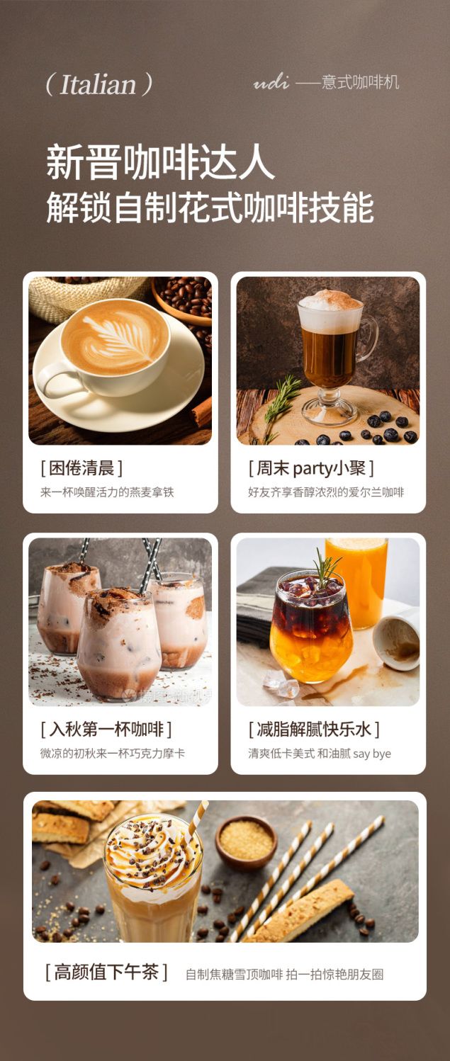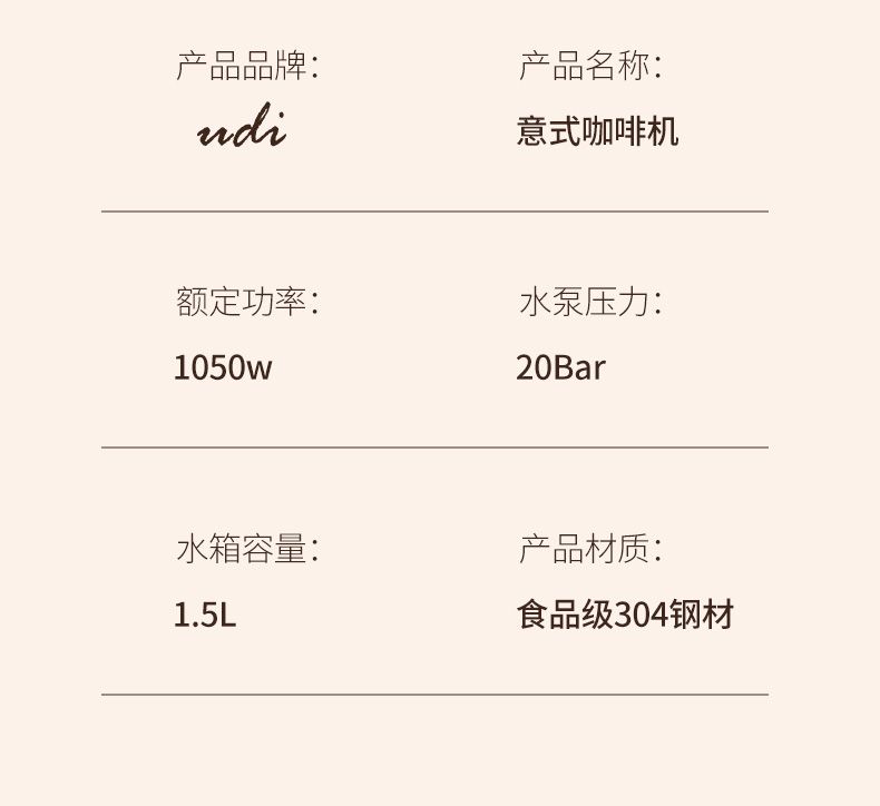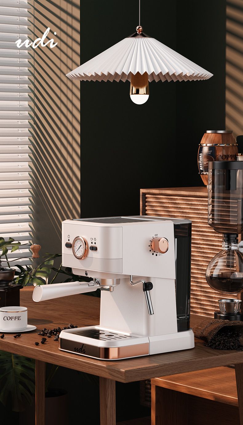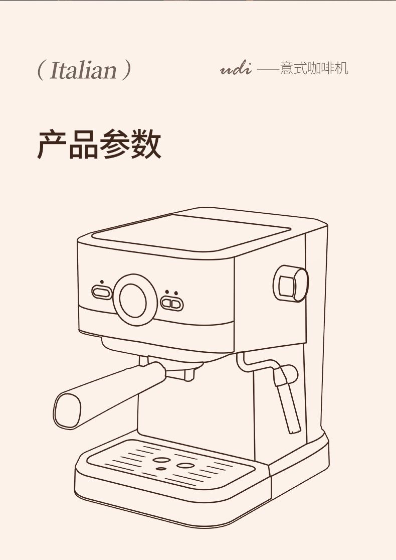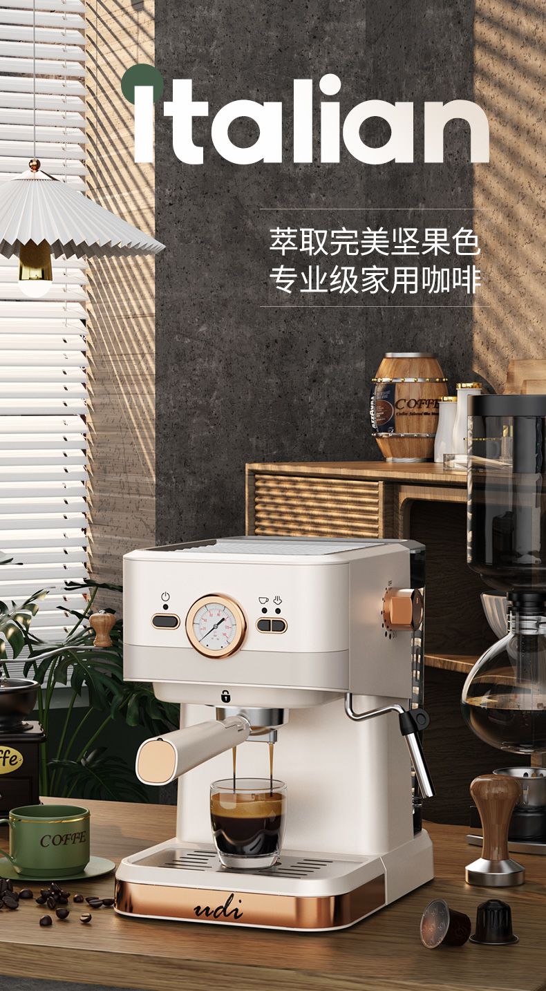 UDI咖啡机家用美意式半全自动现磨豆浓缩蒸汽打奶泡
