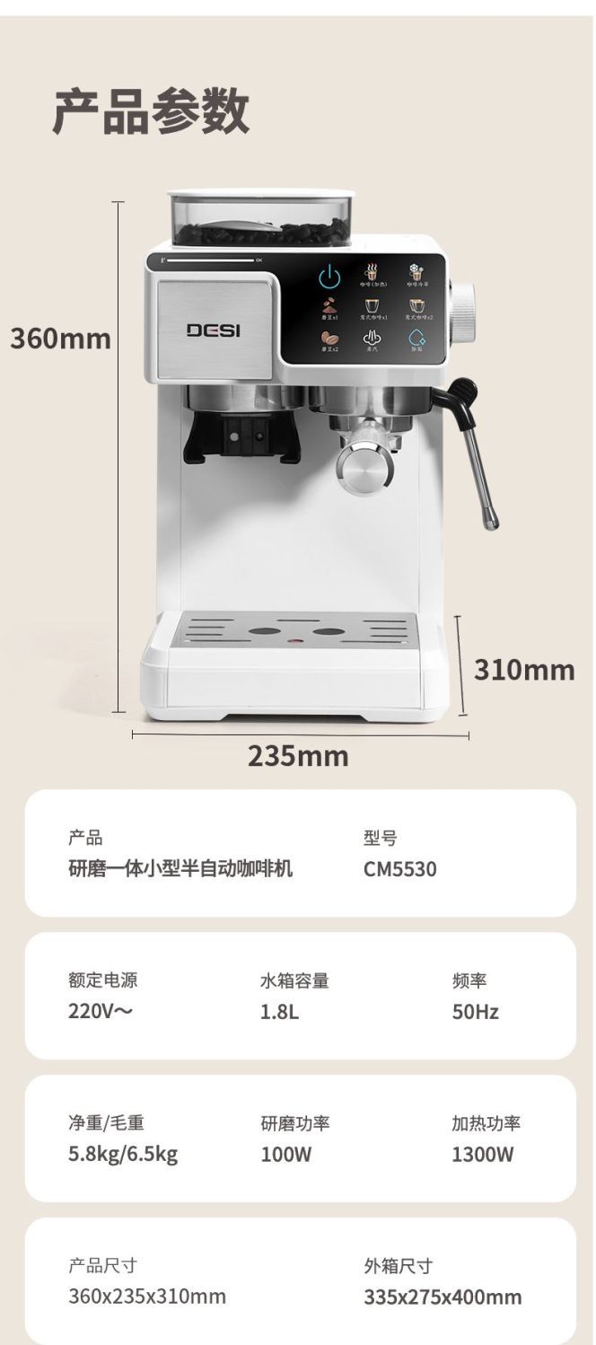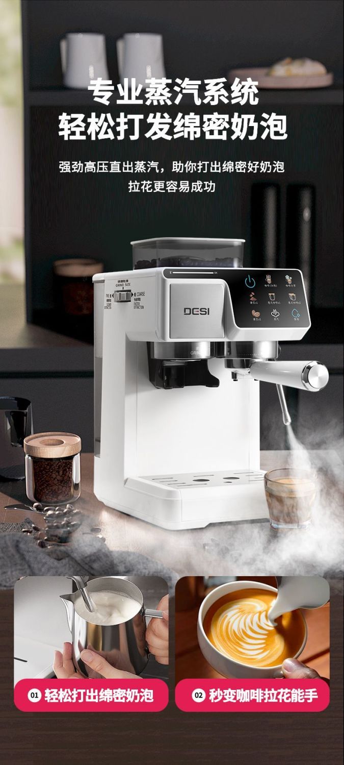 DESI自动智能研磨一体冷热双萃家用意美式咖啡机蒸汽奶泡小型商用