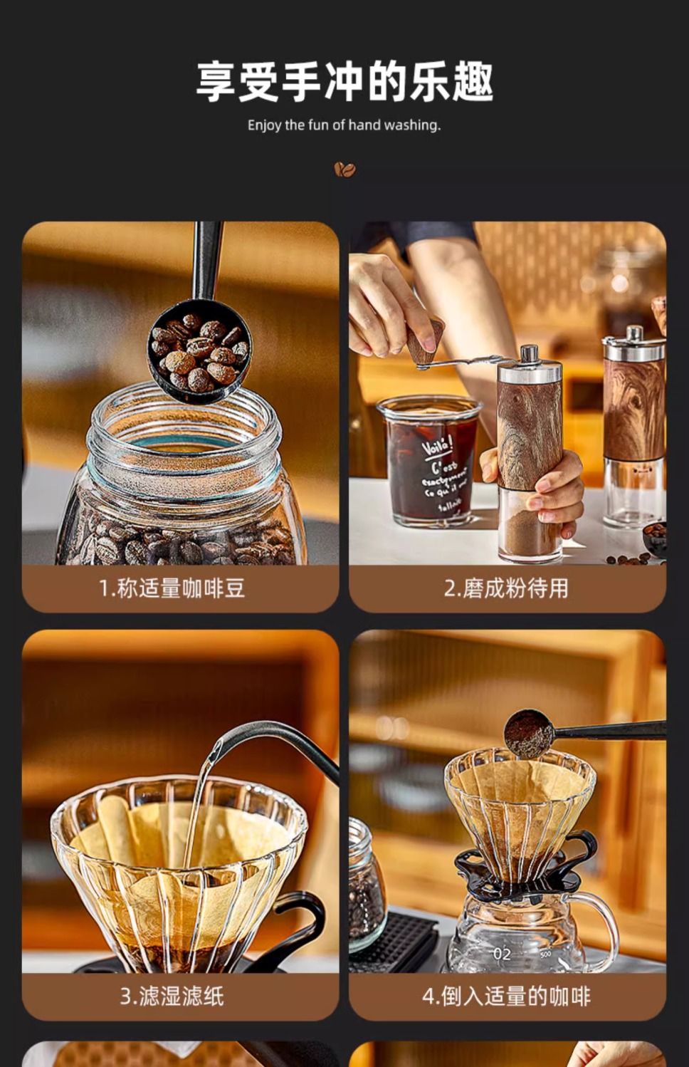 手冲咖啡壶套装手磨咖啡机手摇家用小型咖啡豆研磨器具全套咖啡机