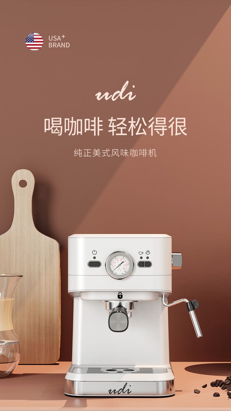 UDI意式咖啡机小型商用蒸汽打泡磨豆咖啡机浓缩一体机咖啡机家用