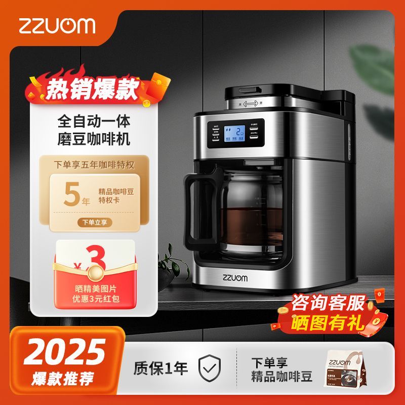 左左摩全自动咖啡机美式智能咖啡豆办公室现磨保温家用磨豆一体机