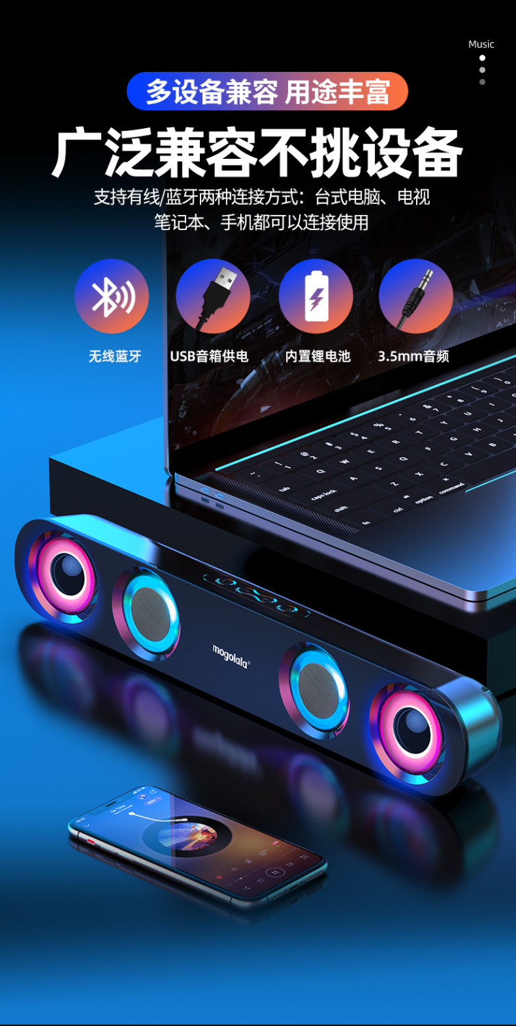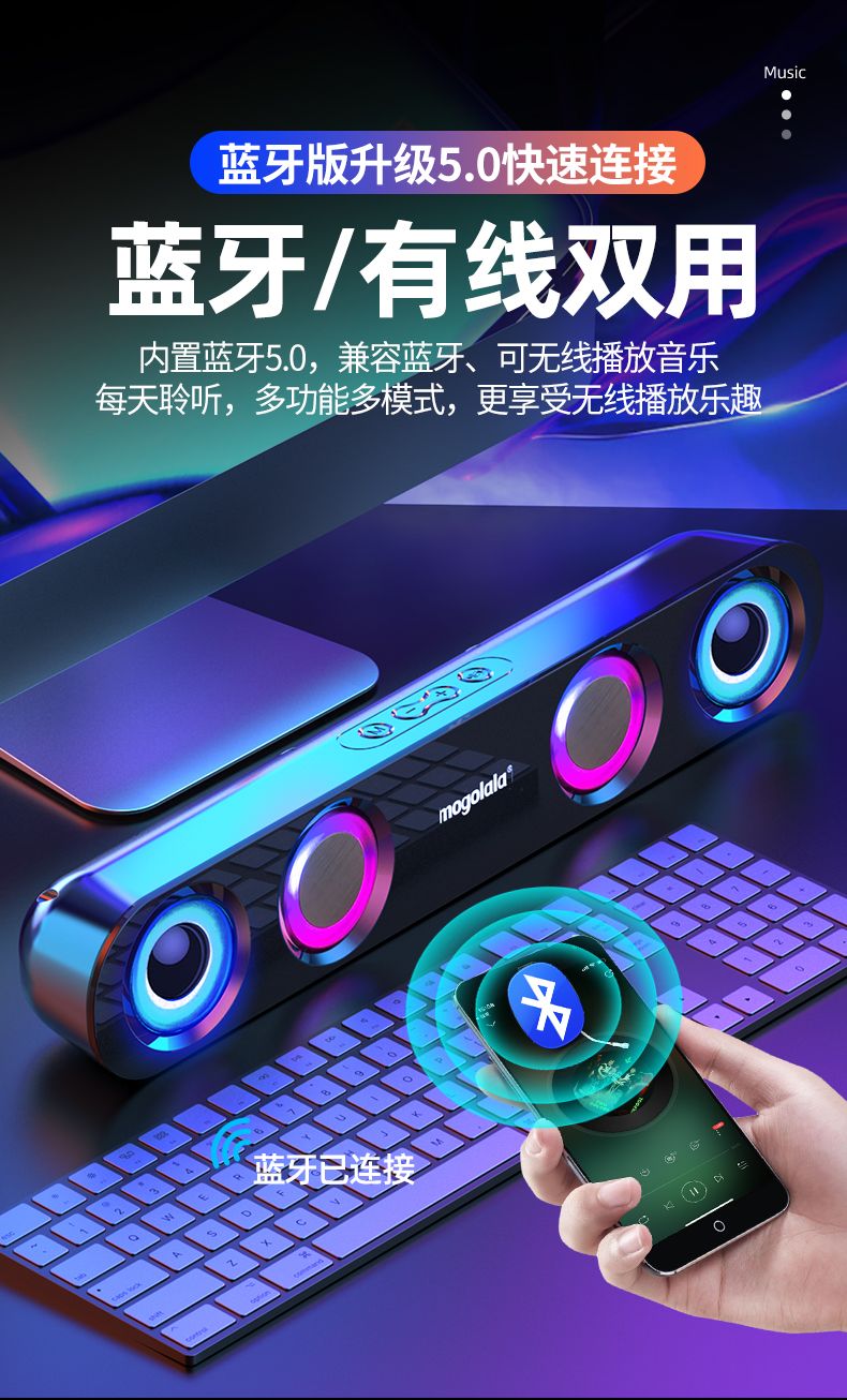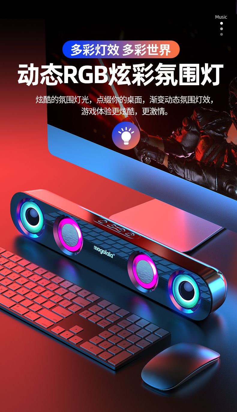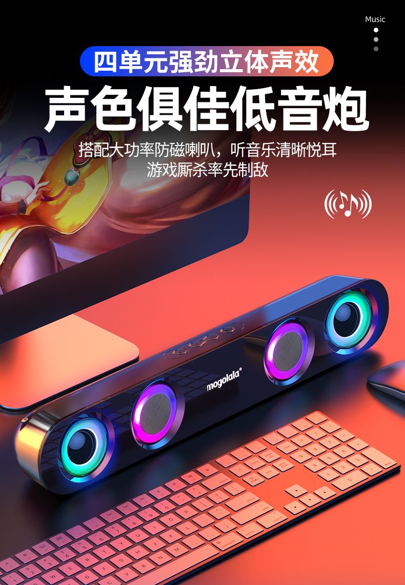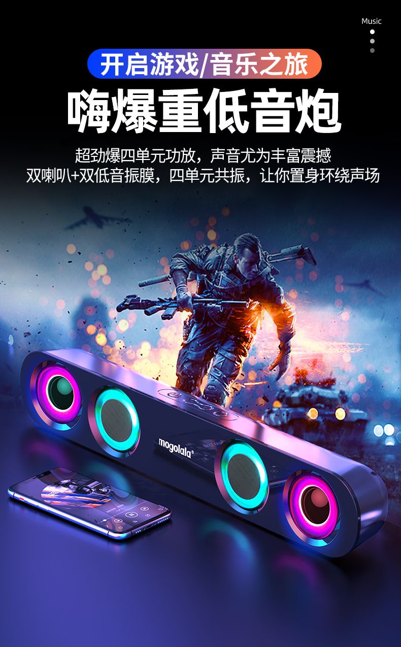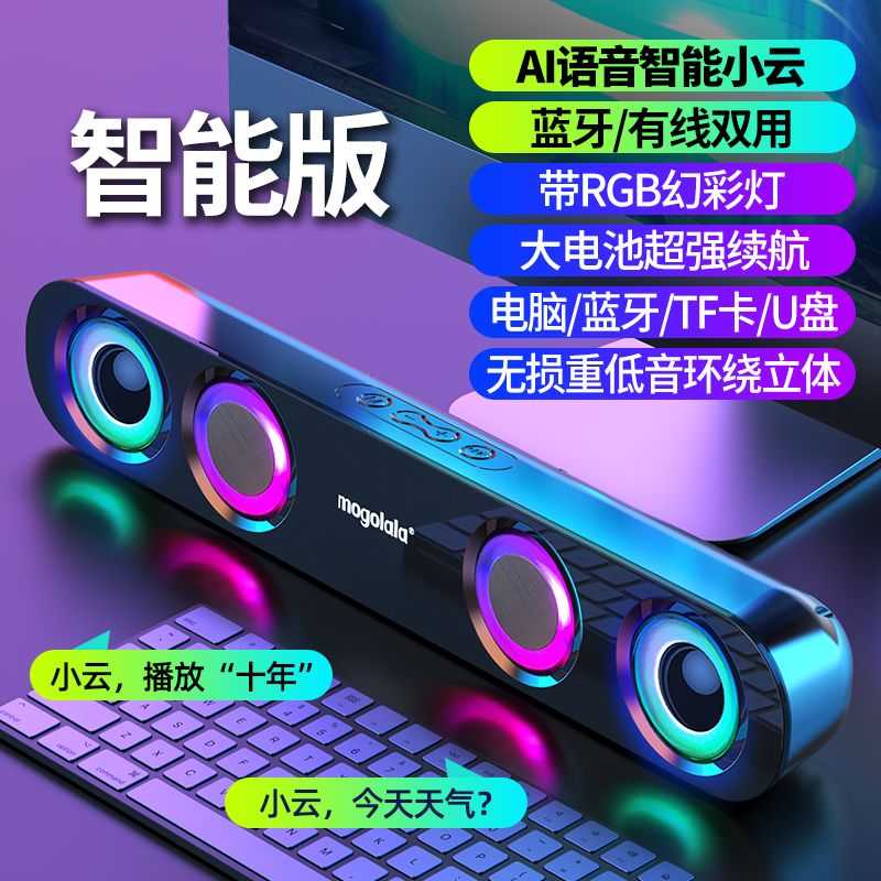 智能蓝牙音响电脑台式音响大音量双喇叭重低音炮音响氛围灯小音箱