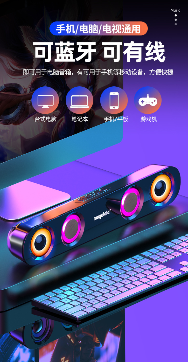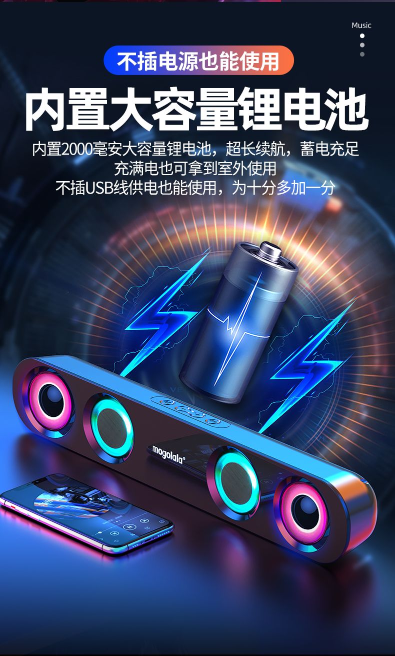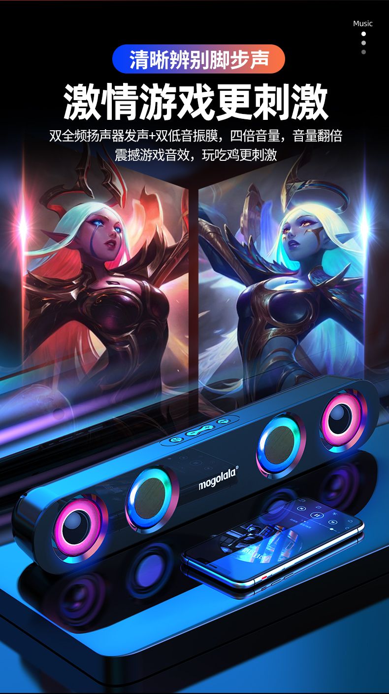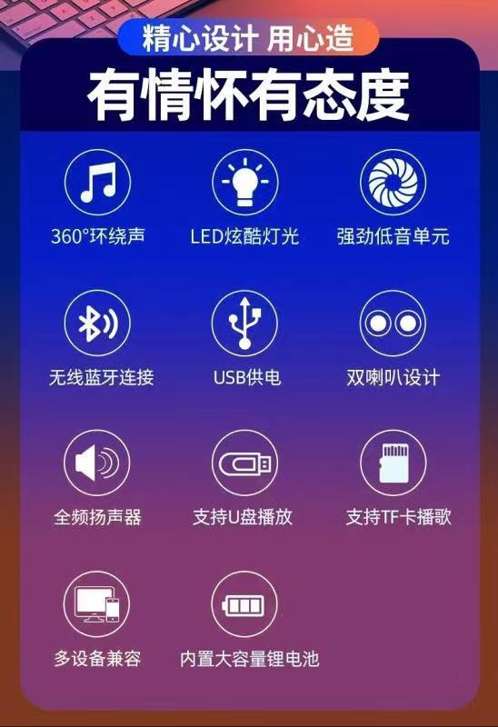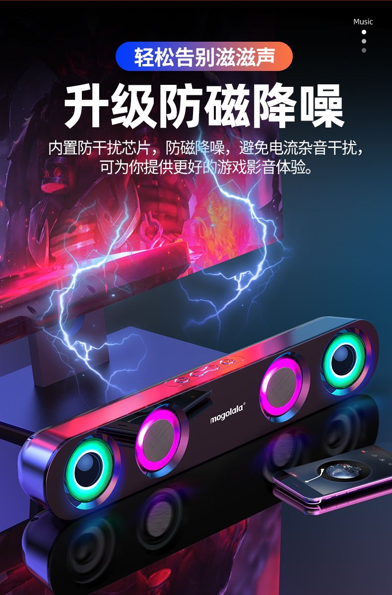 智能蓝牙音响电脑台式音响大音量双喇叭重低音炮音响氛围灯小音箱