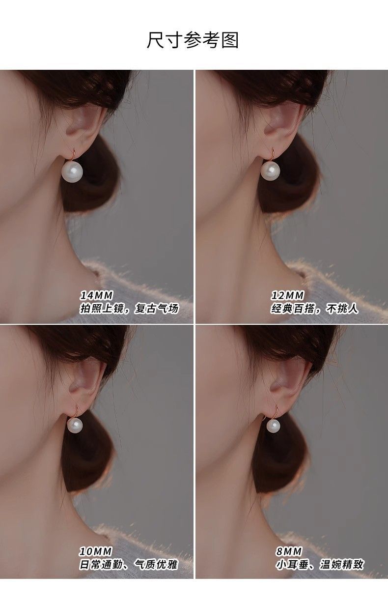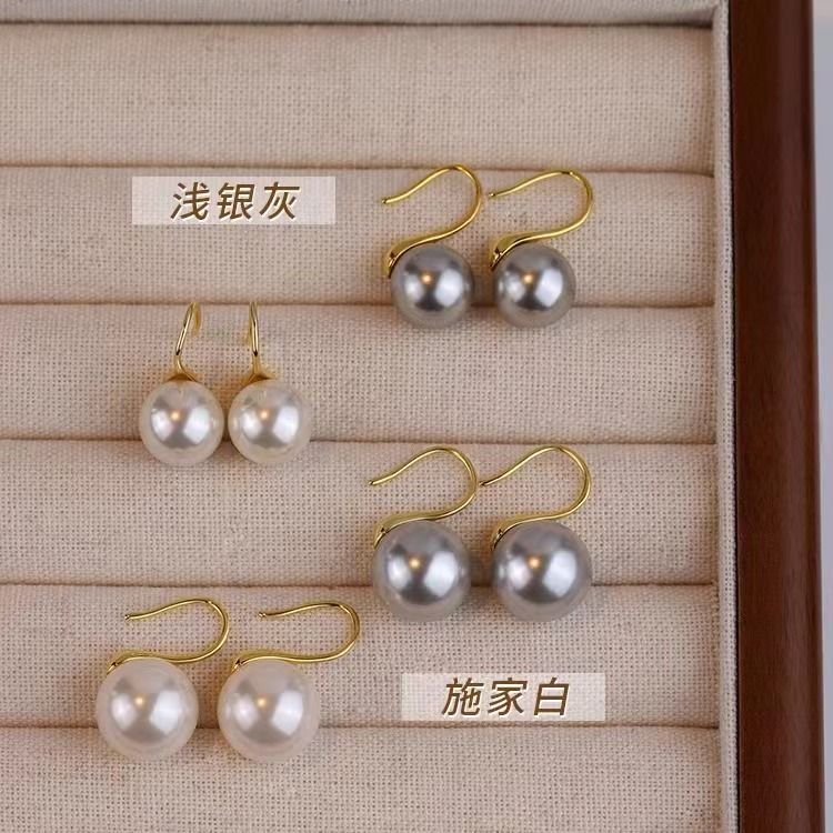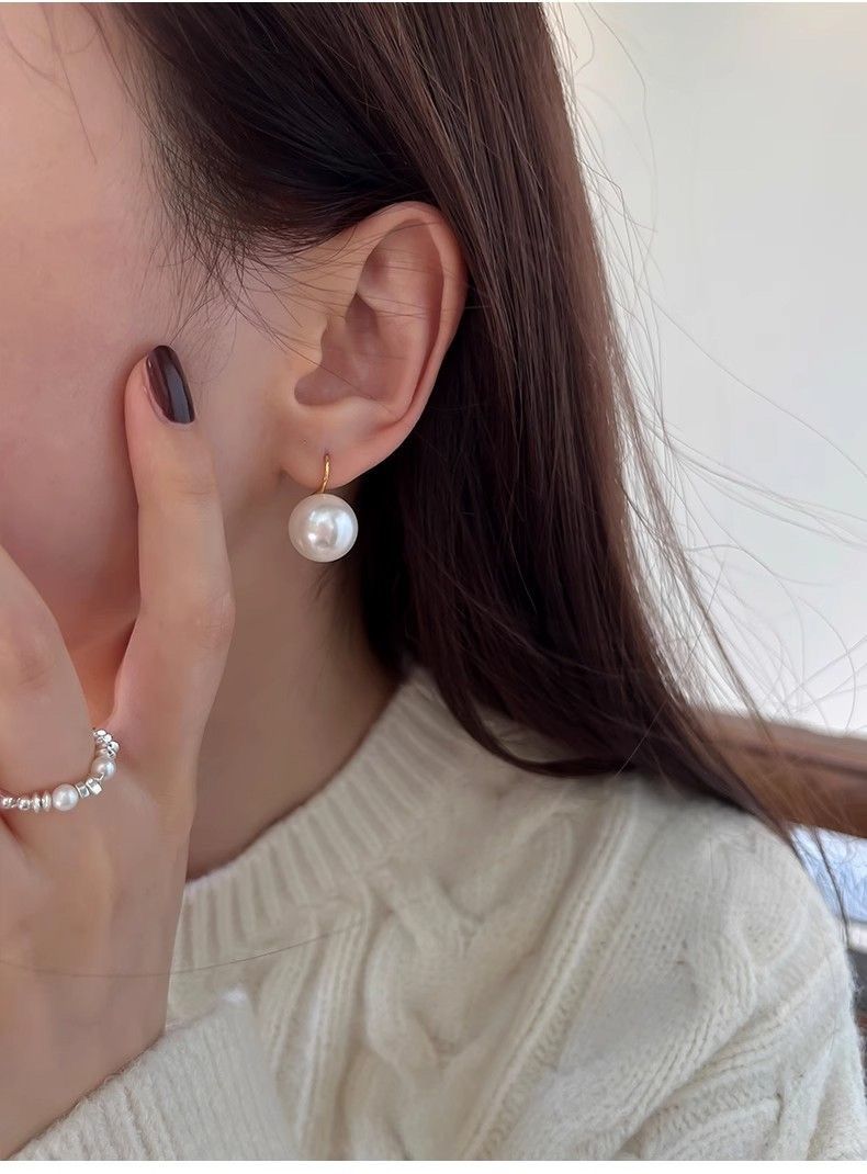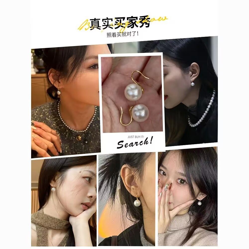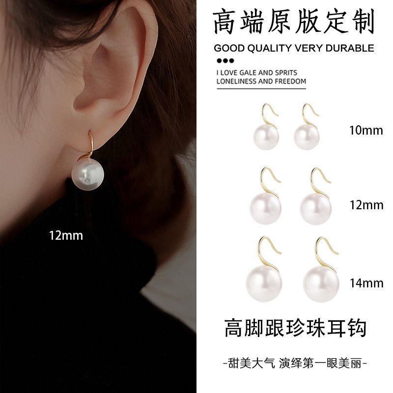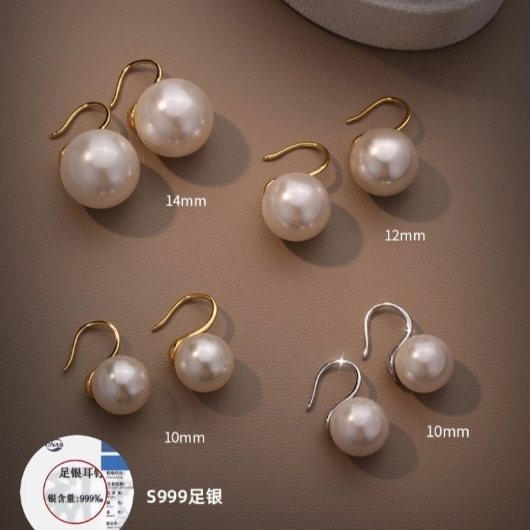 配证书999纯银新款施家珍珠耳钉正圆高跟鞋灯泡耳环耳饰耳钩耳坠
