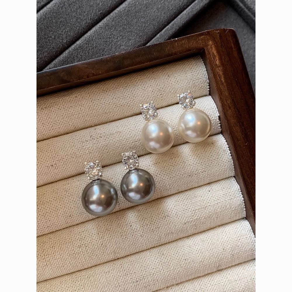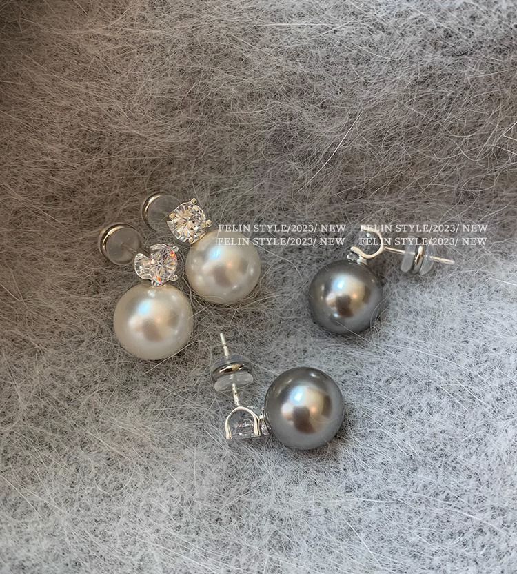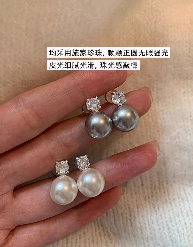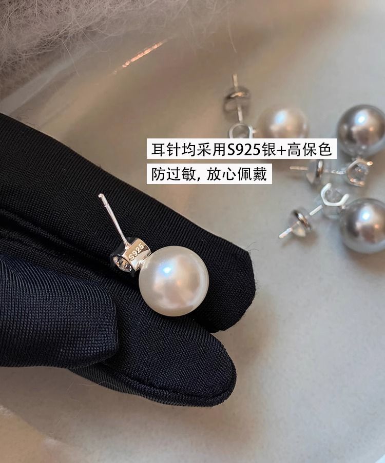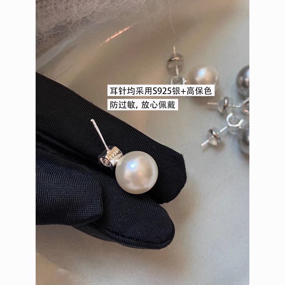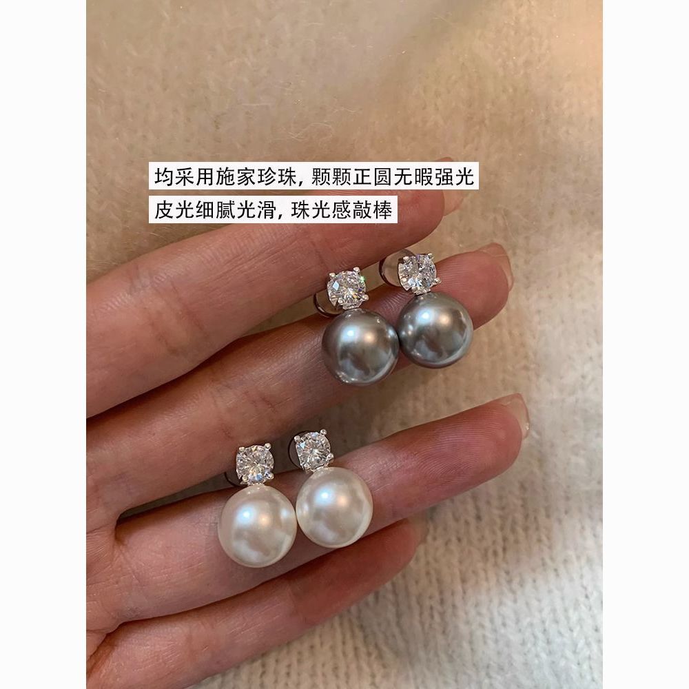 S925纯银针施家真多麻澳白色戴妃珍珠耳钉女轻奢小众高级耳饰耳环