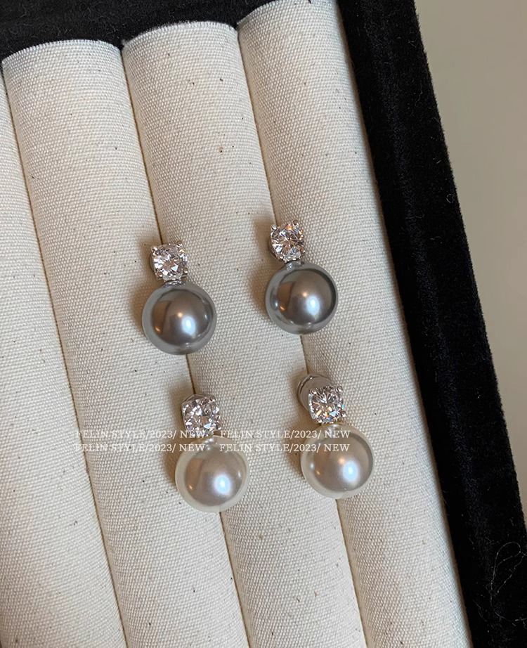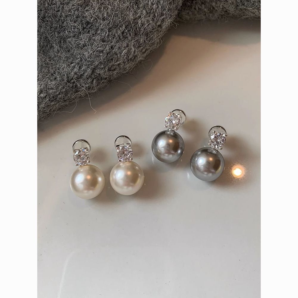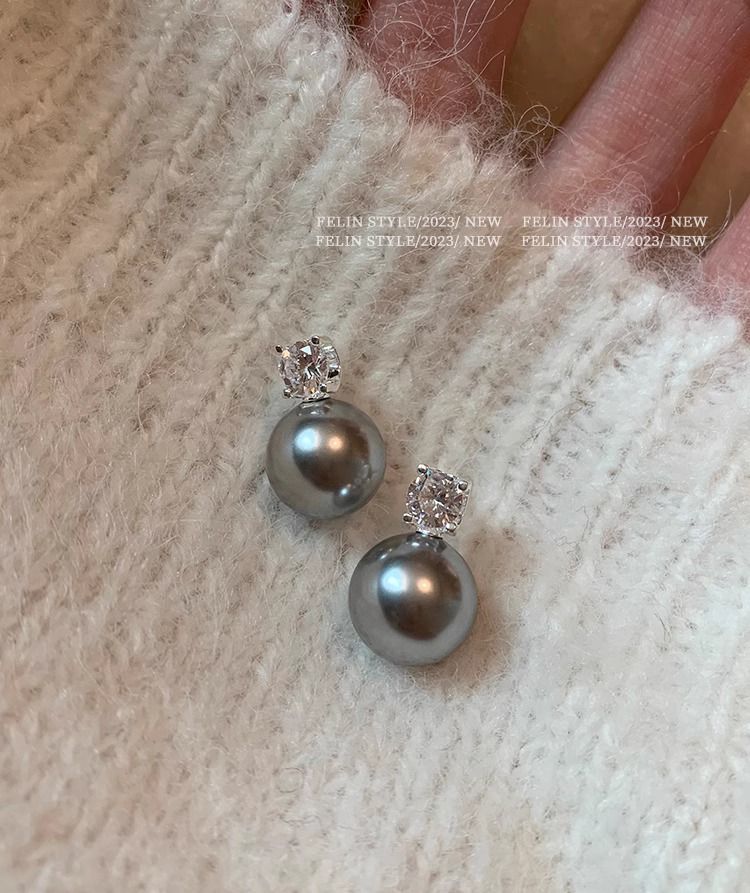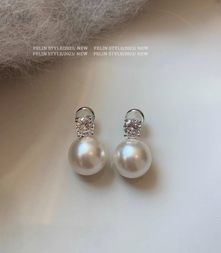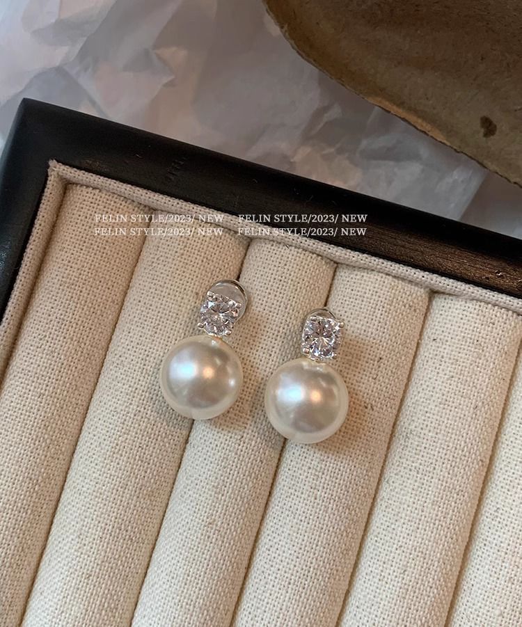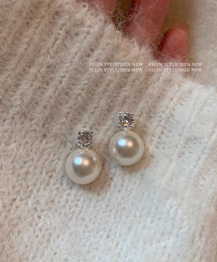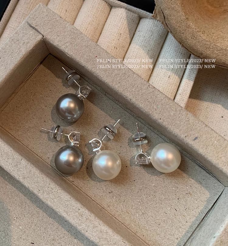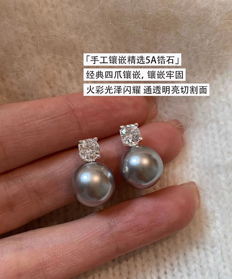 S925纯银针施家真多麻澳白色戴妃珍珠耳钉女轻奢小众高级耳饰耳环