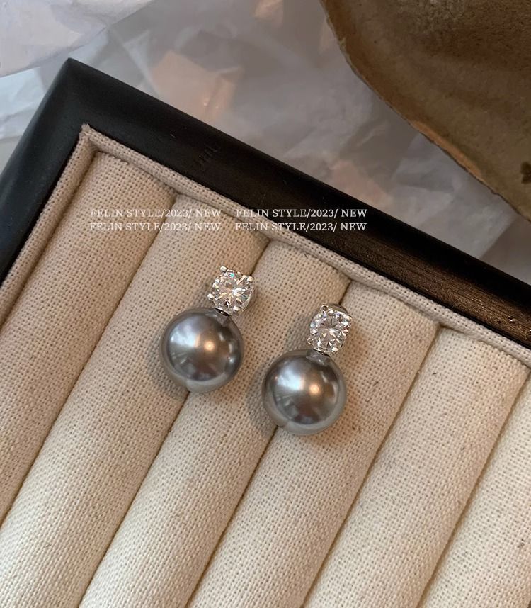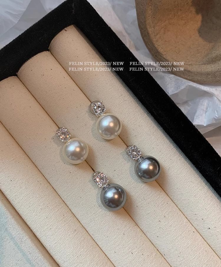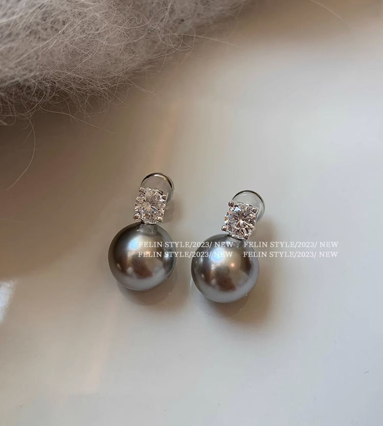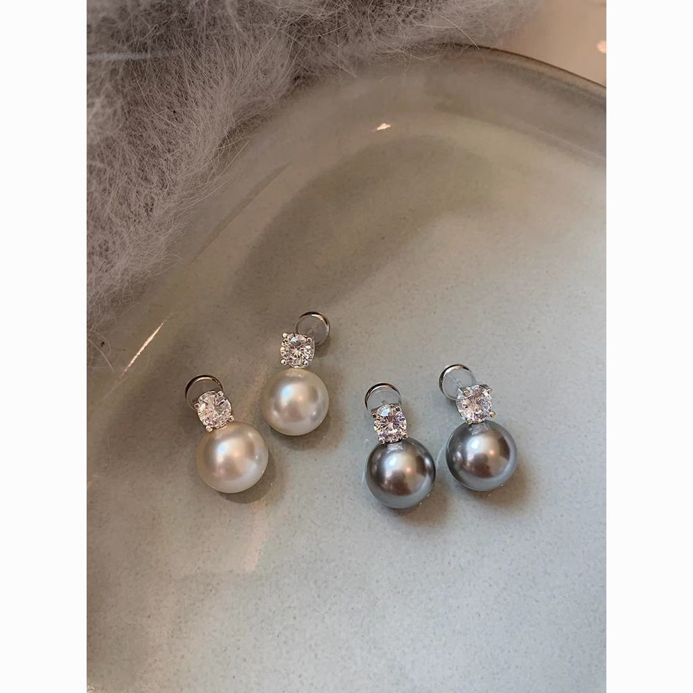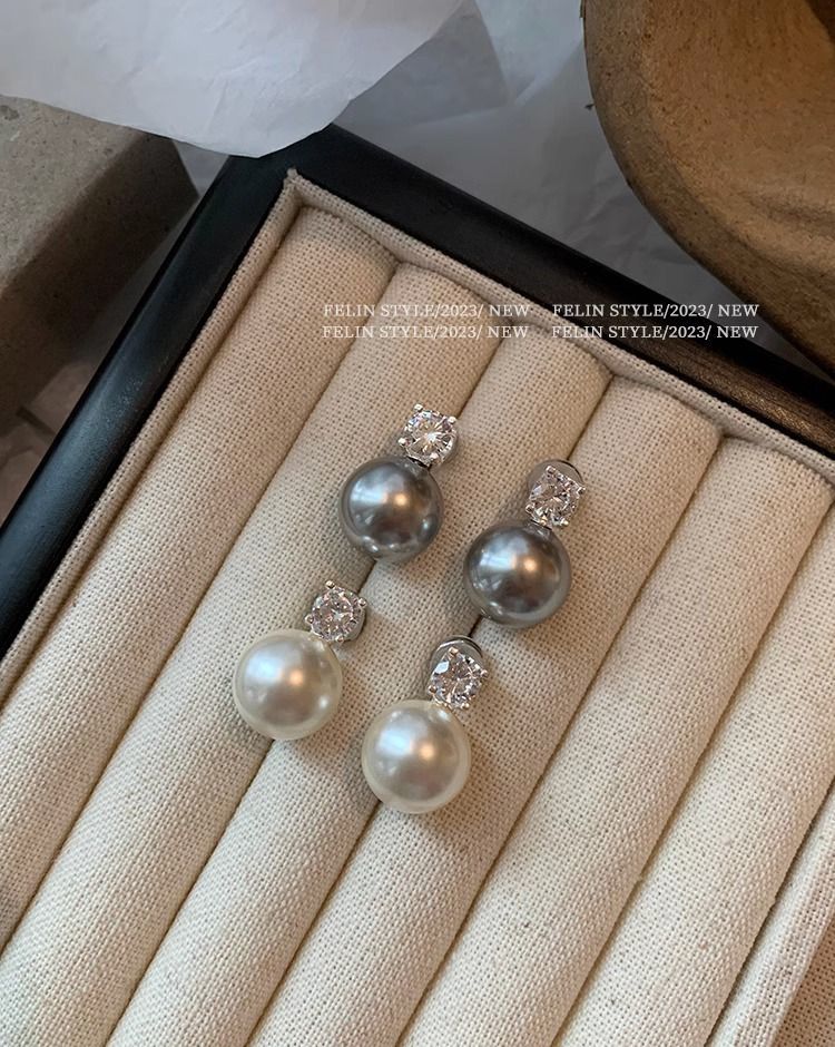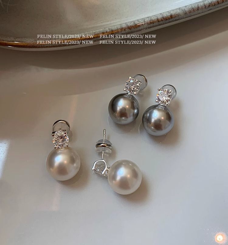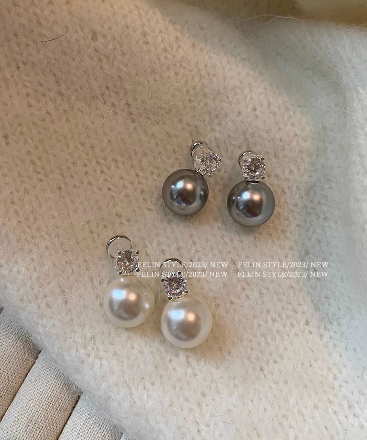 S925纯银针施家真多麻澳白色戴妃珍珠耳钉女轻奢小众高级耳饰耳环
