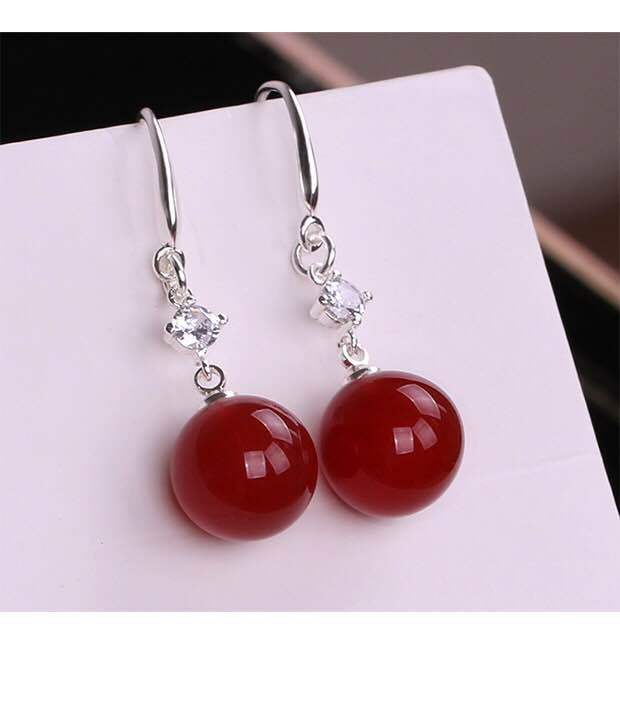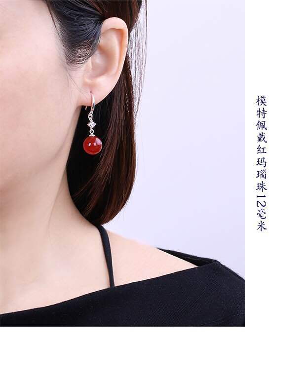 S925纯银珍珠耳环女天然玛瑙耳坠2024新款长款韩国时尚网红防过敏