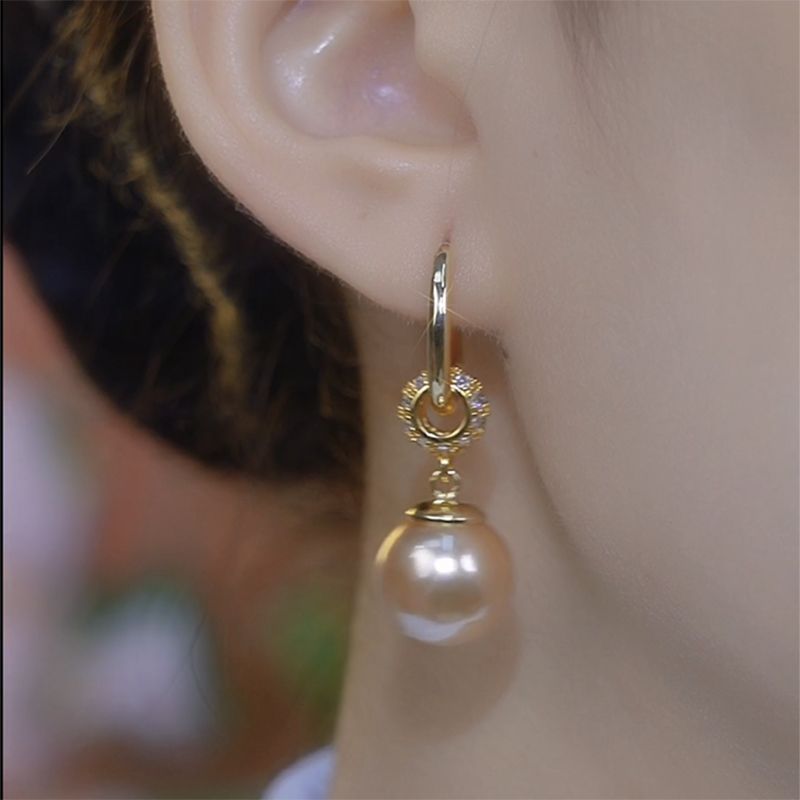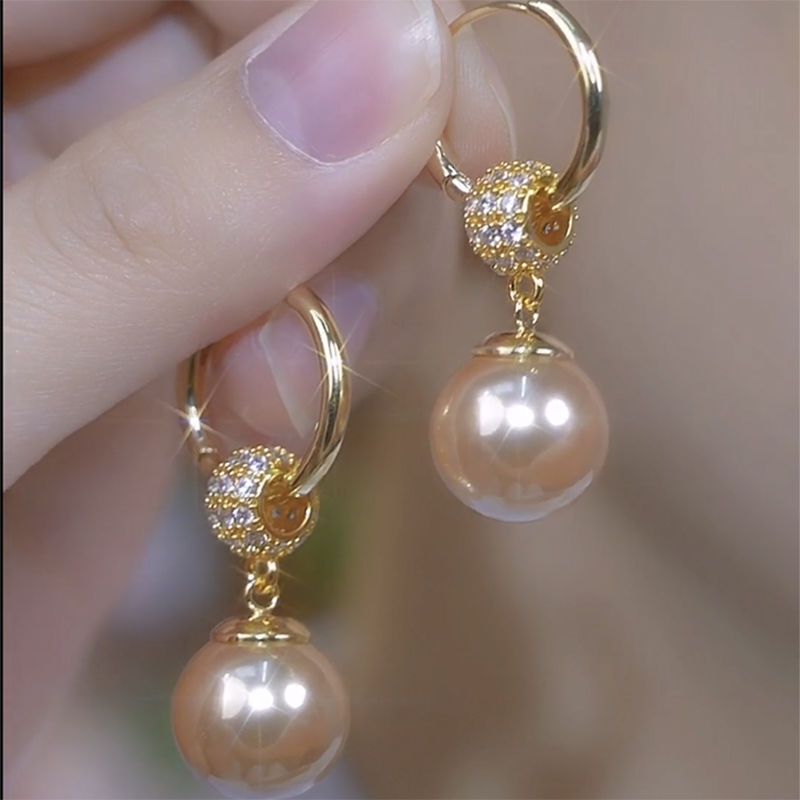 小众设计高级感满钻香槟色珍珠耳环女高级感精致独特耳钉气质耳饰