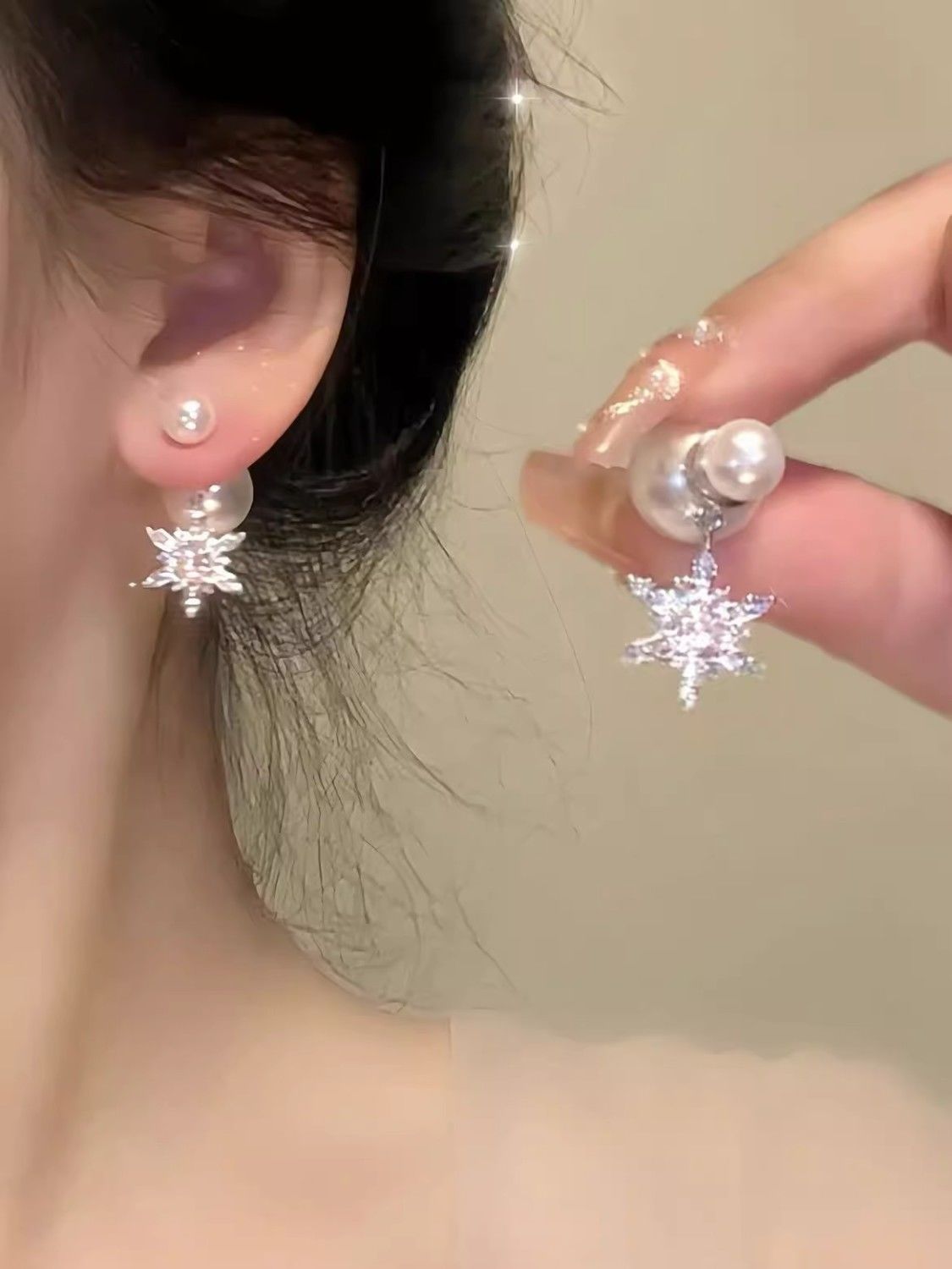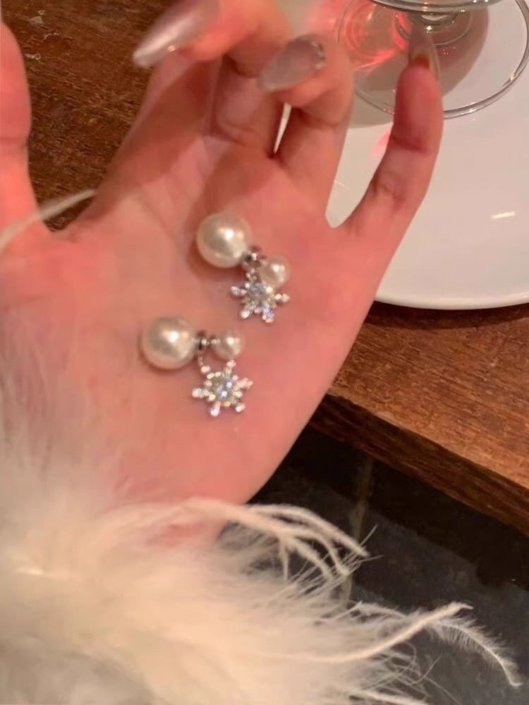| #767 snowflake imitation pearl earrings pairs(#767雪花仿珍珠耳钉一对) | USD $1.94 | 999999 piece available |