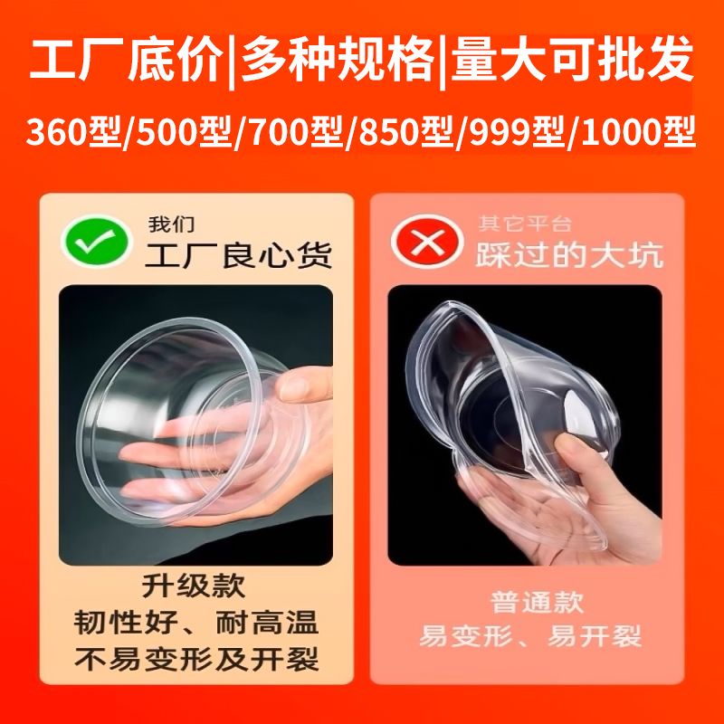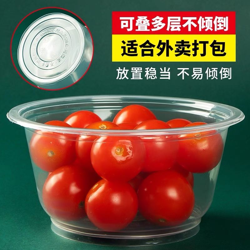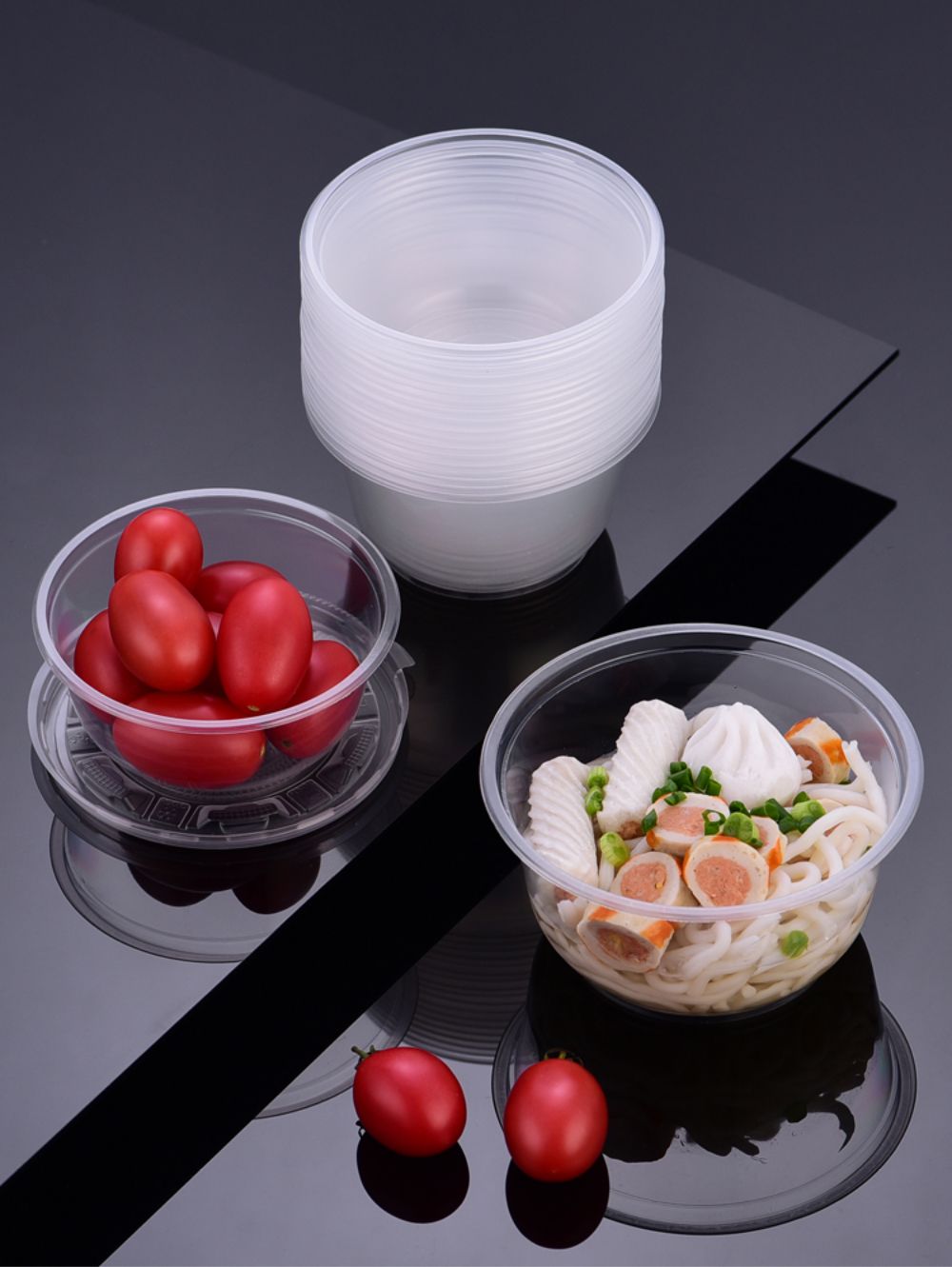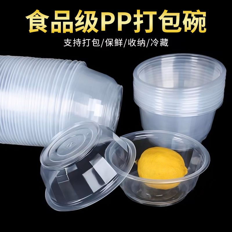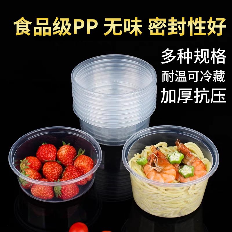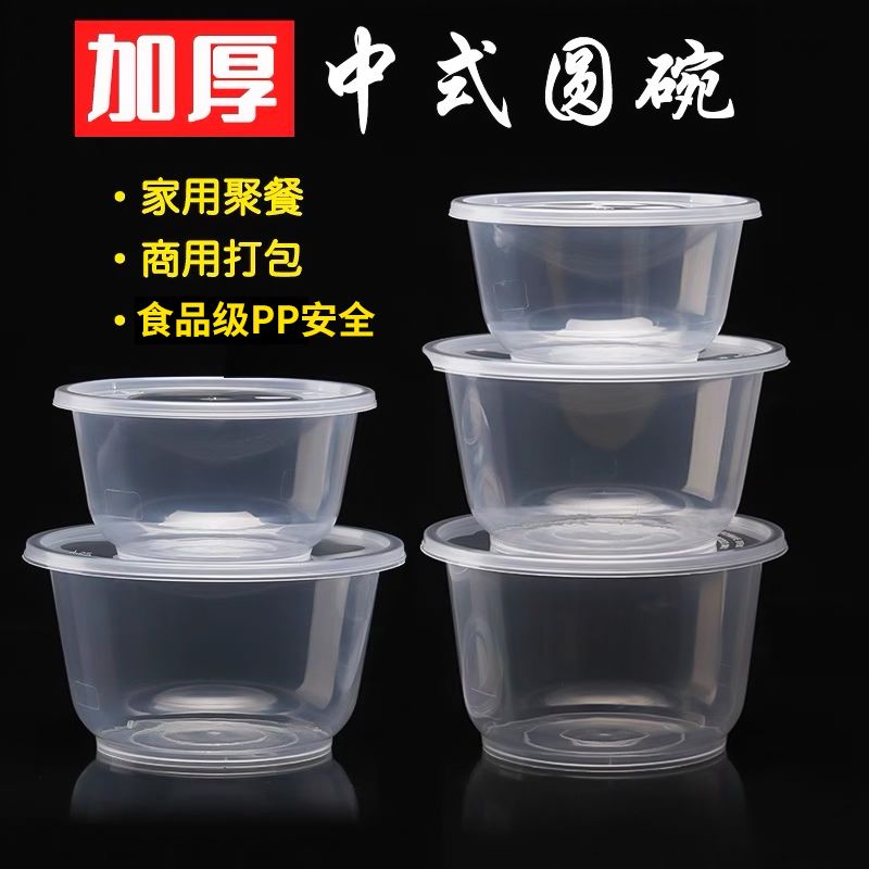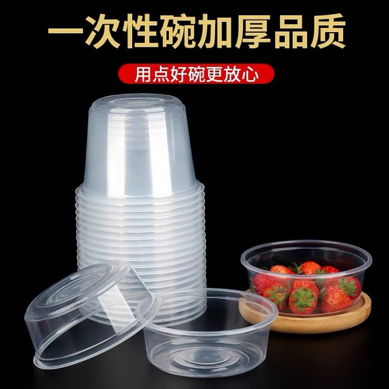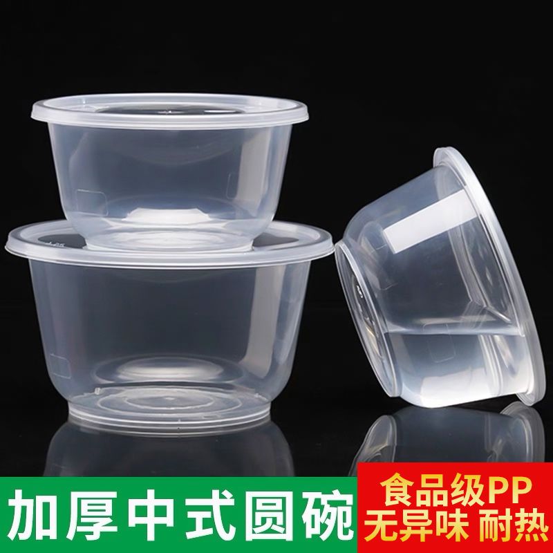 一次性碗打包餐盒饭盒冰粉专用塑料家用圆形汤碗小碗餐具带盖