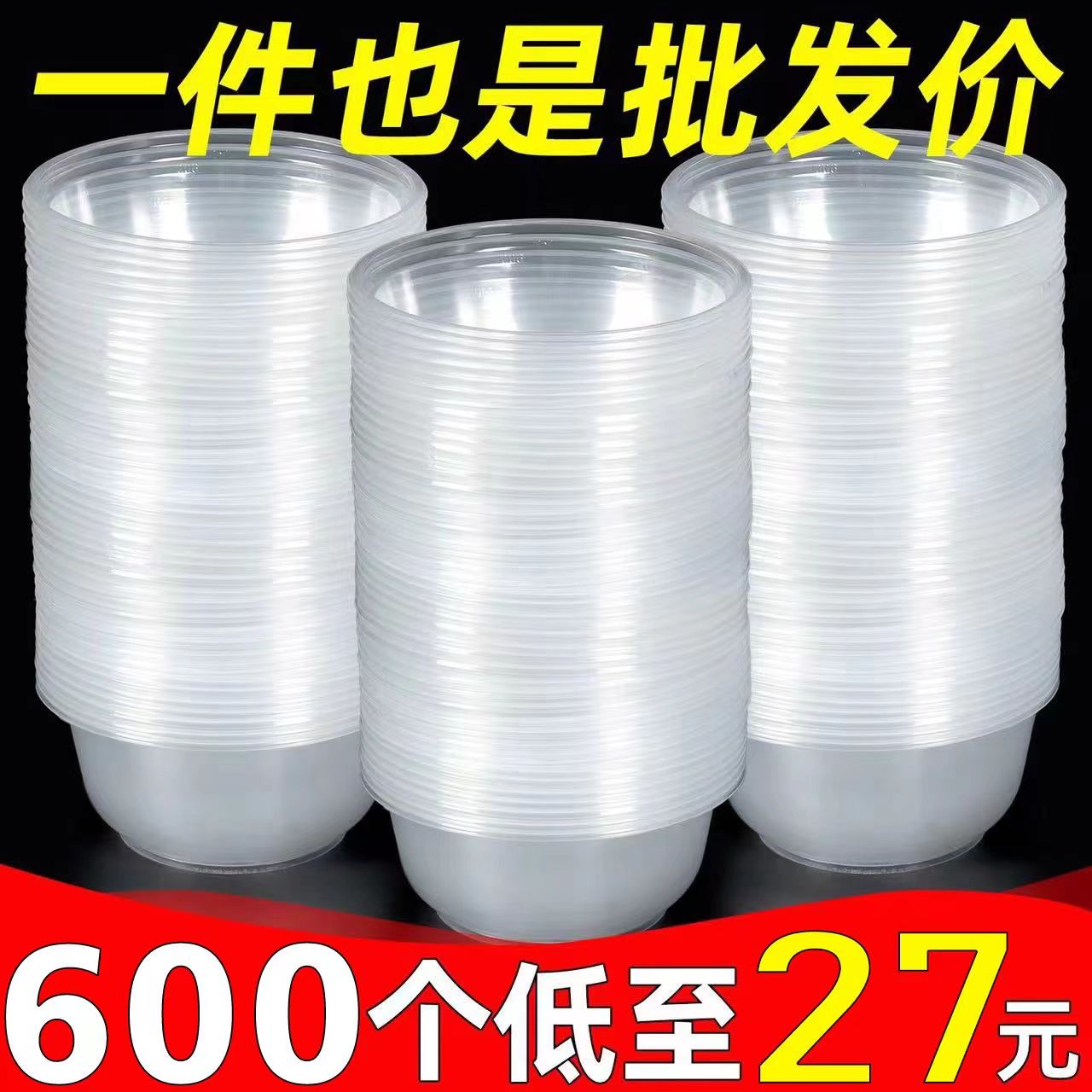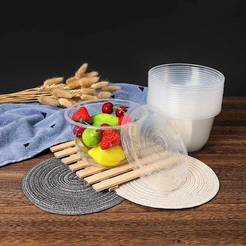 一次性碗塑料整箱批发圆形家庭带盖套装冰粉凉皮外卖打包餐盒汤碗
