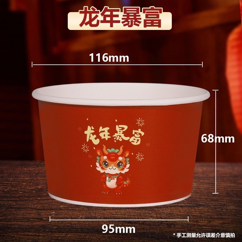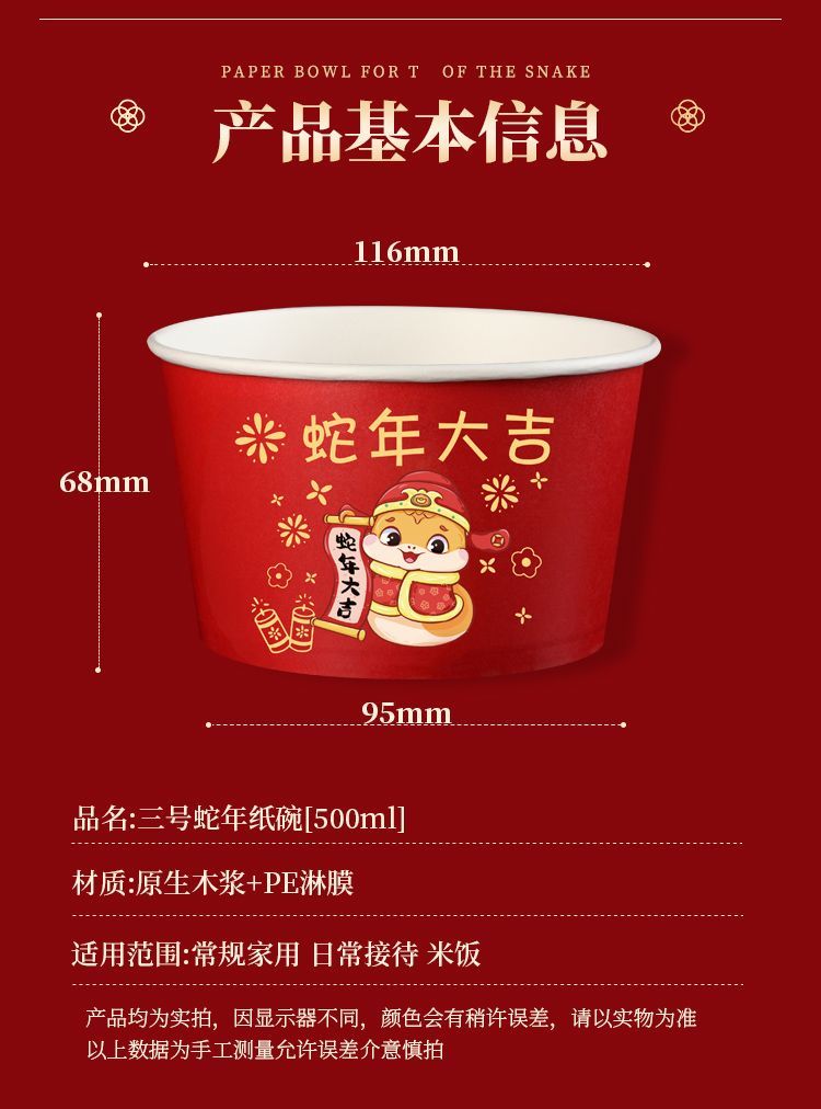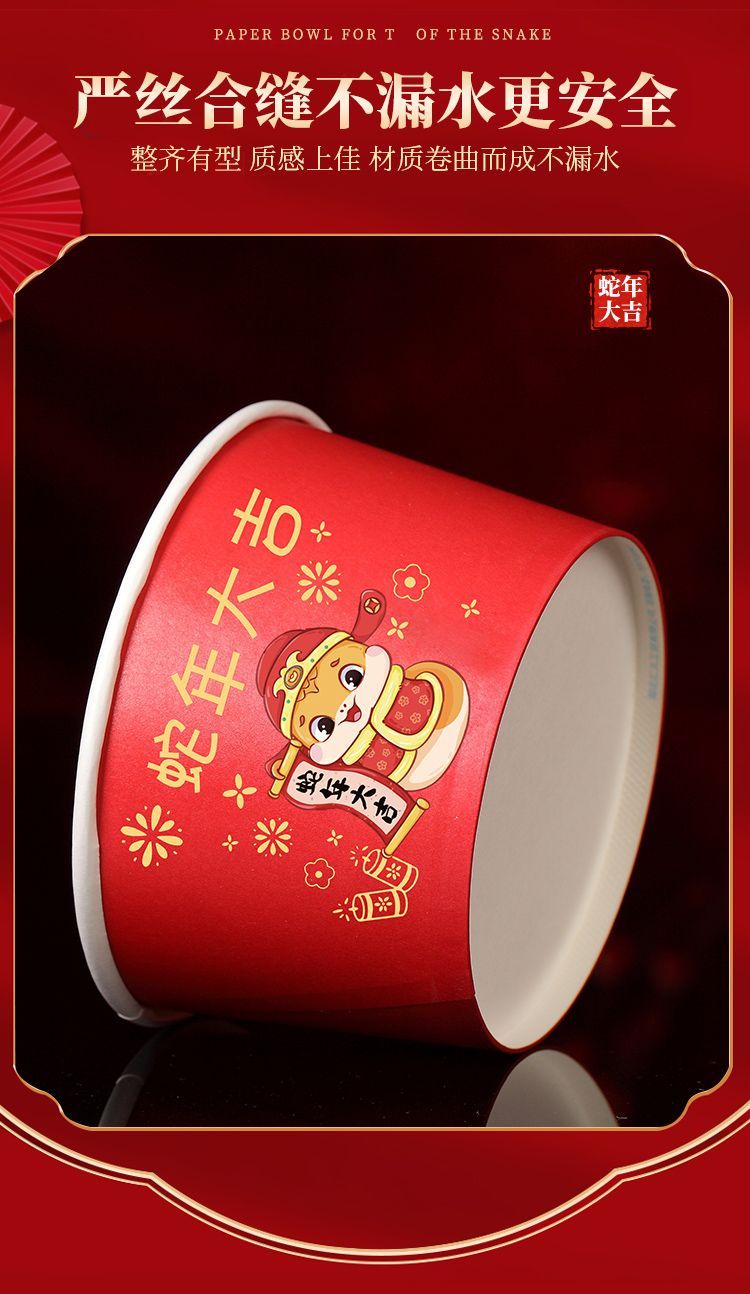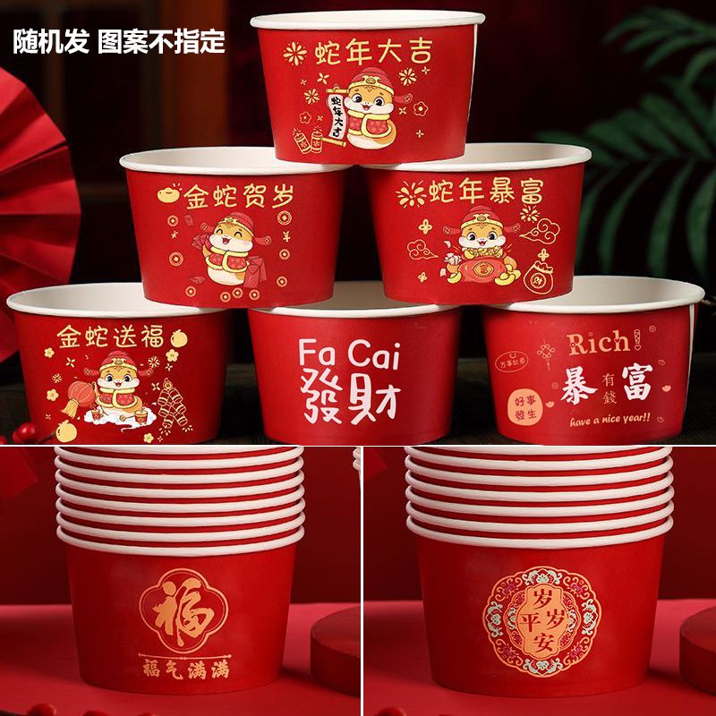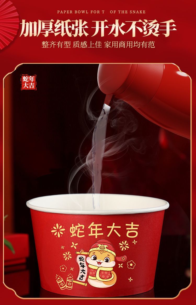 2025新年纸碗春节蛇年一次性碗筷套装加厚红色过年家用打包盒饭碗