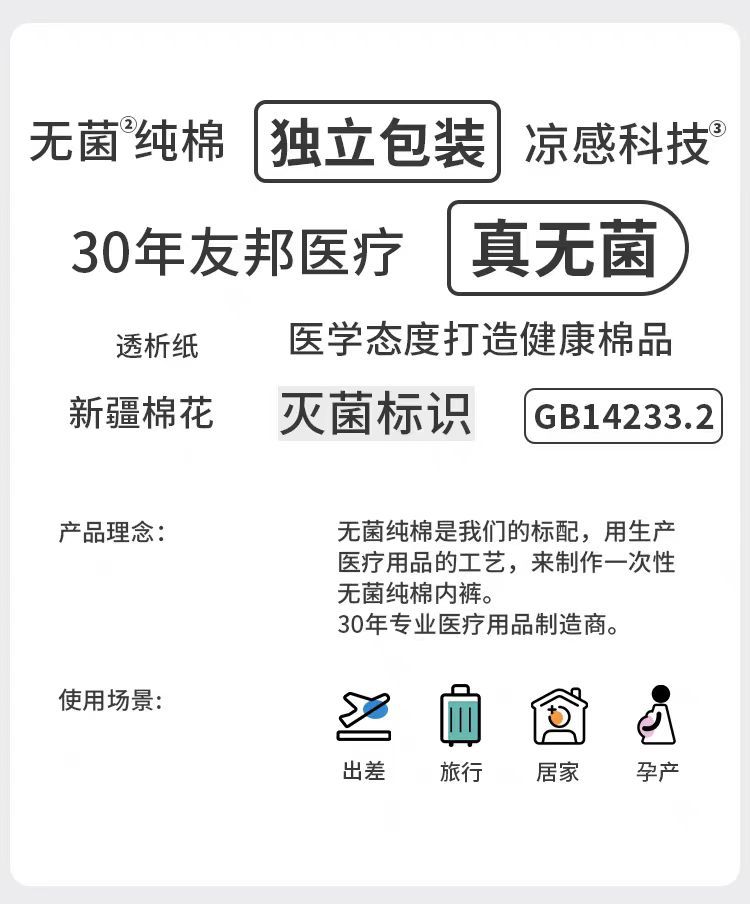蓓安适一次性女内裤纯棉无菌旅行月子产妇全棉便携大码免洗日抛裤