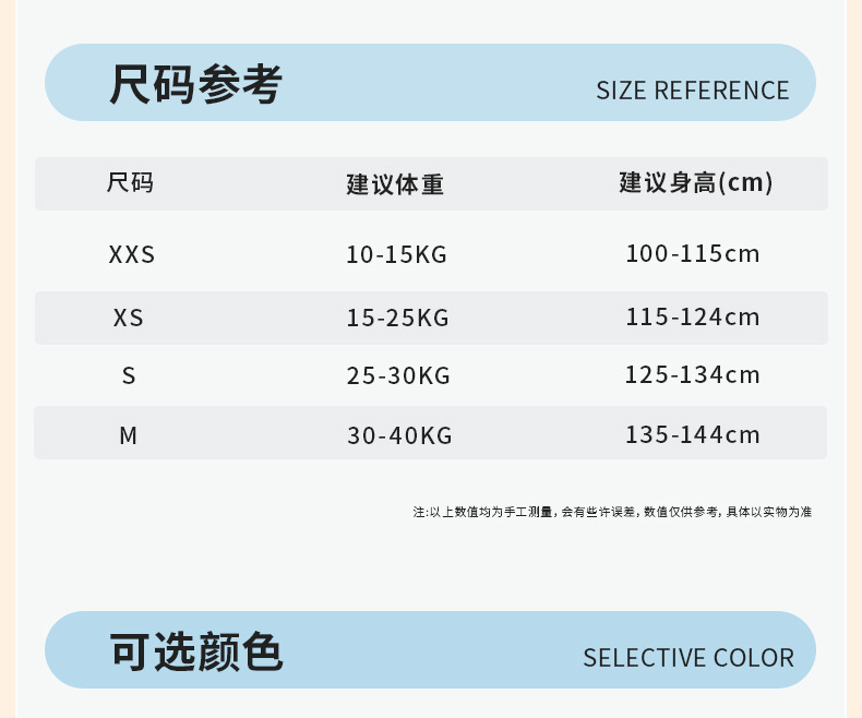 | xs [suitable for 15.00 kg-25.00 kg weight] children(XS 【适合30-50斤体重】儿童款) | USD $2.91 | 1967 box available |