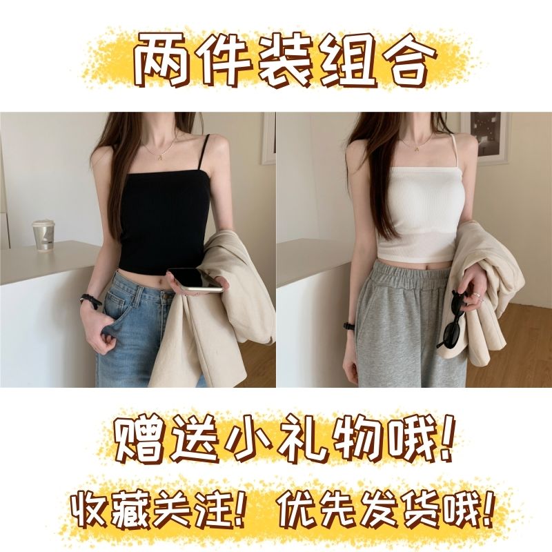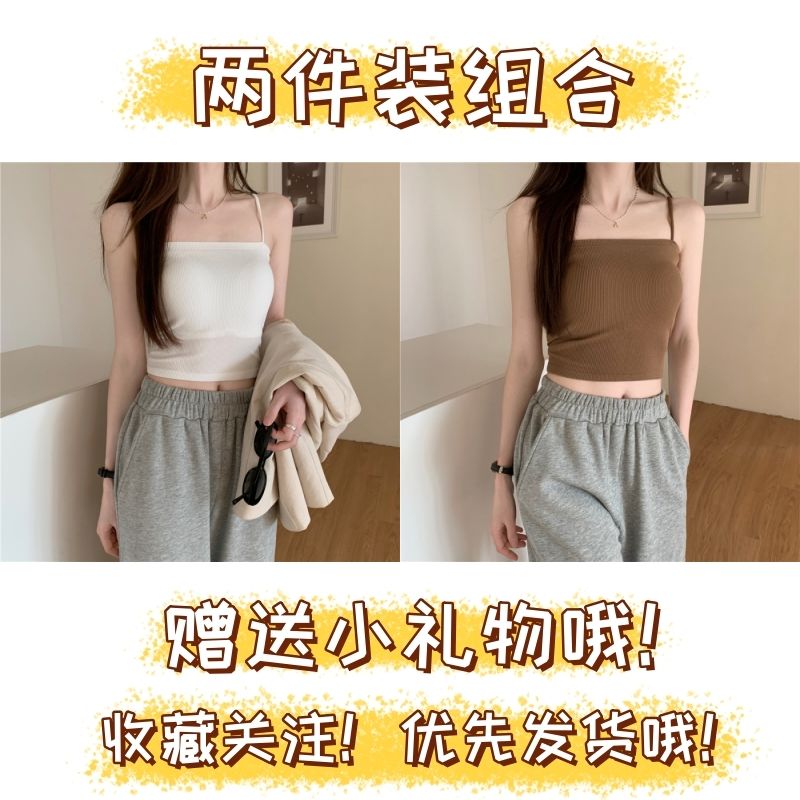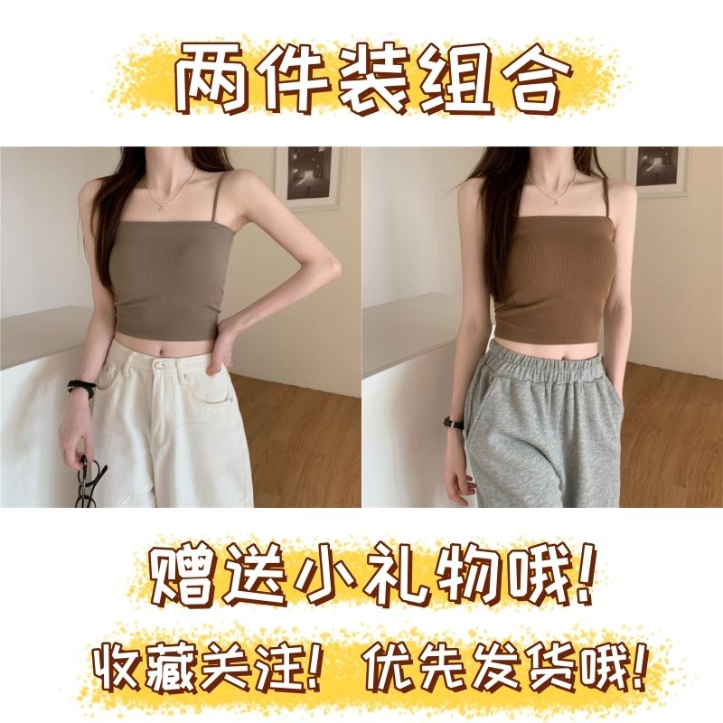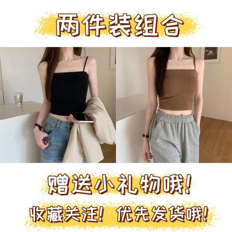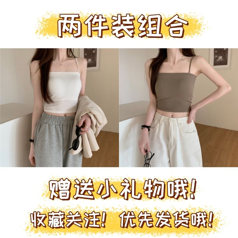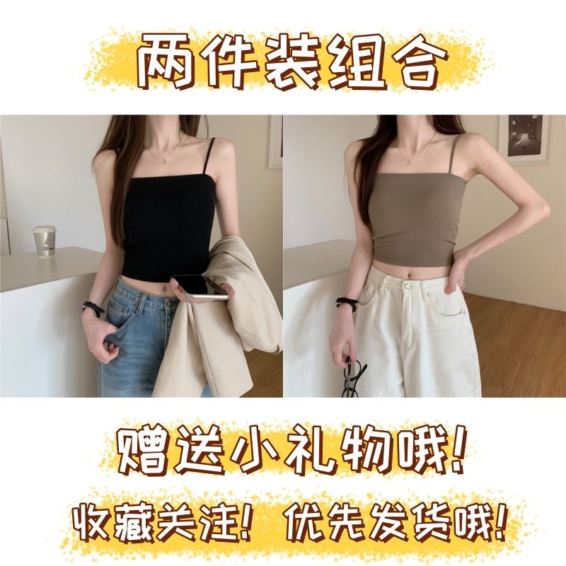 辣妹纯欲吊带背心女带胸垫内搭修身显瘦美背设计感打底外穿上衣女