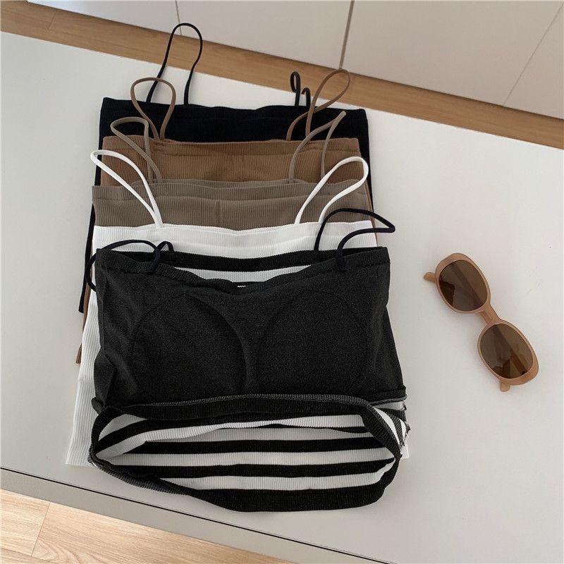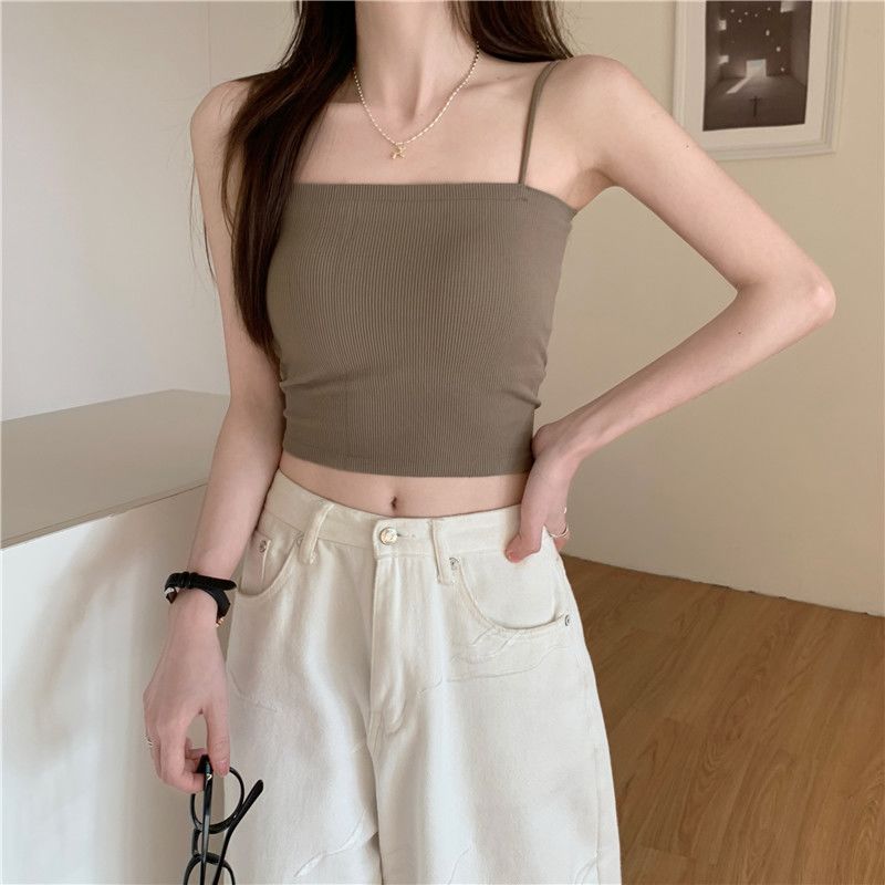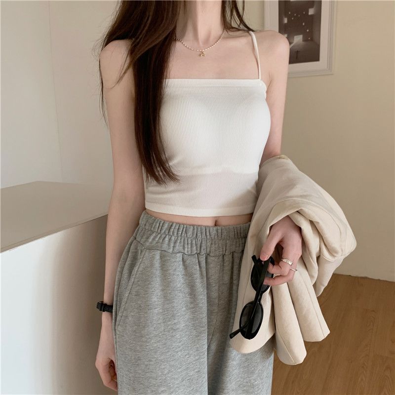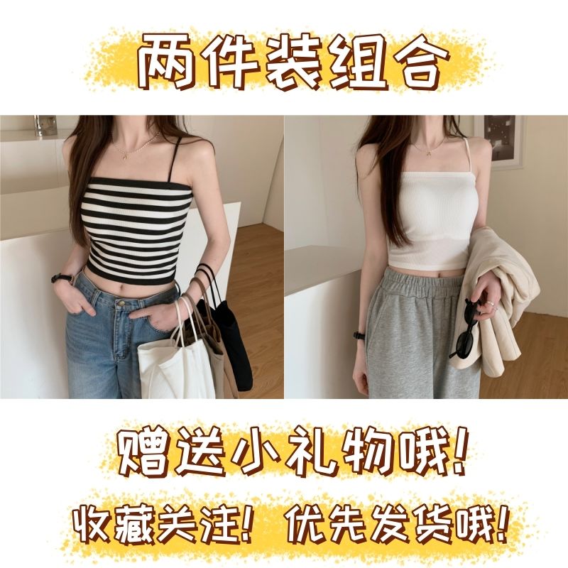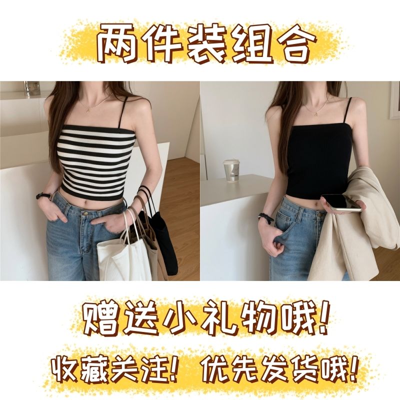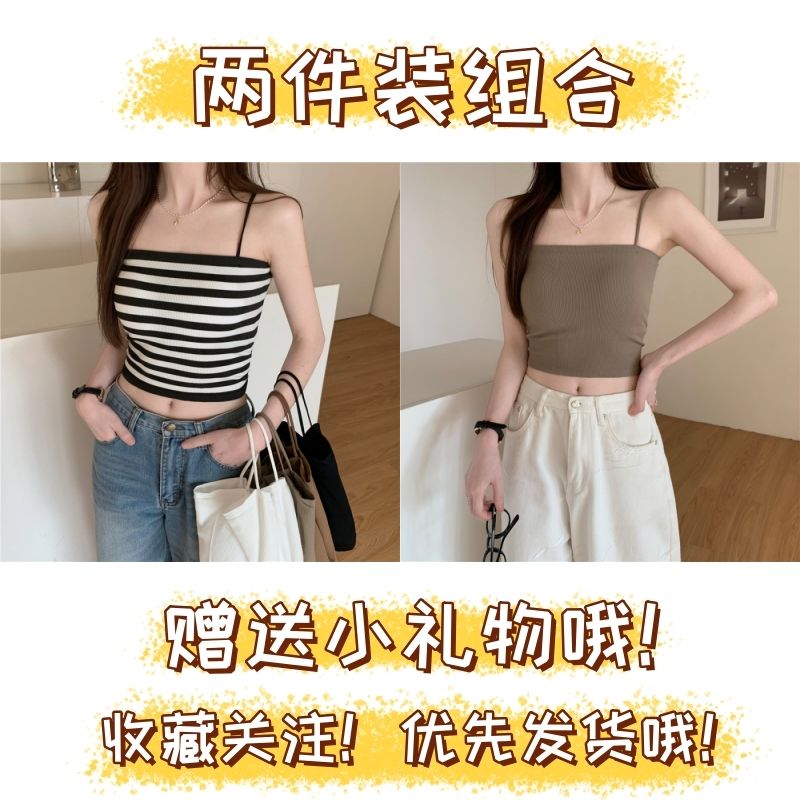 辣妹纯欲吊带背心女带胸垫内搭修身显瘦美背设计感打底外穿上衣女
