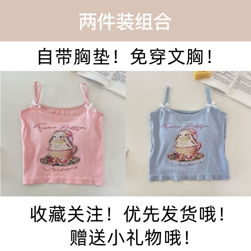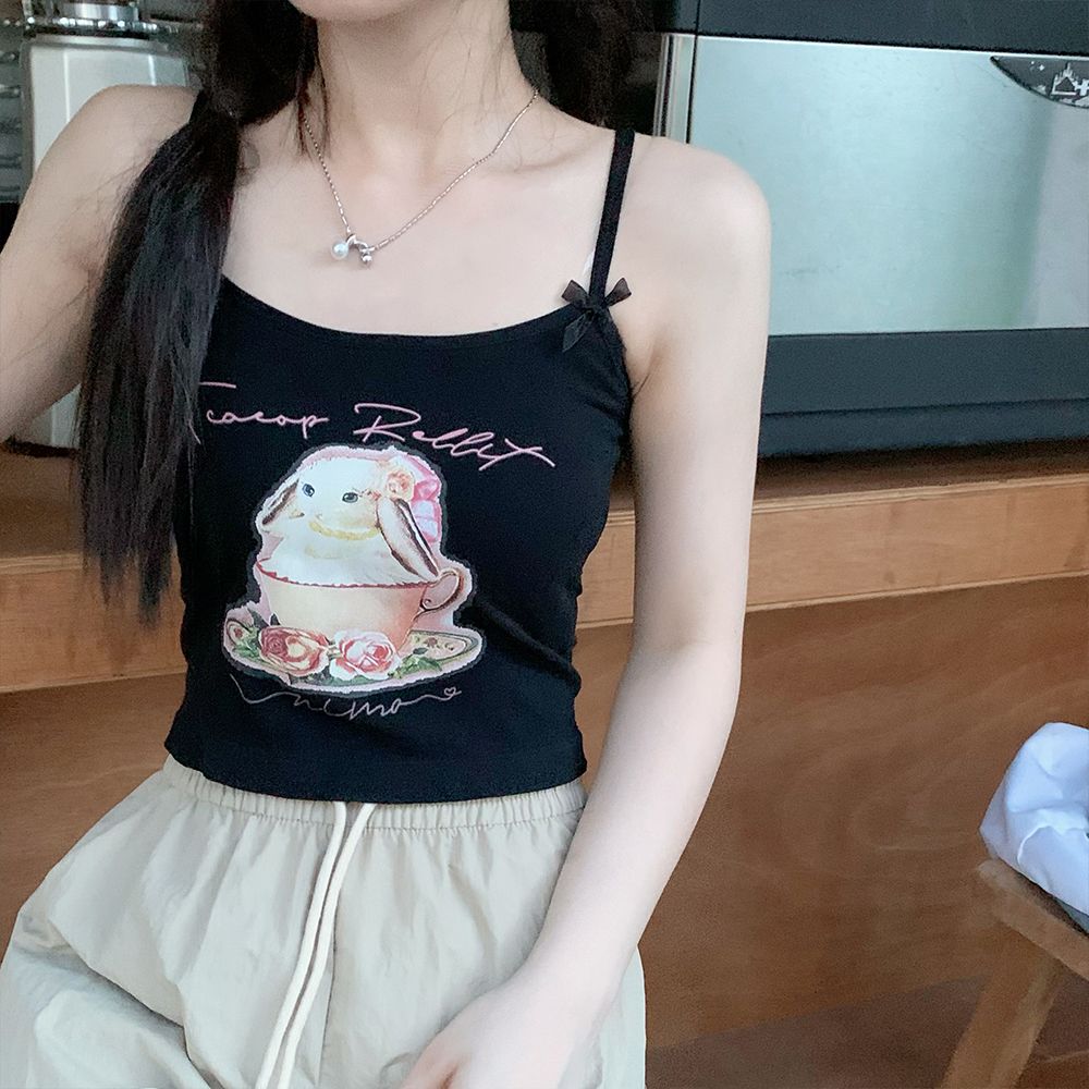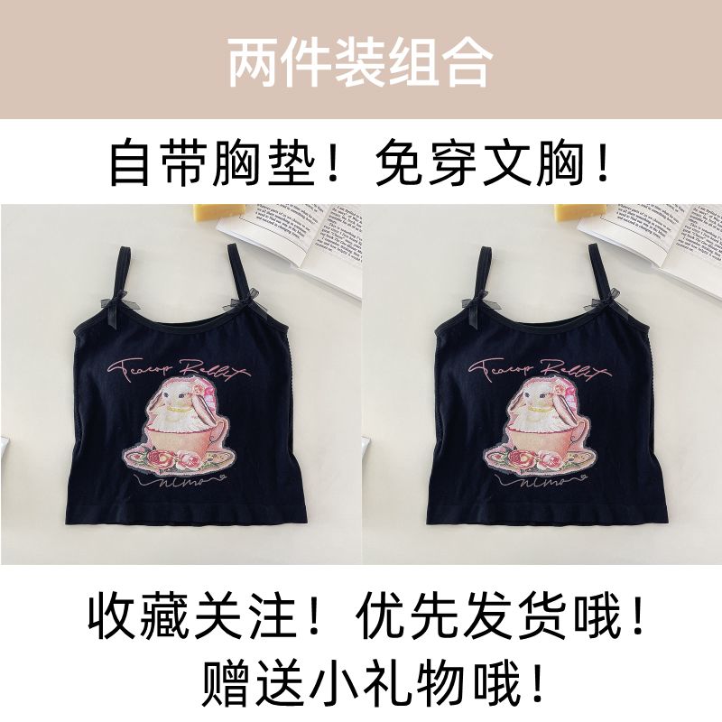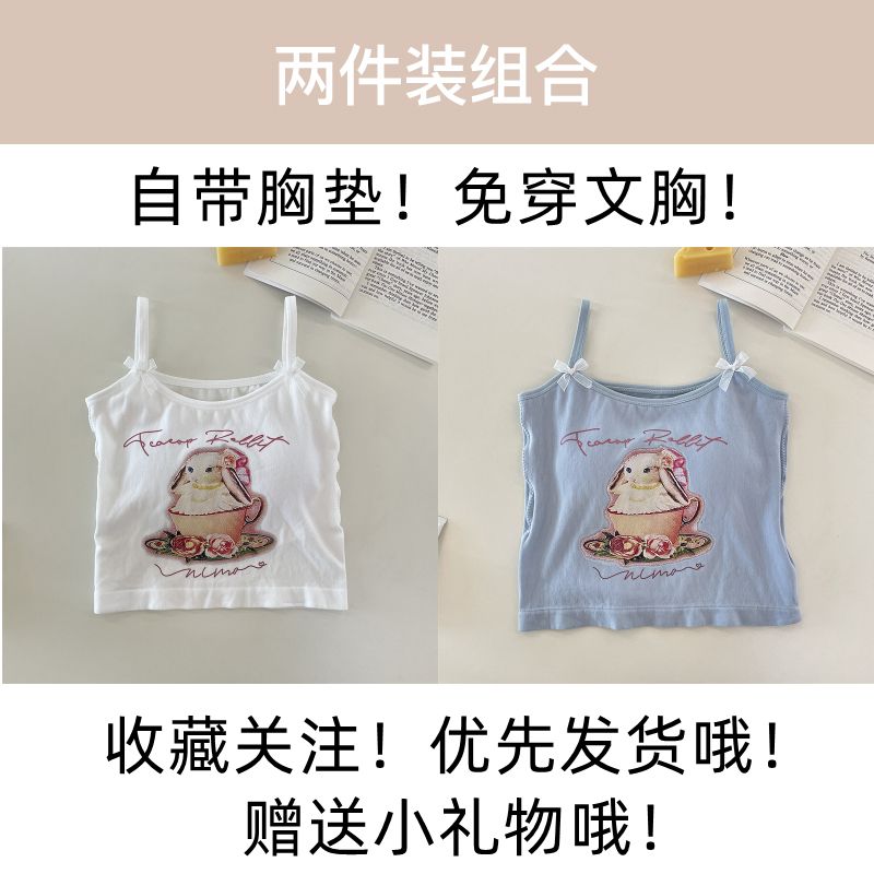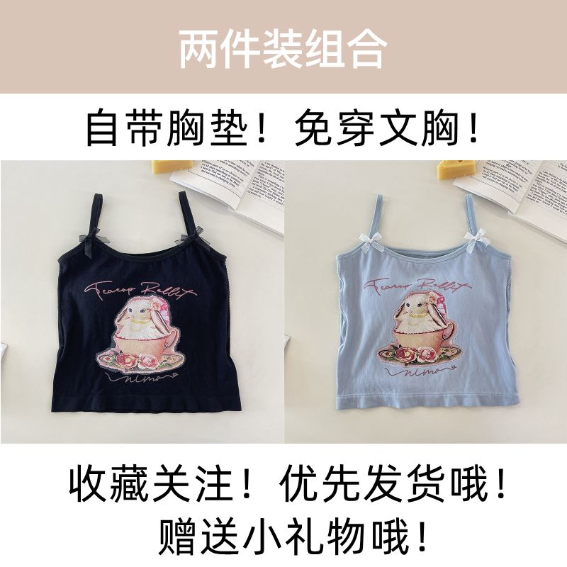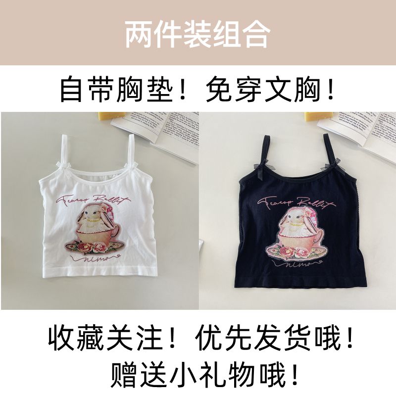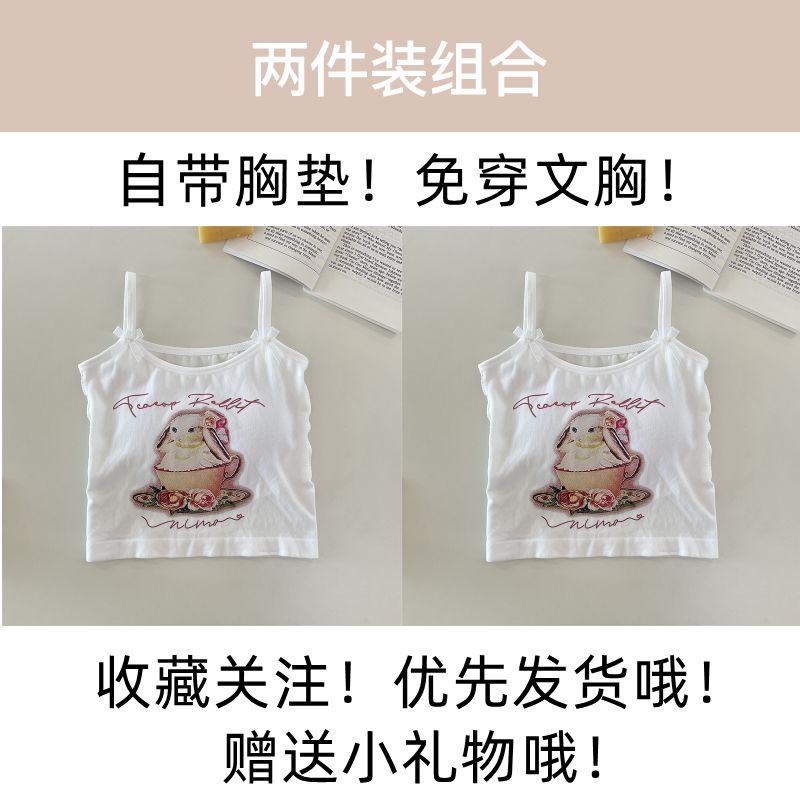 纯欲辣妹印花吊带背心女带胸垫外穿百搭显瘦设计感内搭上衣女夏季