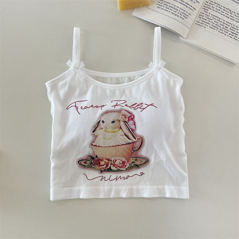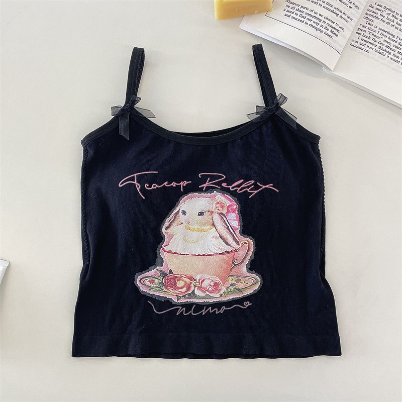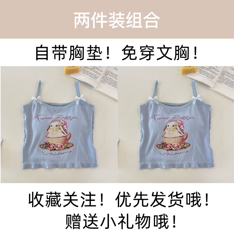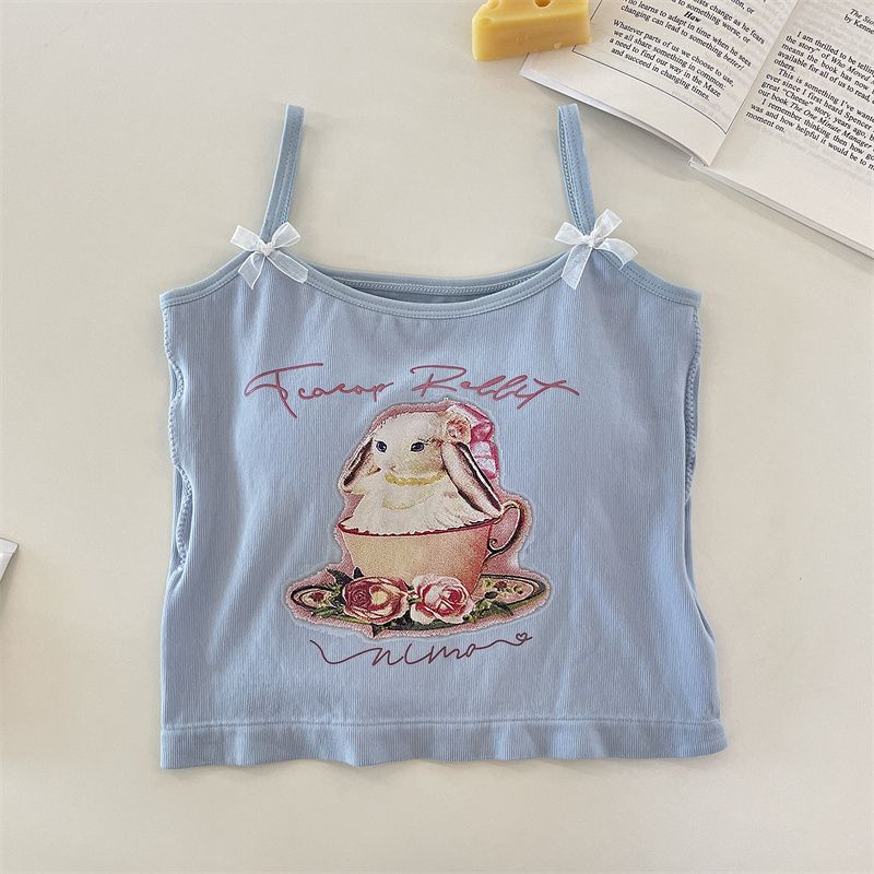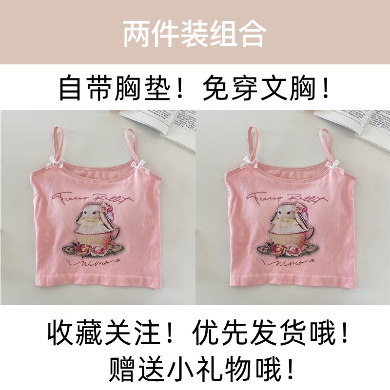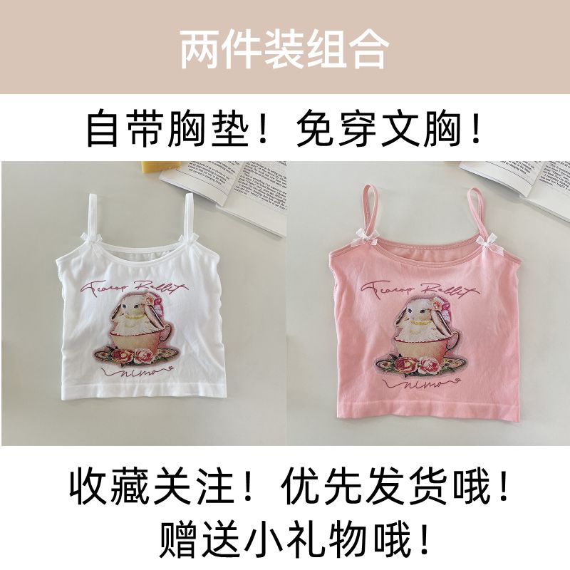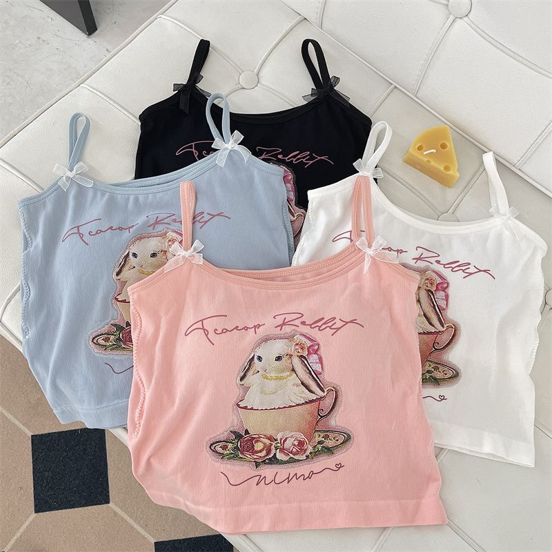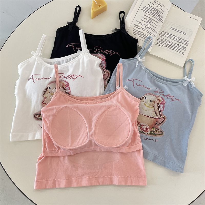 纯欲辣妹印花吊带背心女带胸垫外穿百搭显瘦设计感内搭上衣女夏季