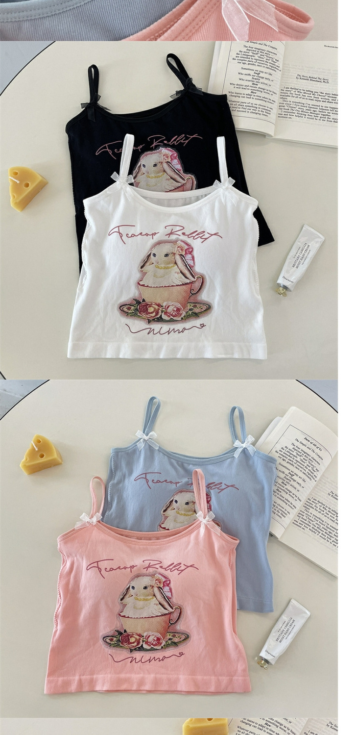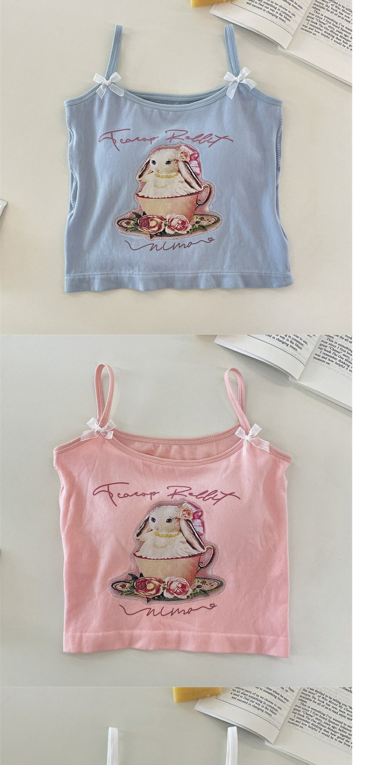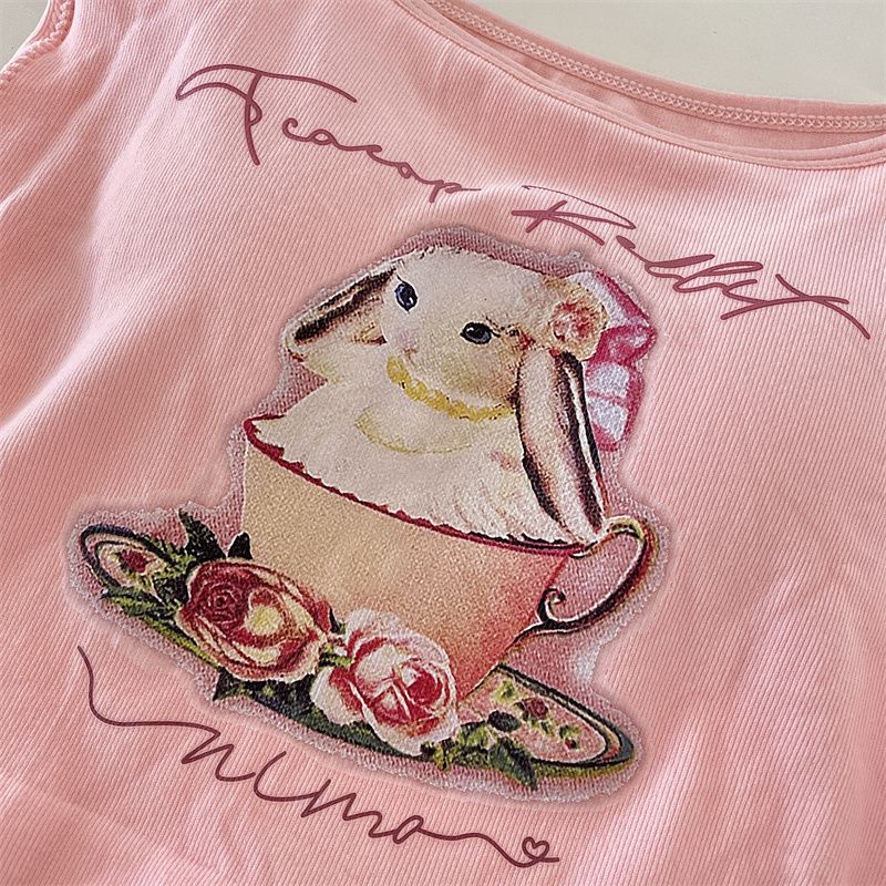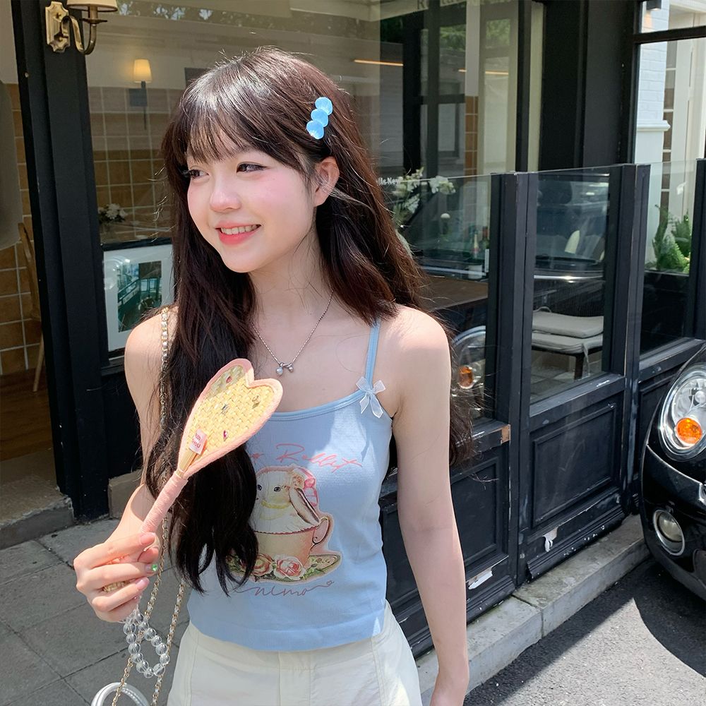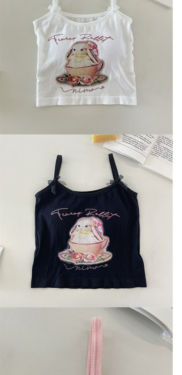 纯欲辣妹印花吊带背心女带胸垫外穿百搭显瘦设计感内搭上衣女夏季