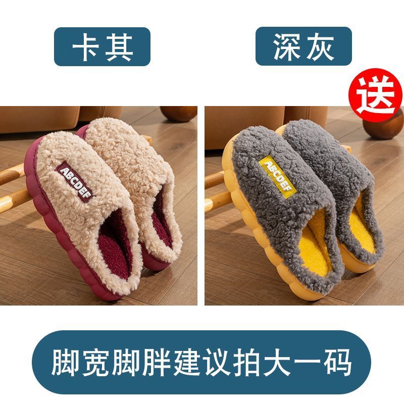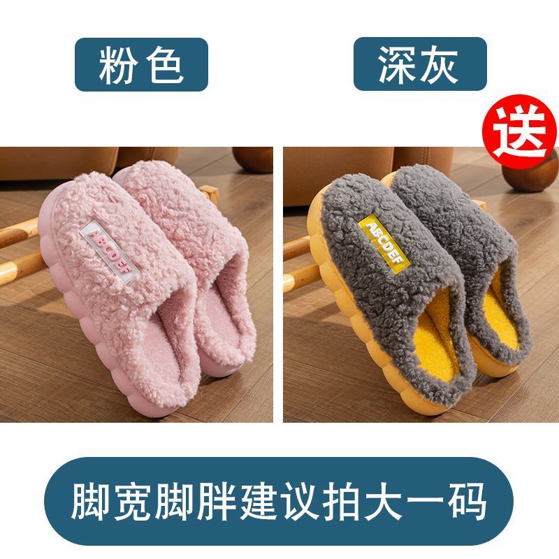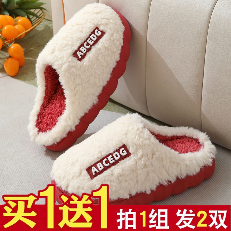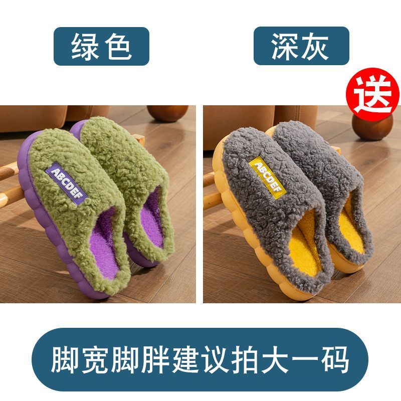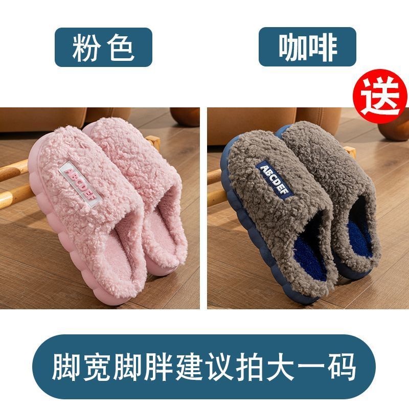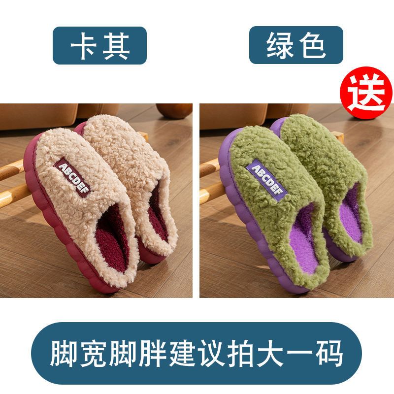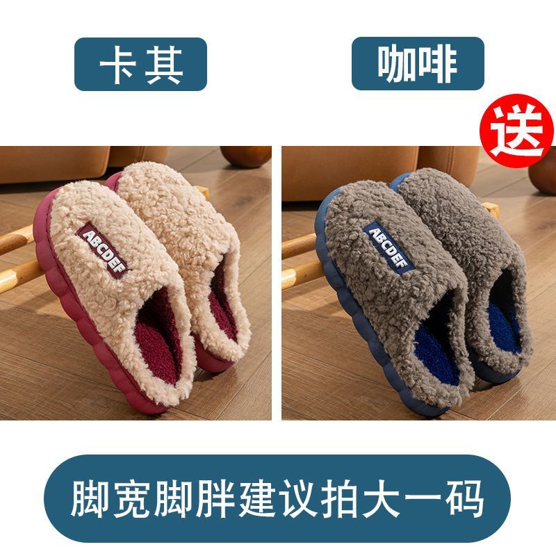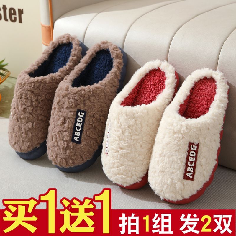 买一送一美拉德冬季手工棉拖鞋女居家防滑保暖拼色毛绒棉拖鞋男款