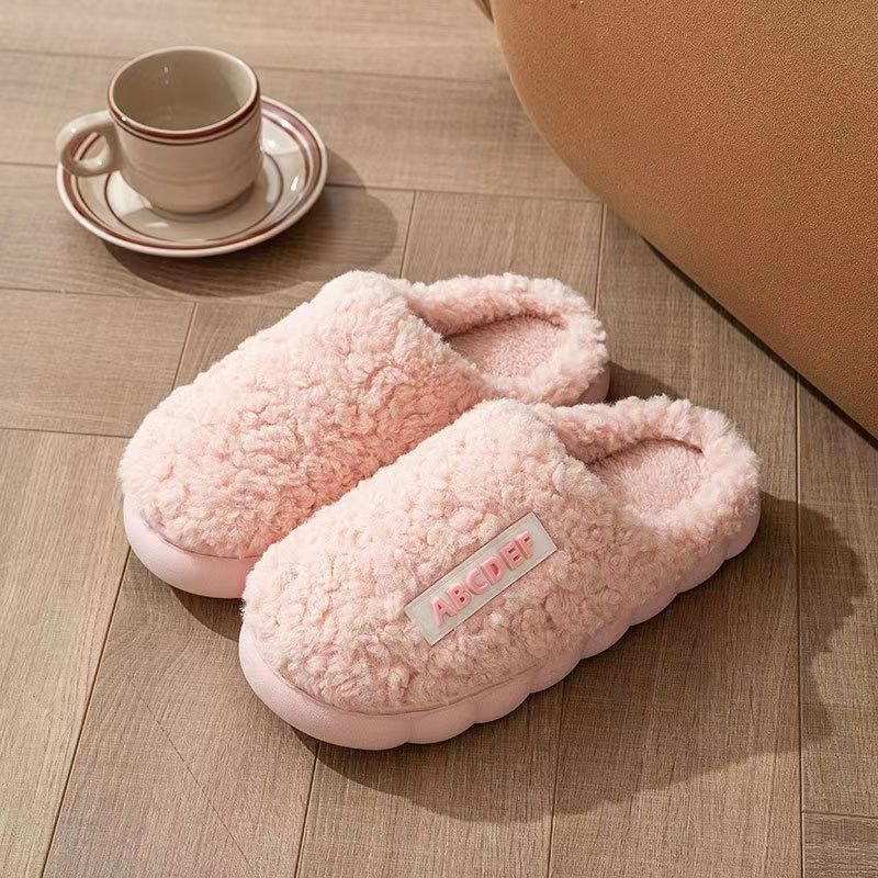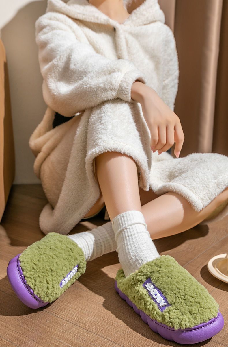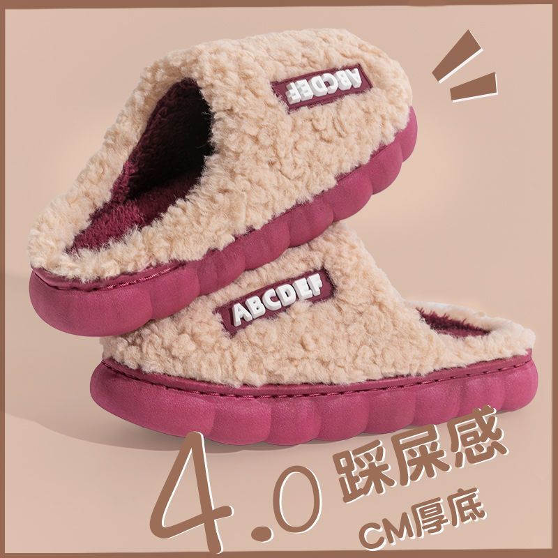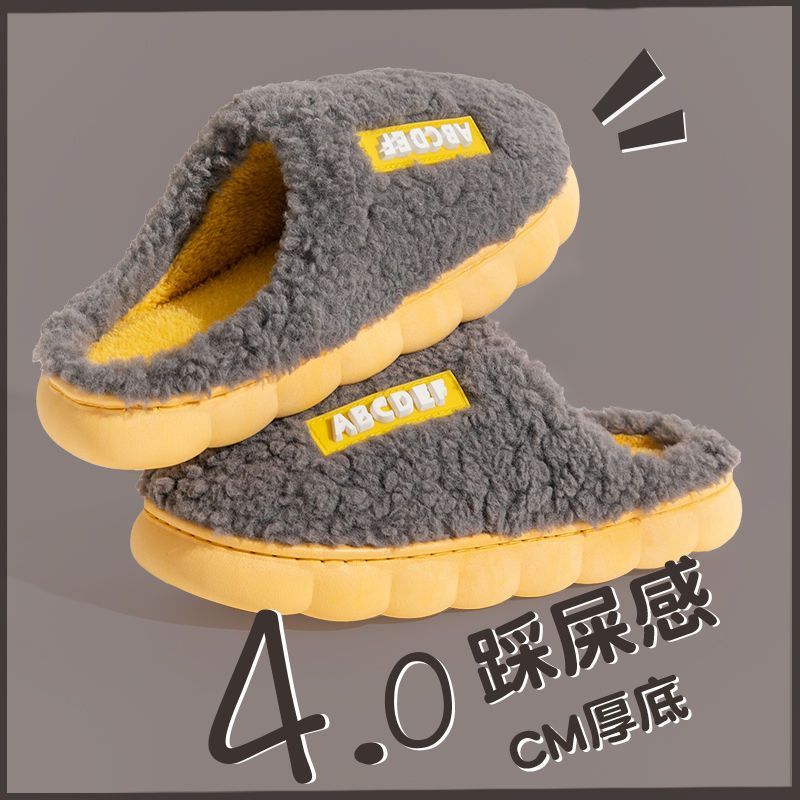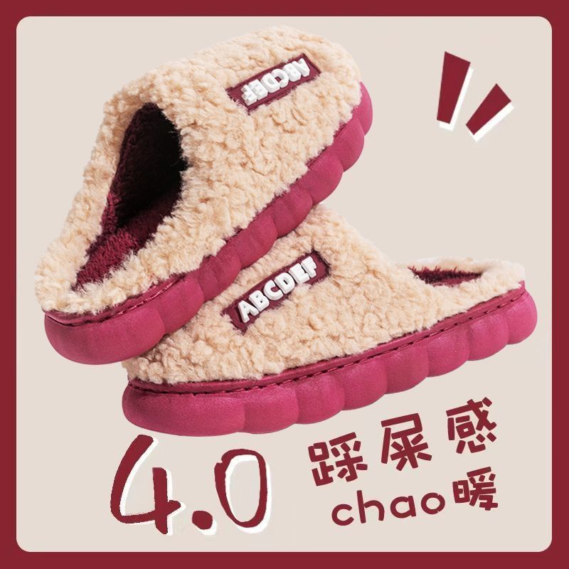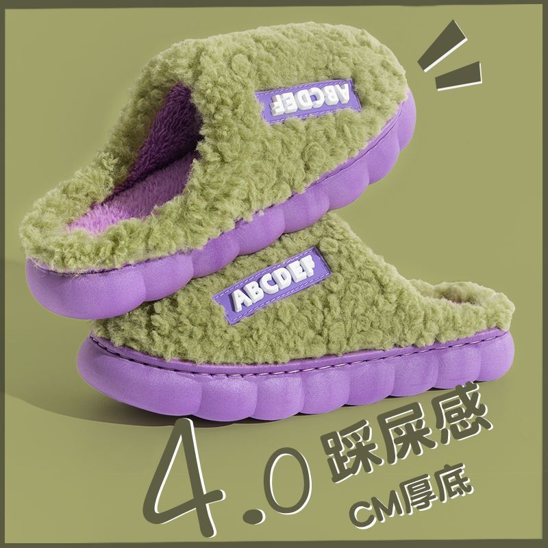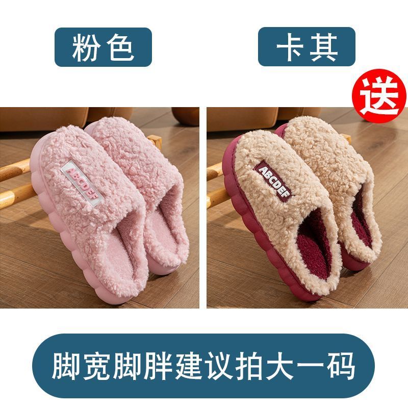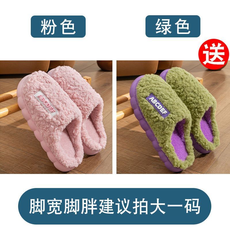 买一送一美拉德冬季手工棉拖鞋女居家防滑保暖拼色毛绒棉拖鞋男款