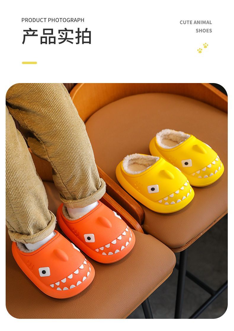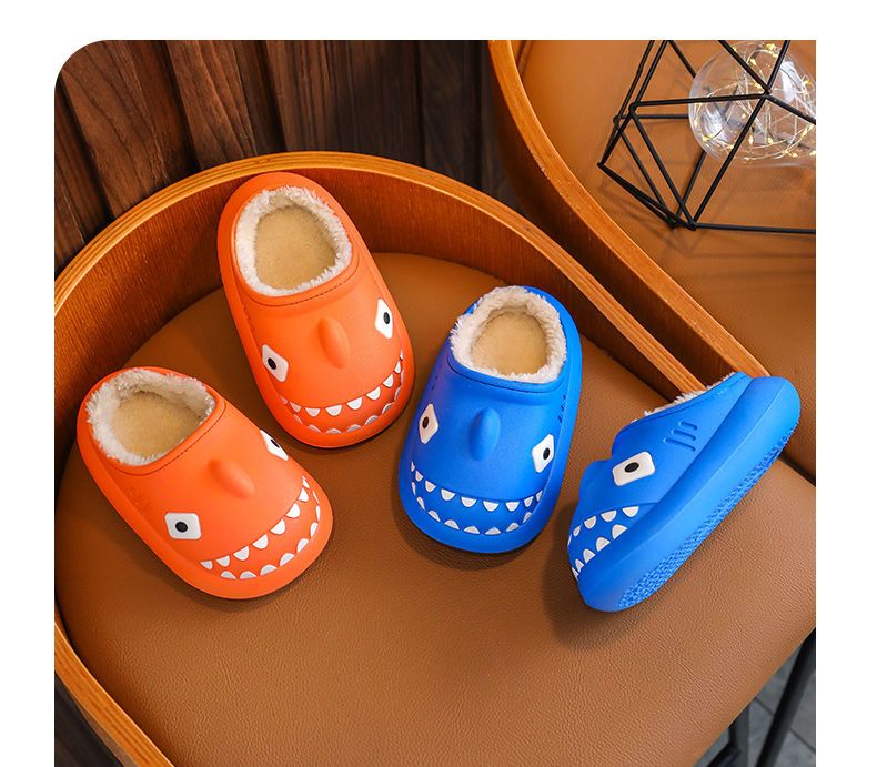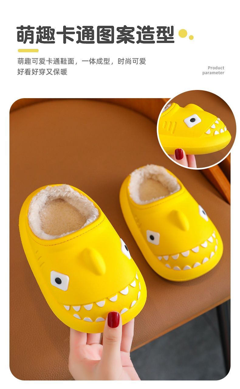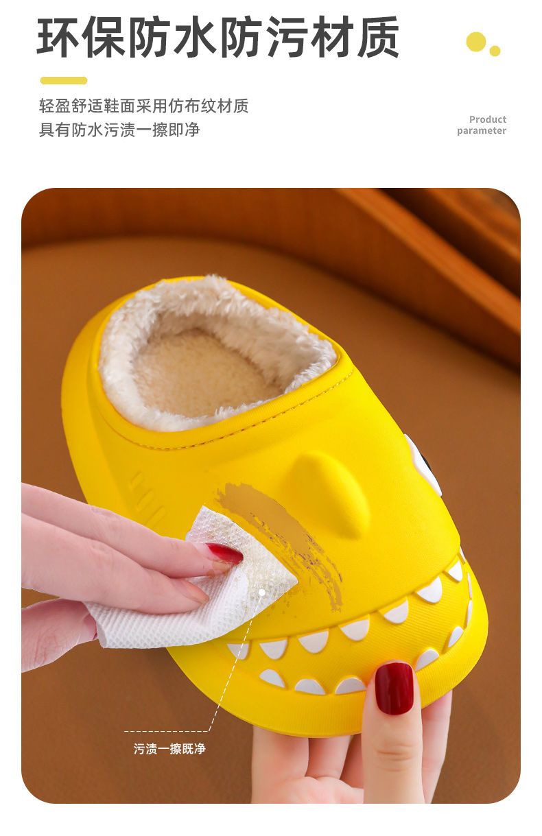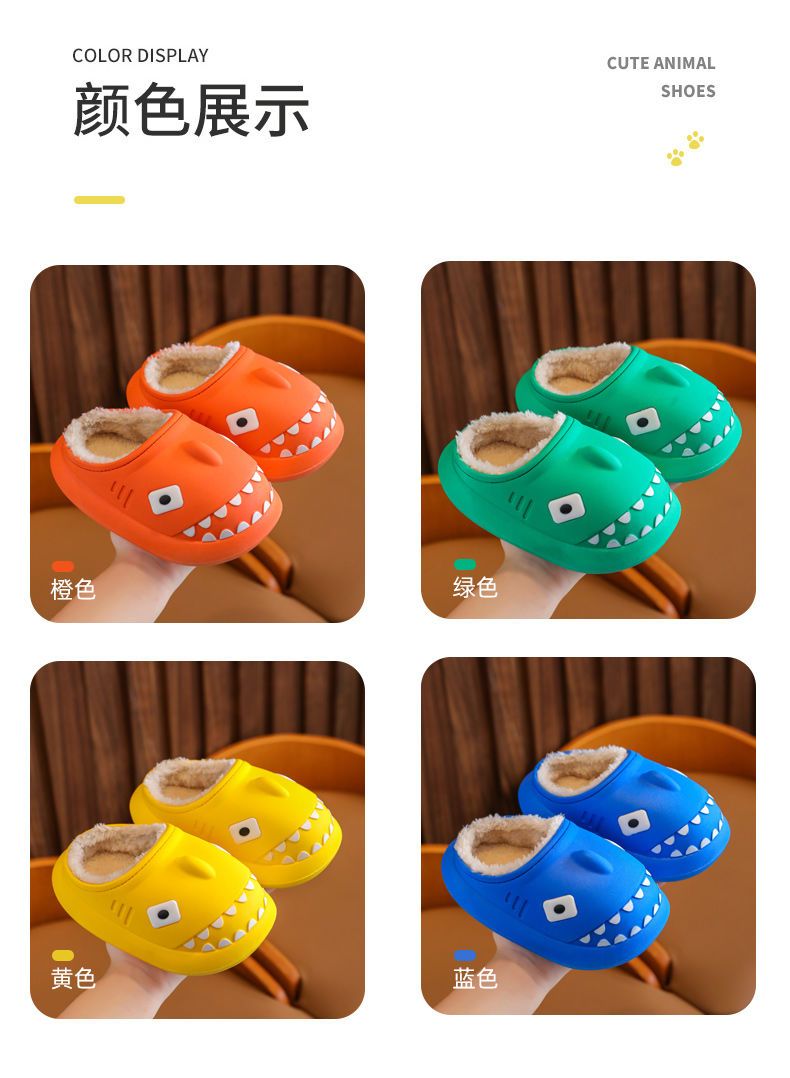 儿童男童棉拖鞋2023秋冬季鲨鱼防水居家用学生小孩宝宝学步棉鞋女