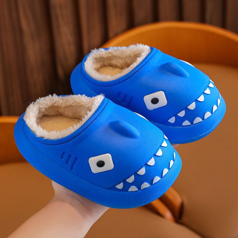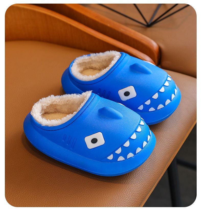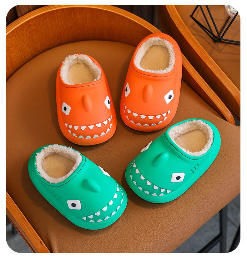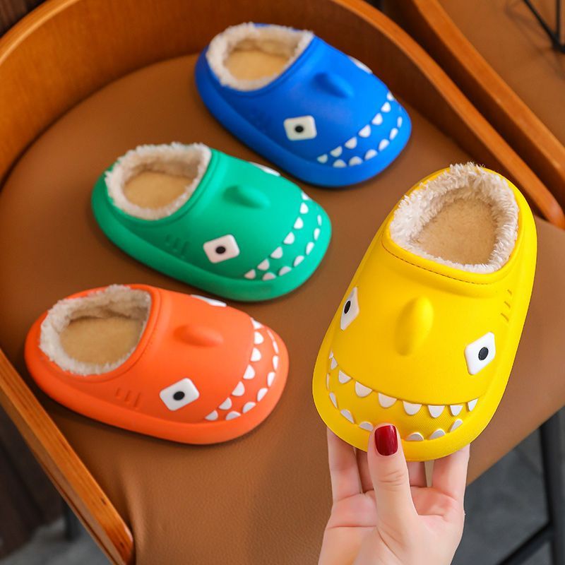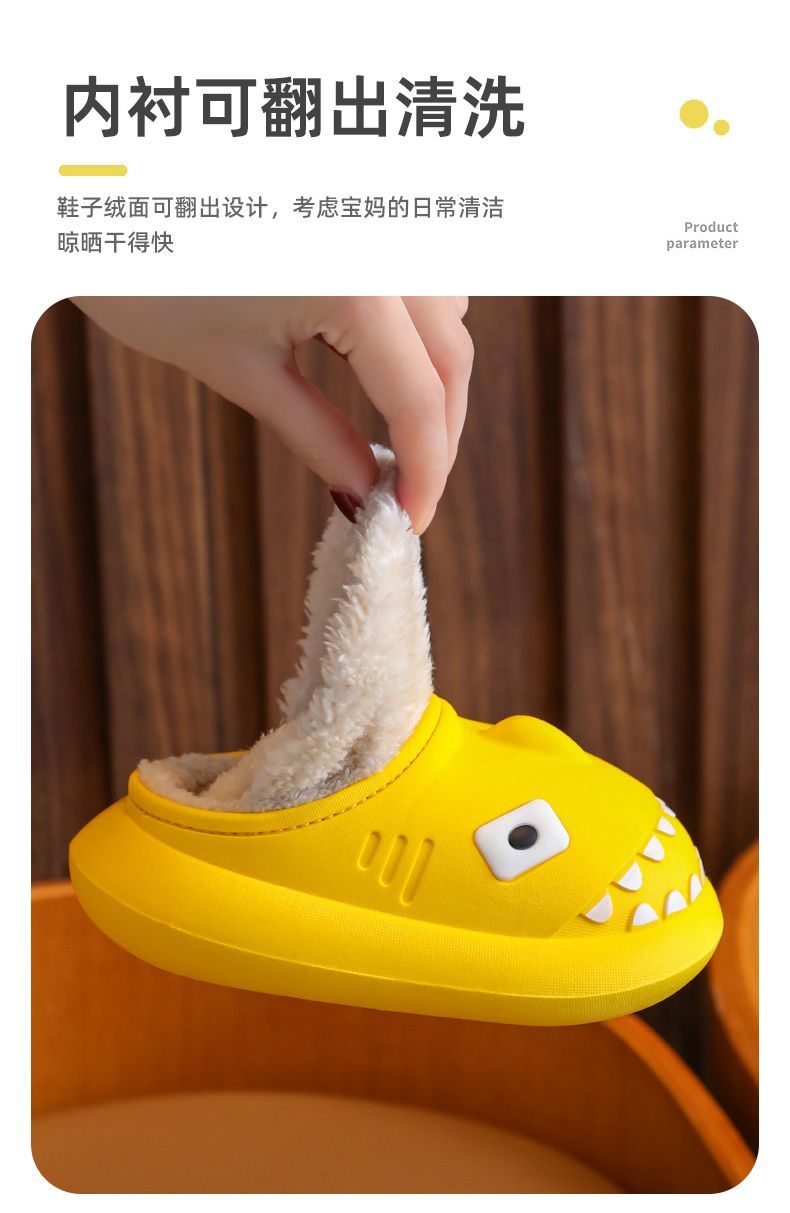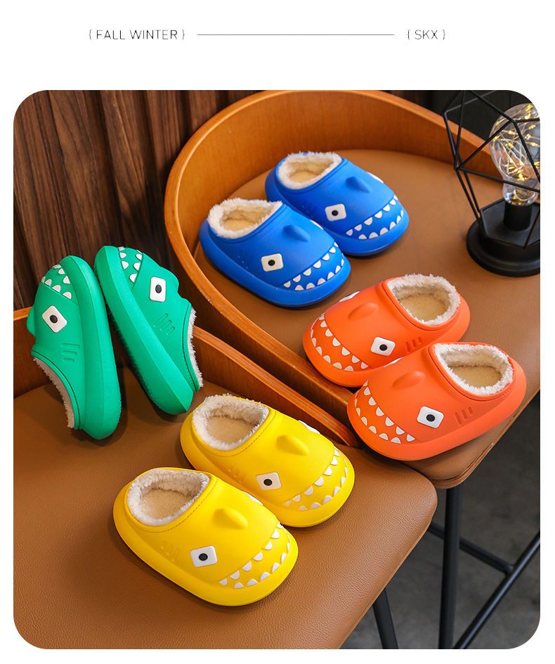 儿童男童棉拖鞋2023秋冬季鲨鱼防水居家用学生小孩宝宝学步棉鞋女