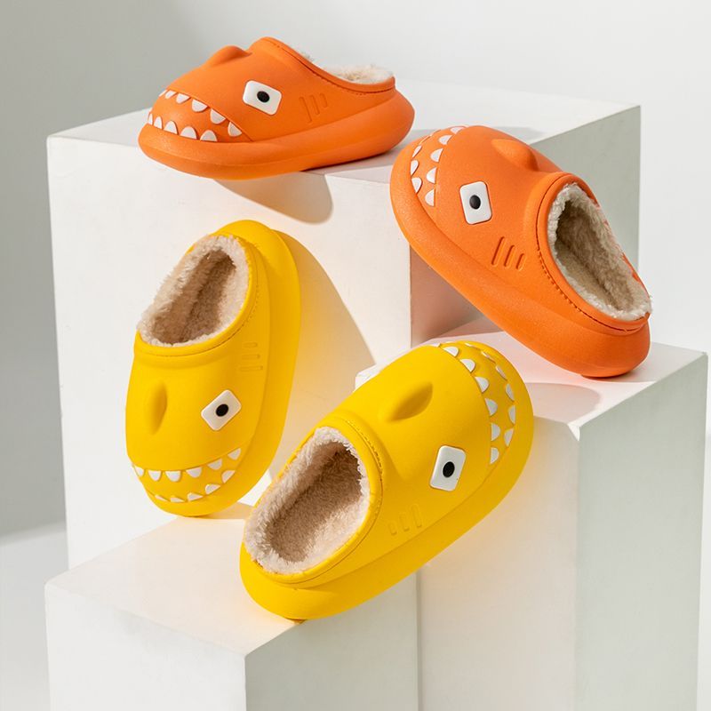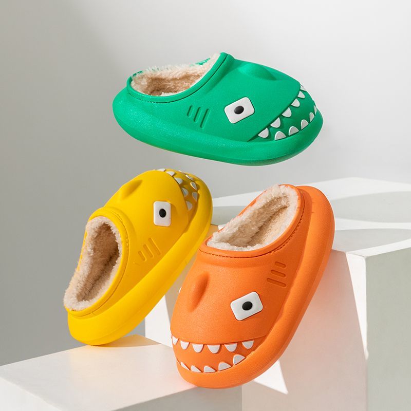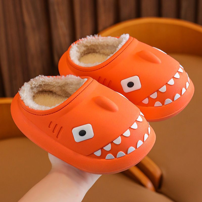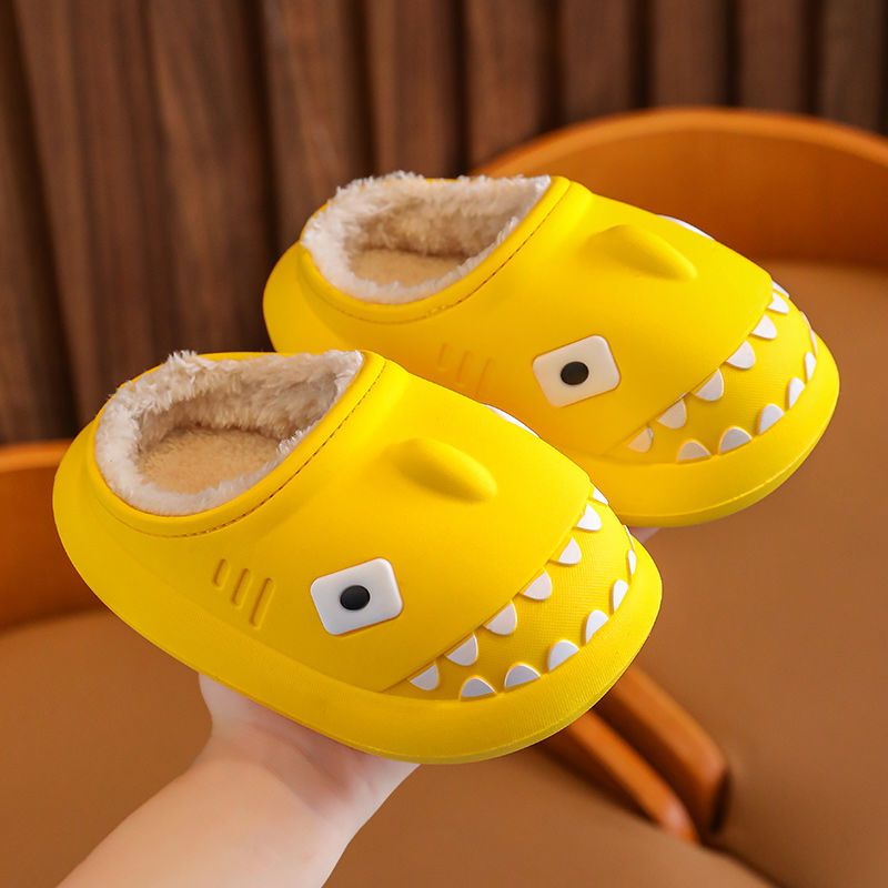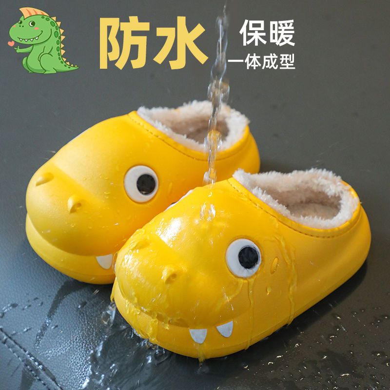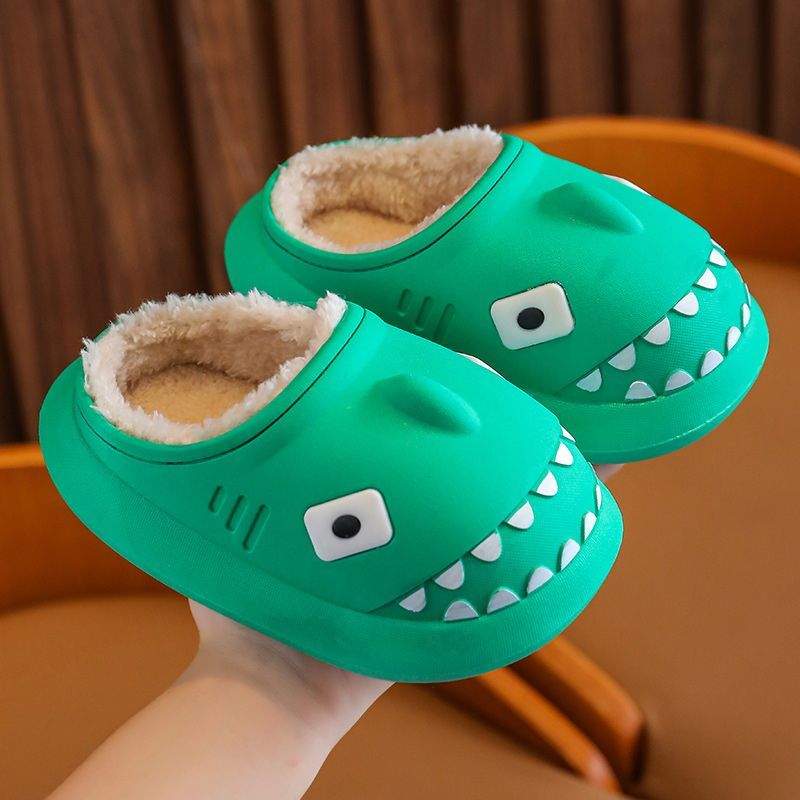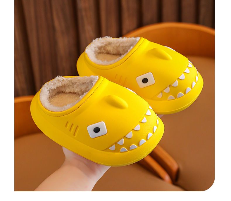 儿童男童棉拖鞋2023秋冬季鲨鱼防水居家用学生小孩宝宝学步棉鞋女