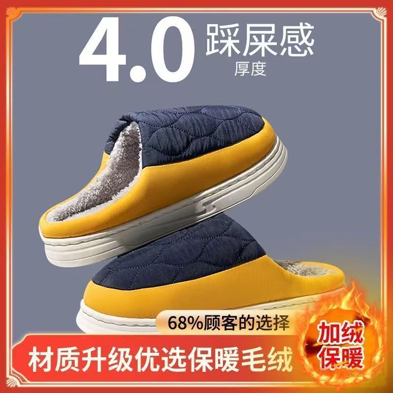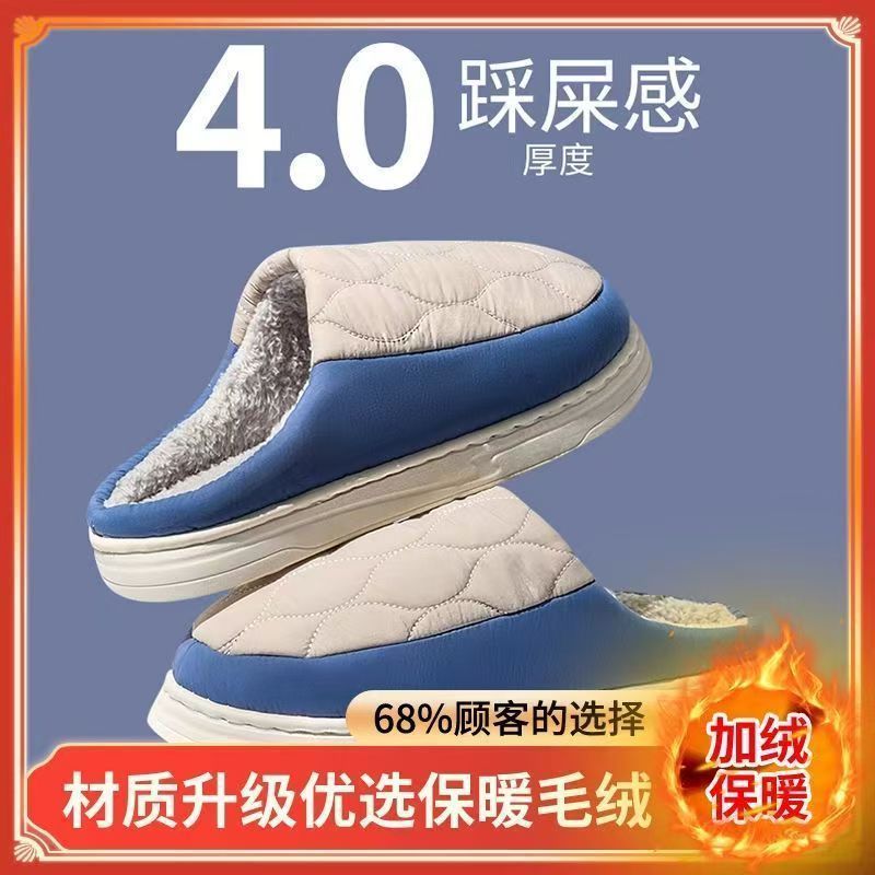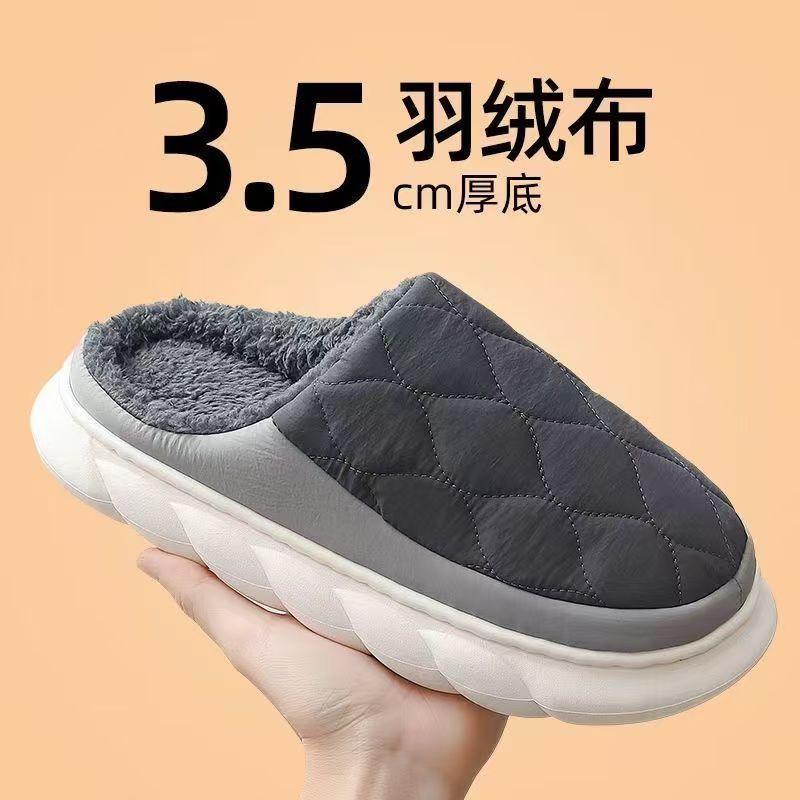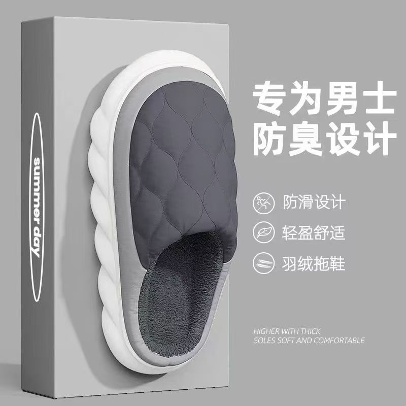 清仓保暖软底男士棉鞋冬季室内居家防水防滑超厚大码羽绒棉拖外穿